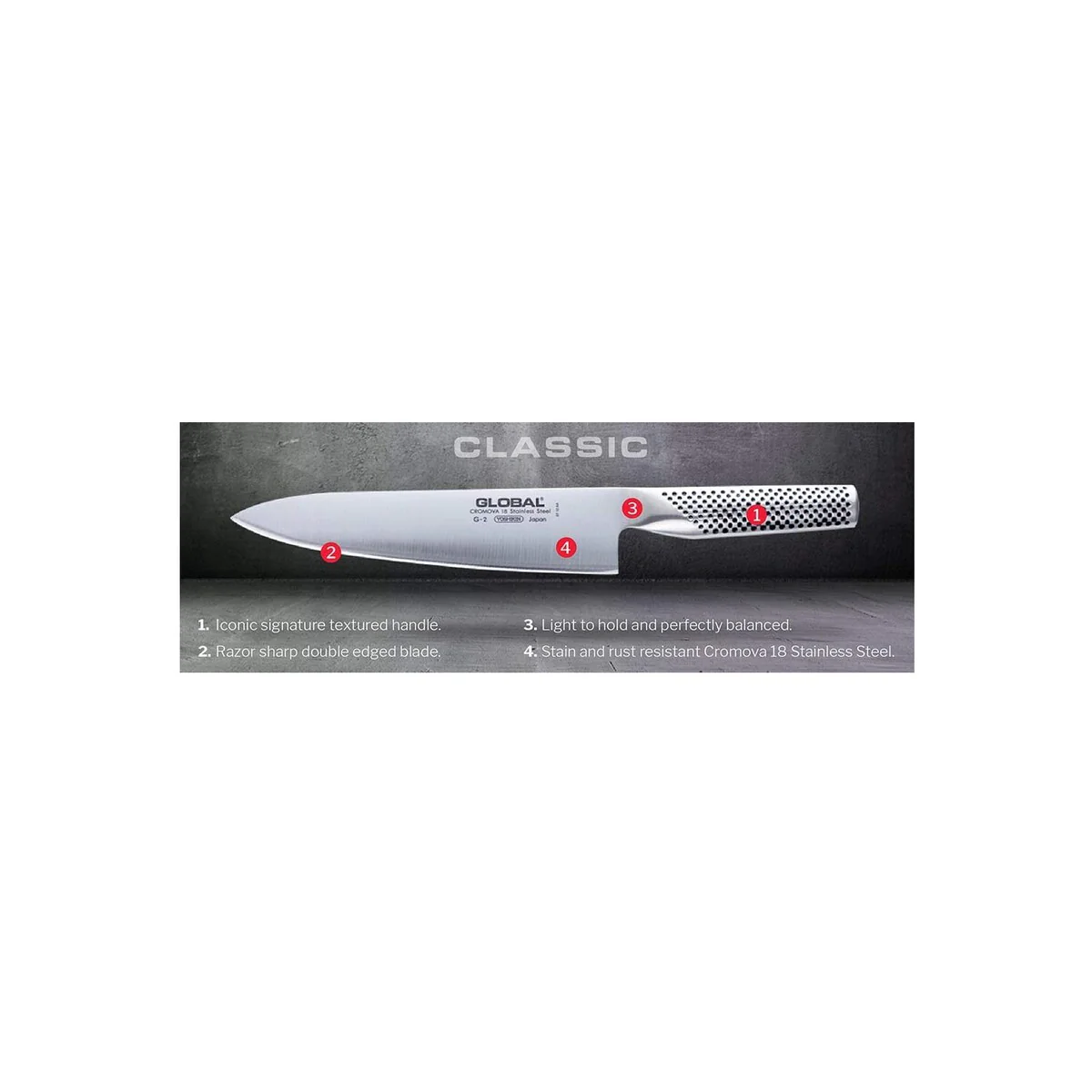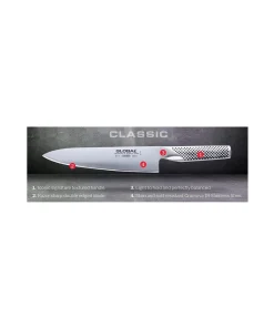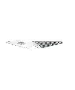 Cut strawberries for a delicious tart with this straight edge paring knife from Global. This knife is made from CROMOVA 18 stainless steel for long lasting durability and excellent performance. Made from a single piece of steel, it is designed with a convex edge for superior edge. The strength comes from the ice hardening process that reaches a Rockwell degree of C-56-58. A straight edge gives this knife a perfect way to cut delicate fruit like strawberries or grapes to make wonderful designs while having complete control of the knife. Using this knife is light and easy on the hands thanks to the hollowed handle and compact design. The iconic Global dimple design is on the triangular handle for a non slip grip. This Japanese knife is perfect for the experienced and beginner cook alike.4" LÂ