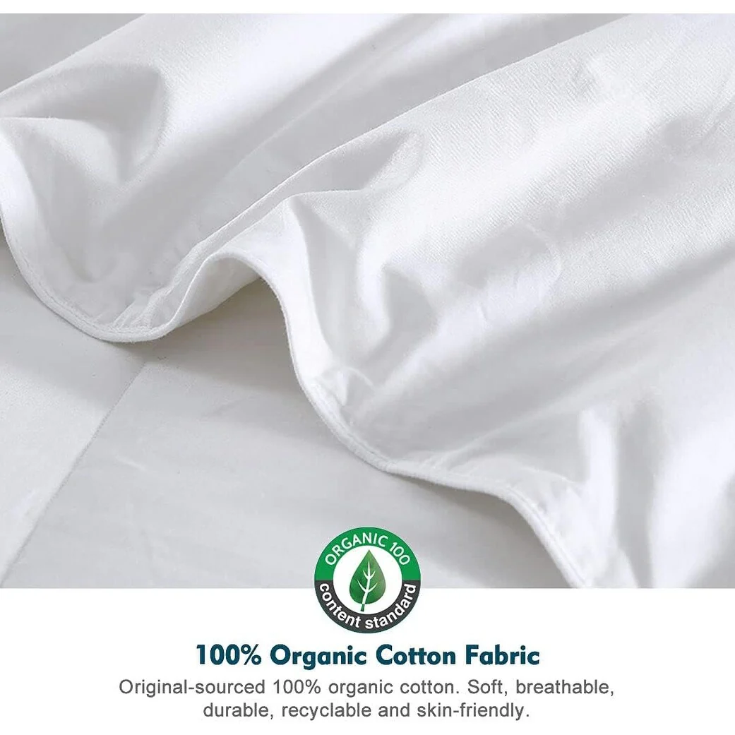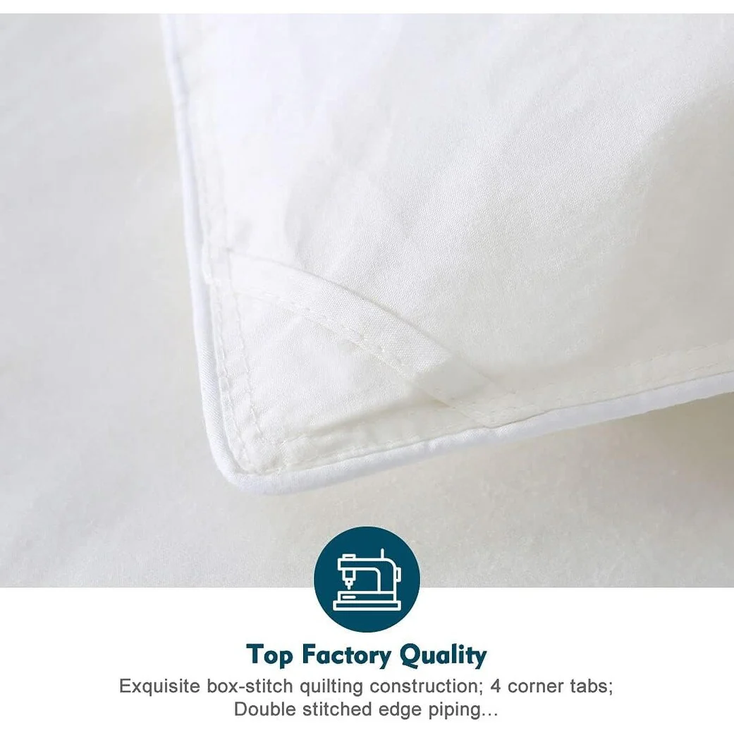 - CONSTRUCTION: Our organic cotton comfmorter featured exquisite end-to-end box-stitch quilting construction keeps the down feather evenly distributed and creates maximum loft and comfort.Clean and refreshing appearance matches room decoration in any style. 4 corner tabs to easily attach cover.