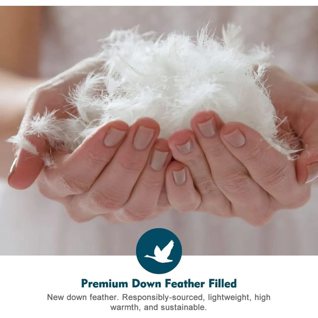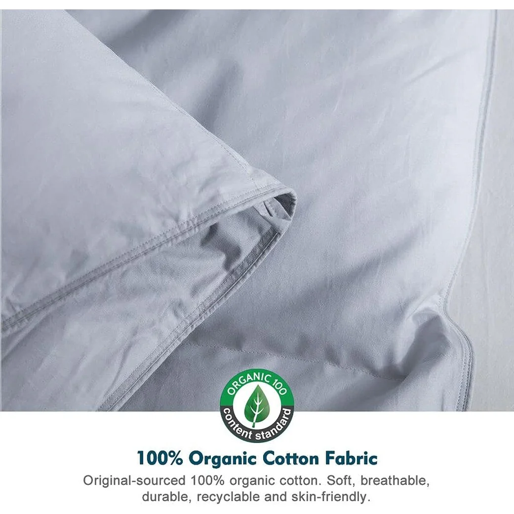 - GORGEOUS DOWN FEATHER FILLING: Our organic duvet insert is filled with premium responsibly sourced goose duck down feathers(90% waterfowl feather / 10% down). High cleanness, plush, odorless. This medium weight down feather comforter has advanced temperature regulating ability providing suitable warmth for most people,helping you enhancing the sleep experience in spring, summer, fall, winter.