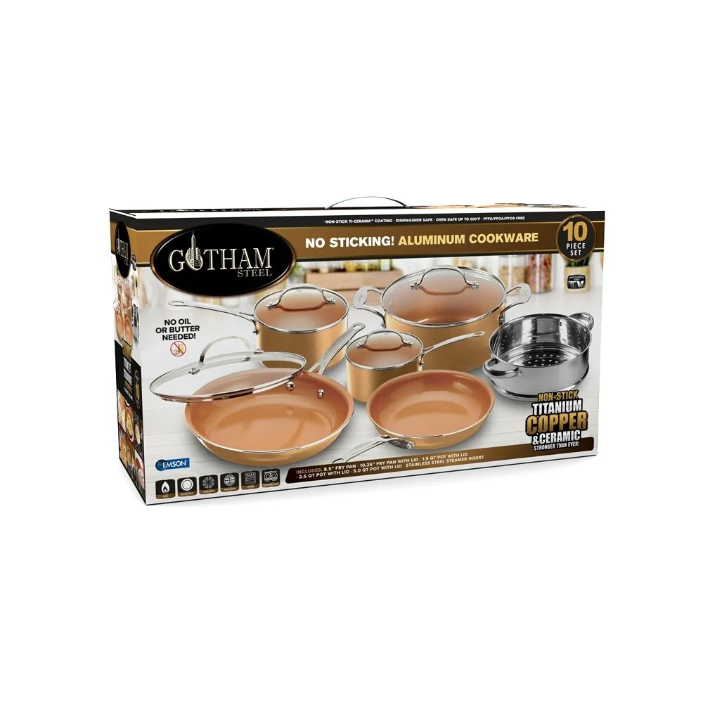 Gotham Steel 10-Piece Nonstick Kitchen Cookware Set- Copper Round