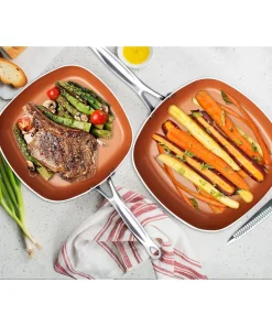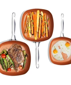 Gotham Steel Nonstick Copper 6 Piece All Square Shallow Fry Pan Set with Lids As Seen On TV