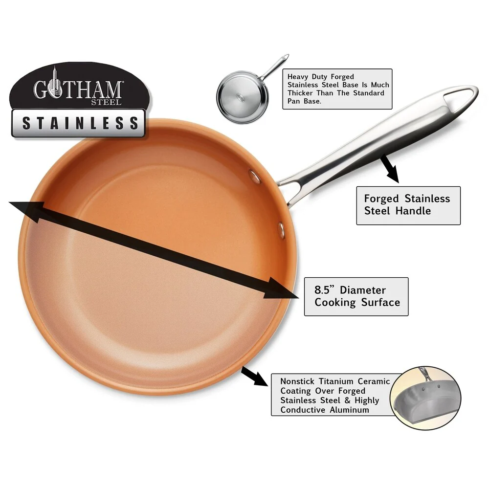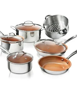 Gotham Steel Stainless Steel 10 Piece Pro Chef Cookware Set, Premium Copper Nonstick Pots and Pans – Tri – Ply Bonded, Coated with Titanium and Ceramic Surface for the Ultimate Release – Dishwasher Safe