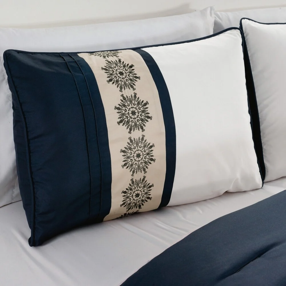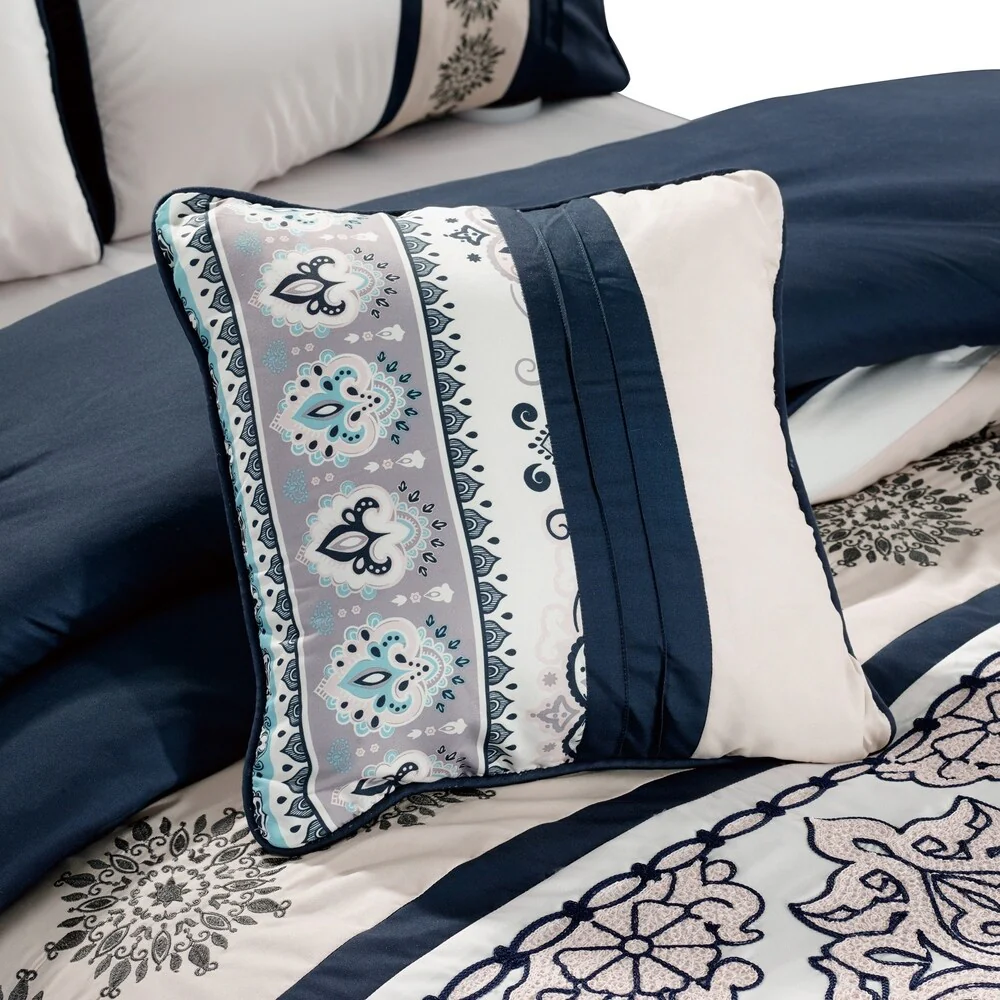 Elevate your bedroom decor with this stylish 7-piece embroidered comforter set from Gracewood Hollow Heco. Featuring a beautiful taupe and white geometric pattern, this set is made from super soft microfiber polyester for lasting comfort.
