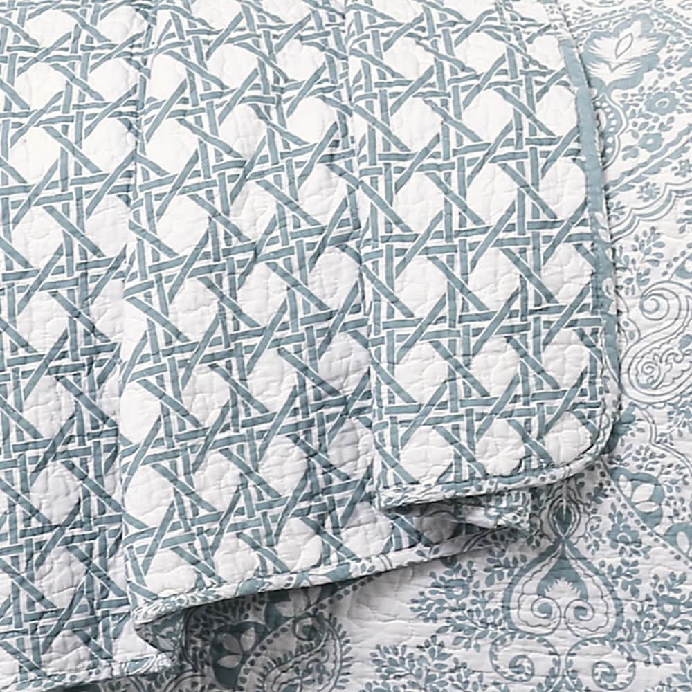 - Reversible with a charming damask pattern on one side and a contemporary geometric pattern on the other