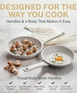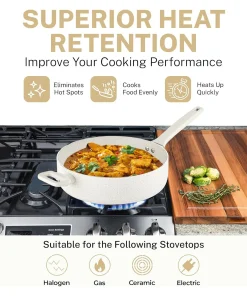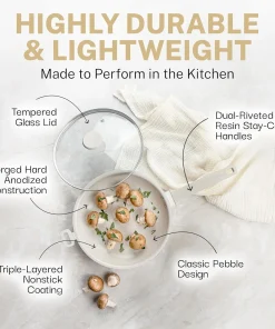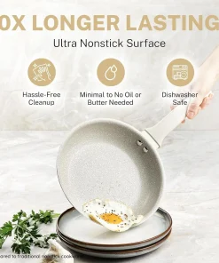 - Triple-Layer Ceramic Nonstick Coating: Engineered for superior food release and easy cooking with little to no oil, the cream-colored coating adds a stylish, modern touch to your kitchen.