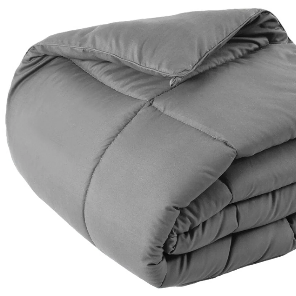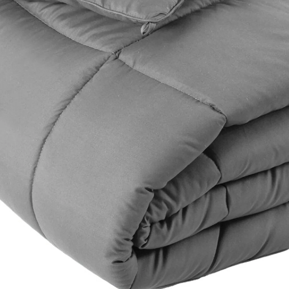 Gray Twin Box Stitch Microfiber Down Alternative Comforter