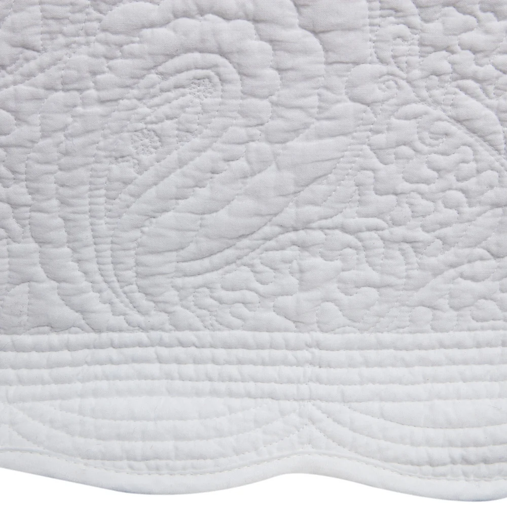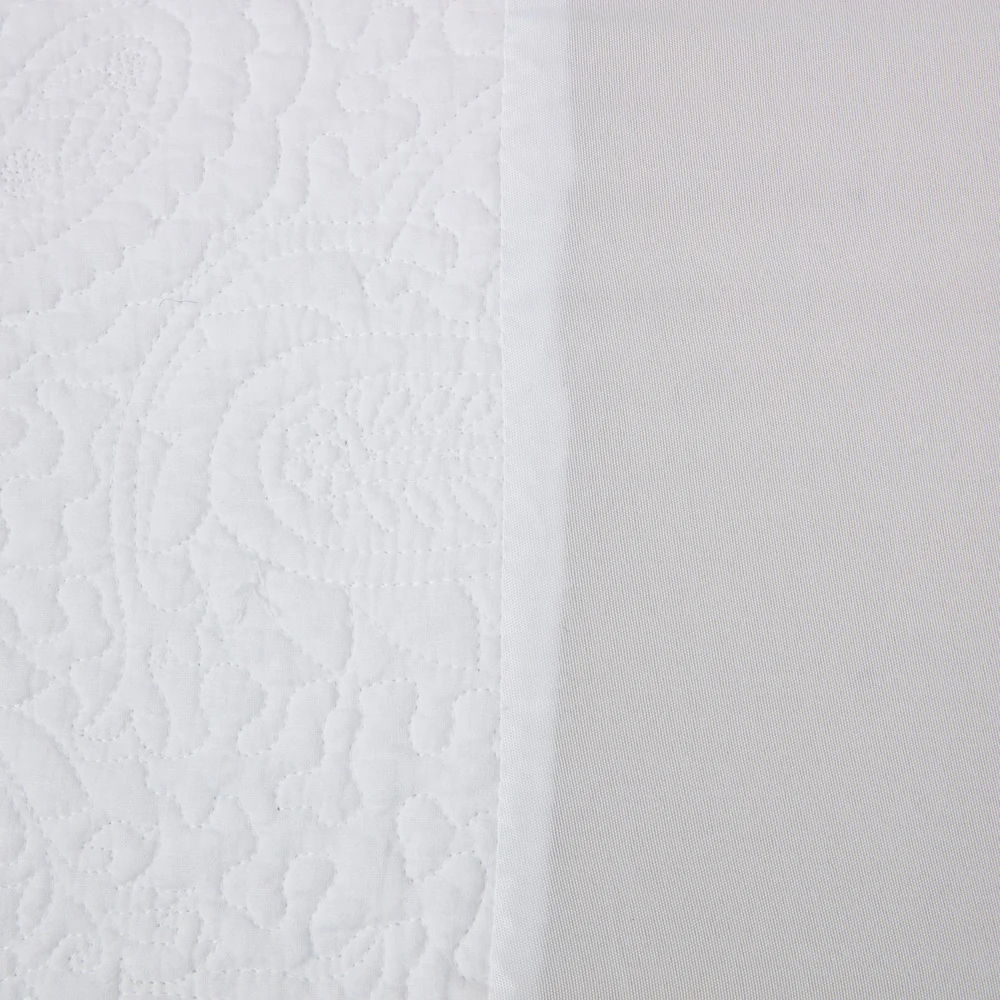 Add some subtle elegance to your bedroom decor with this Paisley Quilted bed skirt by Greenland Home Fashions. Made with a 126 thread count, the 100% cotton drop and 100% polyester platform are durable, soft, and machine-washable. The split corners make it easy to fit around bed posts, while the neutral fabric with a quilted design adds a touch of understated beauty. Choose from crisp white or ivory for the perfect match to your bedding. Generous 18-inch drop down the side of the bed.