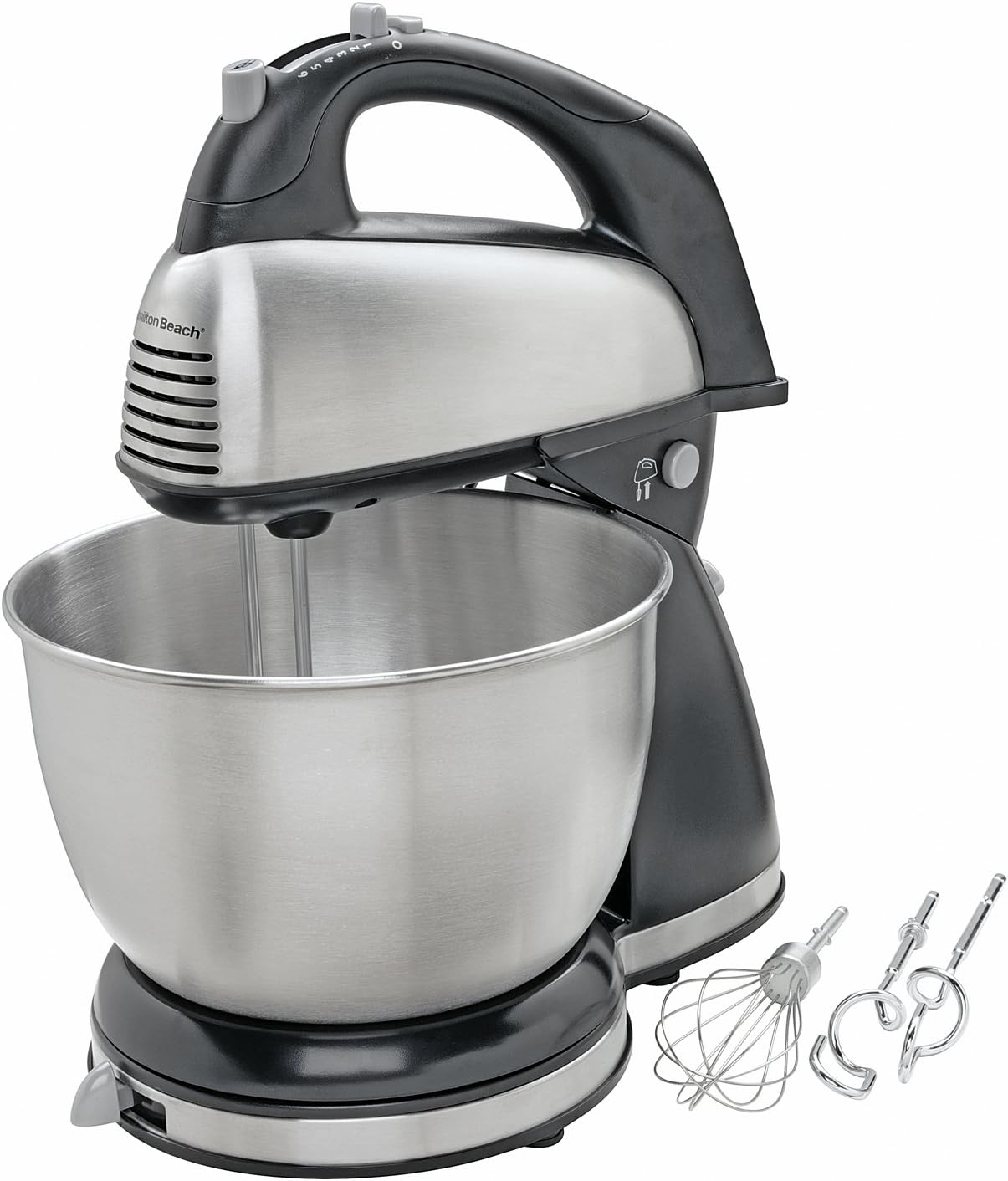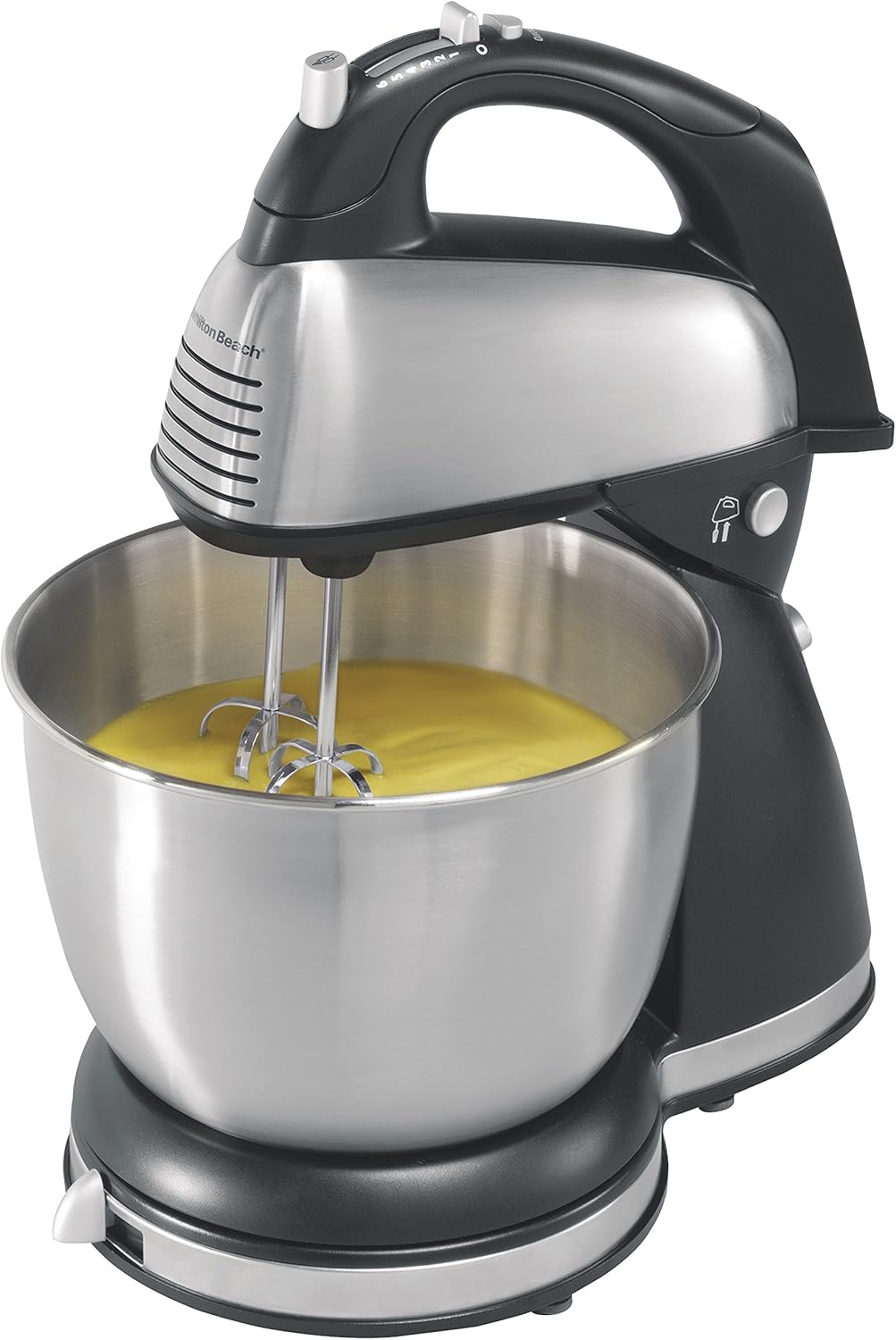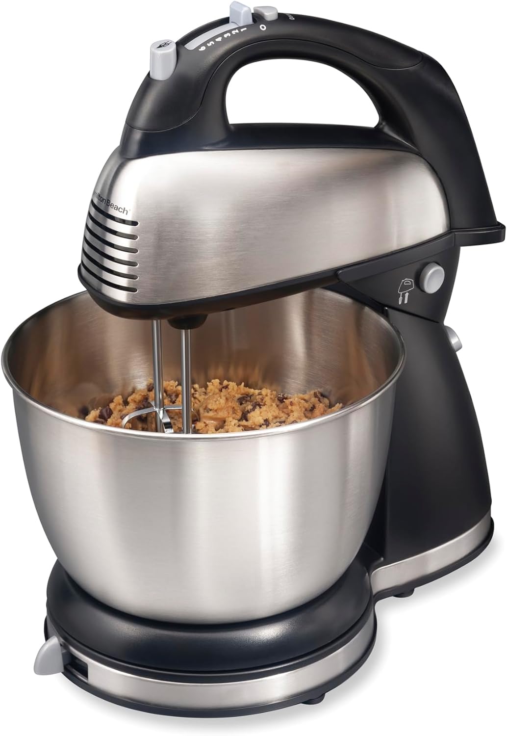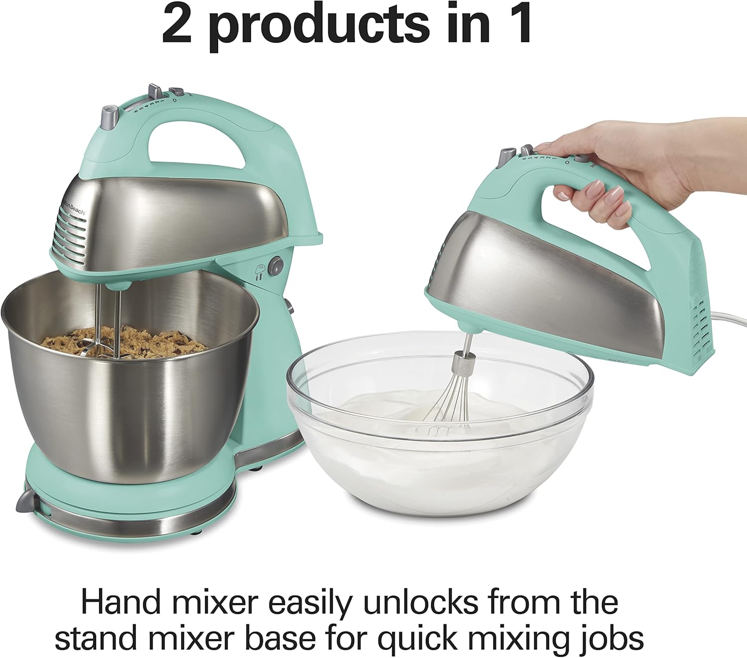 - 2 PRODUCTS IN 1: Why take up room in your kitchen for 2 mixers when 1 space-saving appliance does it all. The stand mixer is perfect for thick mixtures like cookie and bread dough and the hand mixer easily unlocks from the base for quick mixing jobs.