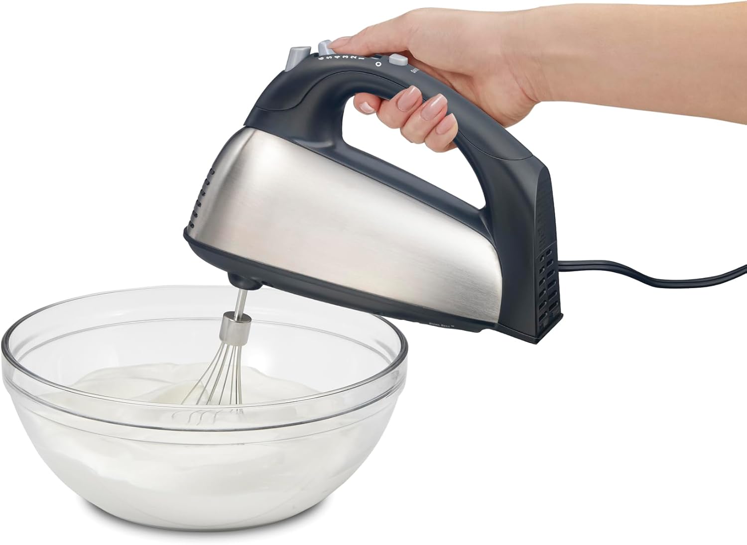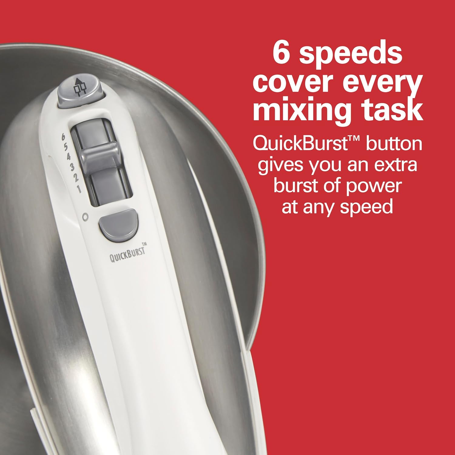 - 6 SPEEDS COVER EVERY MIXING TASK. Go from slowly folding ingredients all the way up to whipping at top speed. This hand mixer has 6 speeds to cover every mixing task and a Quick Burst button for an extra burst of power at any speed.