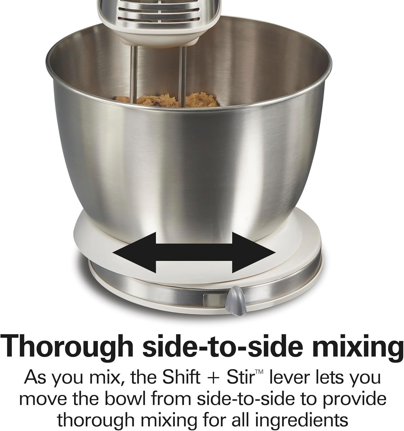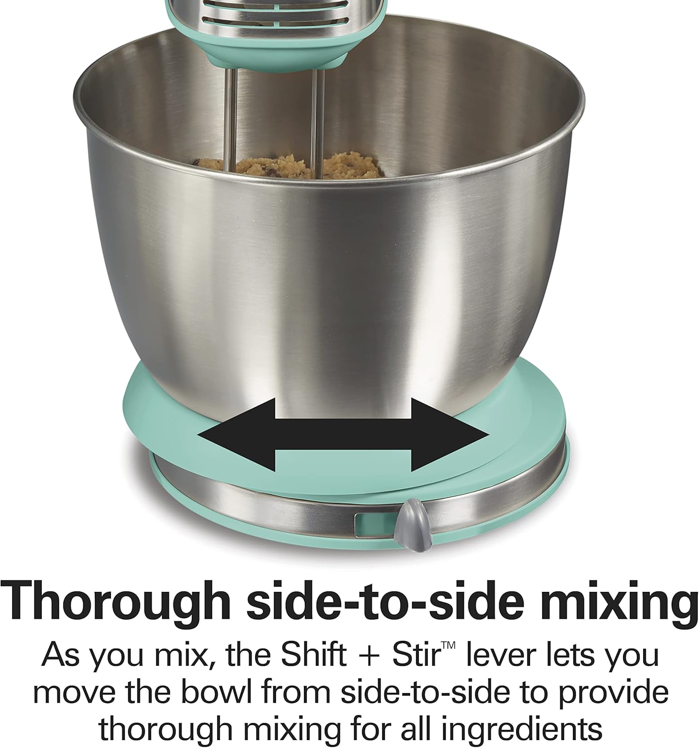 - BOWL MOVES SIDE-TO SIDE FOR THOROUGH MIXING. As you mix, the Shift and Stir lever lets you move the bowl from side-to-side to provide thorough mixing for all your ingredients.