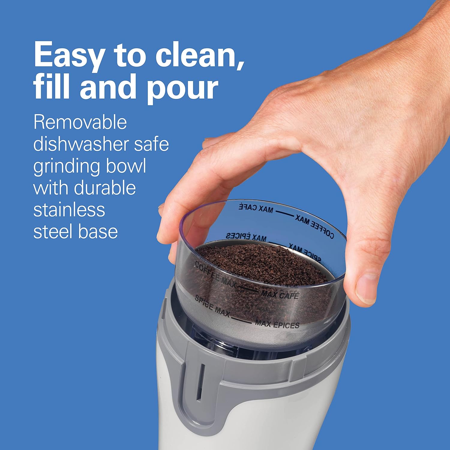 Hamilton Beach Fresh Grind Electric Coffee Grinder for Beans, Spices and More, Stainless Steel Blades, Removable Chamber, Makes up to 12 Cups, Black