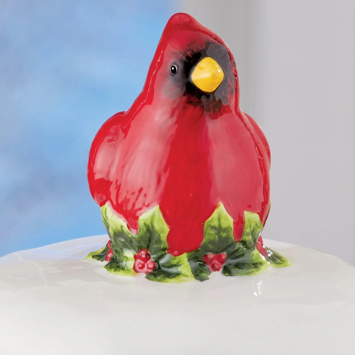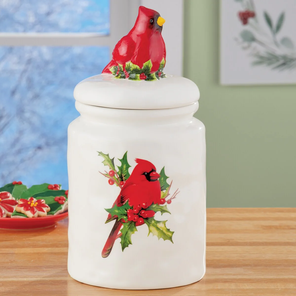 Hand-Painted Winter Cardinal Ceramic Cookie Jar – 5.75 x 11.25 x 5.75