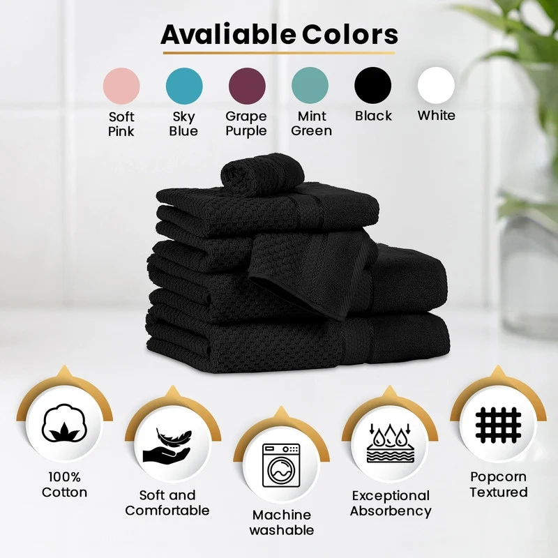 Get Your Hands on Our Popcorn Pattern Hand Towel – The Perfect Snack for Your Hands! With the help of Ample Décor bath towels, bathing and washing are now more enjoyable than ever. A fun and beautiful addition to any bathroom, guest room or kitchen is our brand-new Mulaayam collection Popcorn Pattern hand towel. This towel is made of soft, absorbent cotton and is perfect for cleaning up spills or using to dry hands. The way the hand towels are made increases their surface area on both sides, absorbency, and the number of wipes needed for drying your hands and body. This towel is a useful and fashionable option for daily usage because the premium fabric helps with durability and ease of upkeep.  Features: – Brand: – Ample Decor Material: – 100% Cotton GSM: – 550 GSM Pattern: – Popcorn Pattern Set Content: – Set of 2 Hand Towels Dimension: – 18 X 28 Inch Machine Washable DISCLAIMER: Due to variations in screen settings, color profiles, and calibration, colors exhibited on electronic devices like computer displays, smartphones, or tablets may not be accurately represented. As a result, colors may not show exactly as they do on some devices.