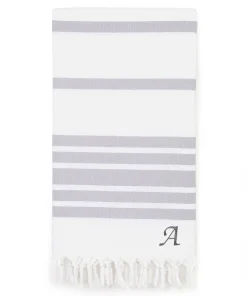 Authentic Grey Bold Stripe Pestemal Fouta Turkish Cotton Bath/ Beach Towel with Monogram Initial