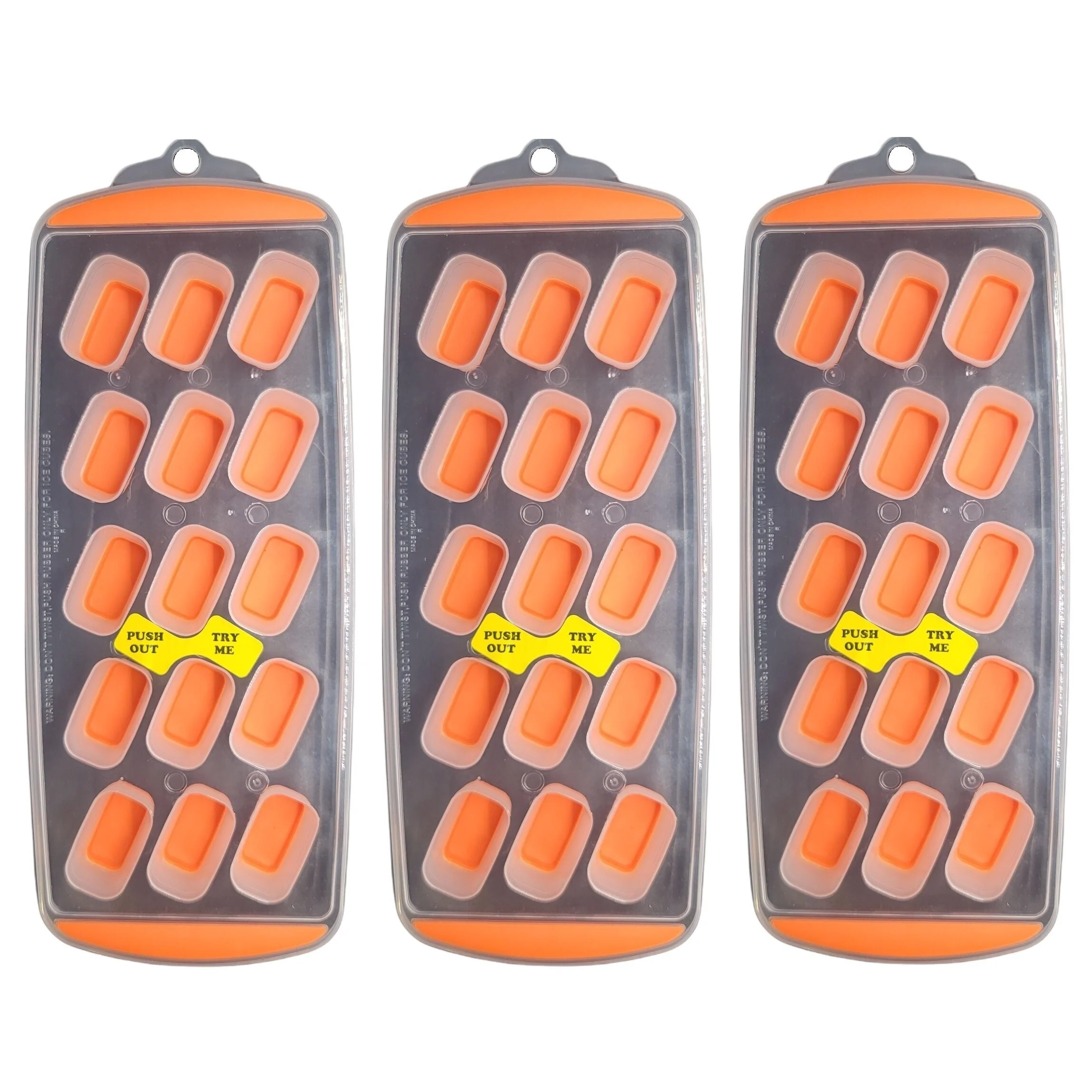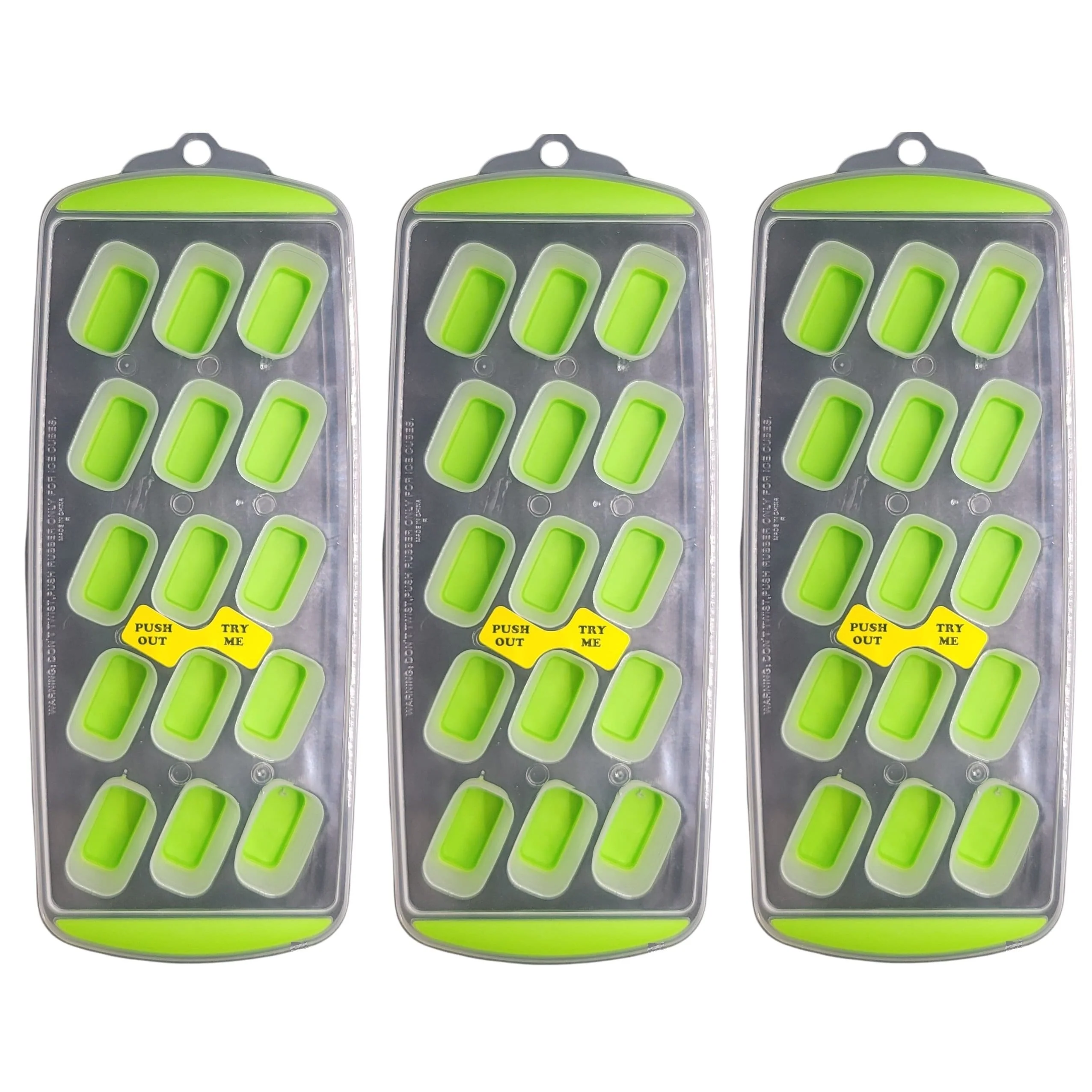 With these push-out ice cube trays, your ice cubes will release with ease. No longer will you have to break your tray to get your ice, simply push the bottom of the tray and your ice will slide right out. Making ice at home has never been easier!Yields 15 cubes measuring approximately 1.5" x .75" x .75". Top-rack dishwasher safe for easy and convenient clean-up. Tray measures 11" x 4.5" and is stackable for easy storage.