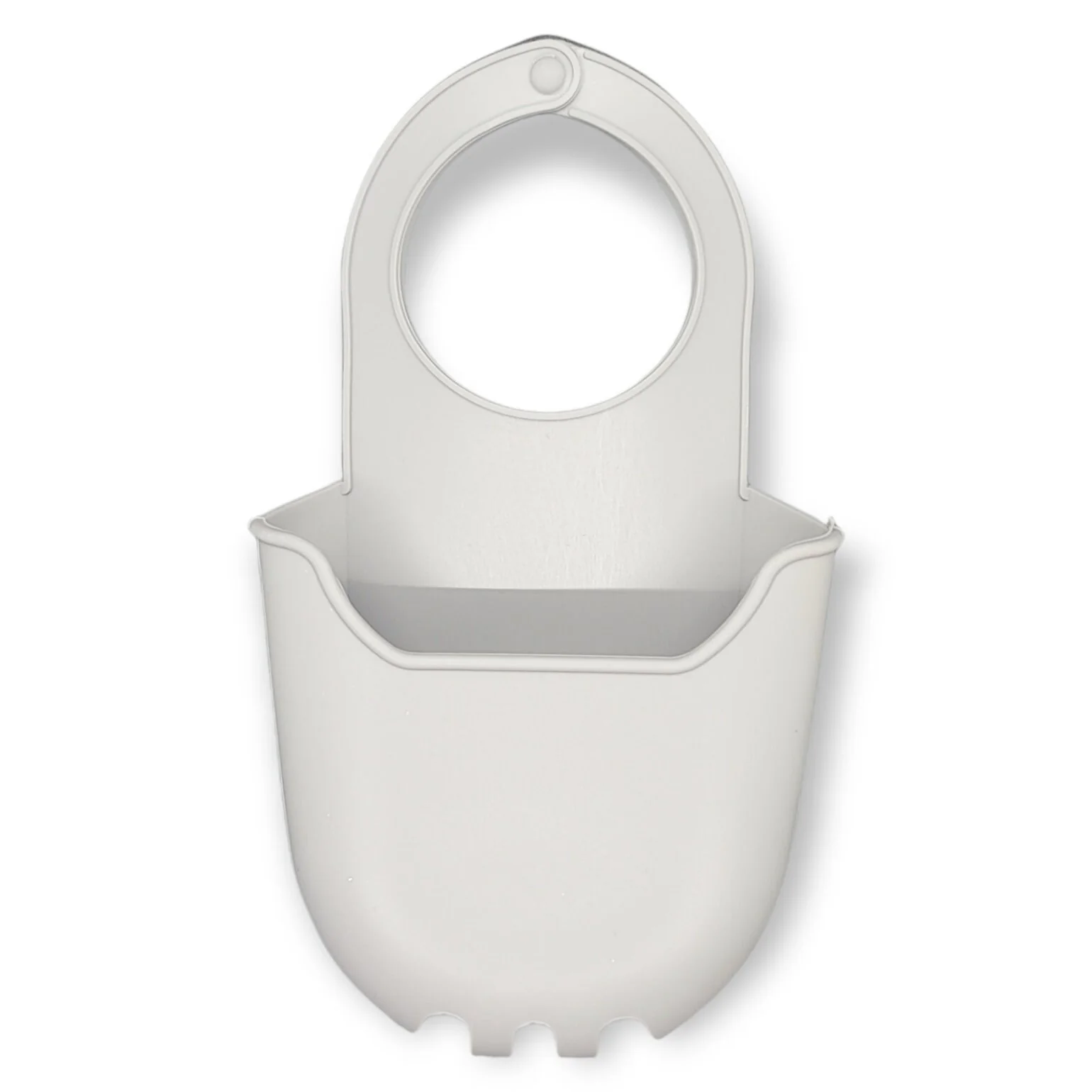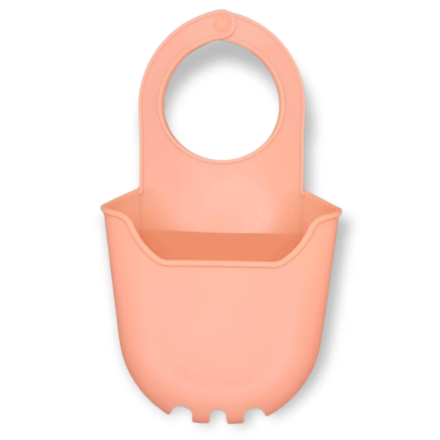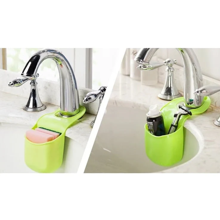 This versatile silicone sink caddy provides a simple way to allow your items to hang dry. Great for many uses in both the kitchen (to hold sponges, drain stoppers, scouring pads, etc.) and in the bathroom (to hold soap, loofahs, razors, shaving cream, etc.).Simple use the snap bag fastener to hang the caddy around a faucet, grab bar, or showerhead. Any item you put inside will start to dry as the caddy has holes in the bottom allowing for drainage and airflow. Made from durable silicone. BPA free and dishwasher safe. Measures approximately 8" long x 4" wide x 1.25" deep overall.