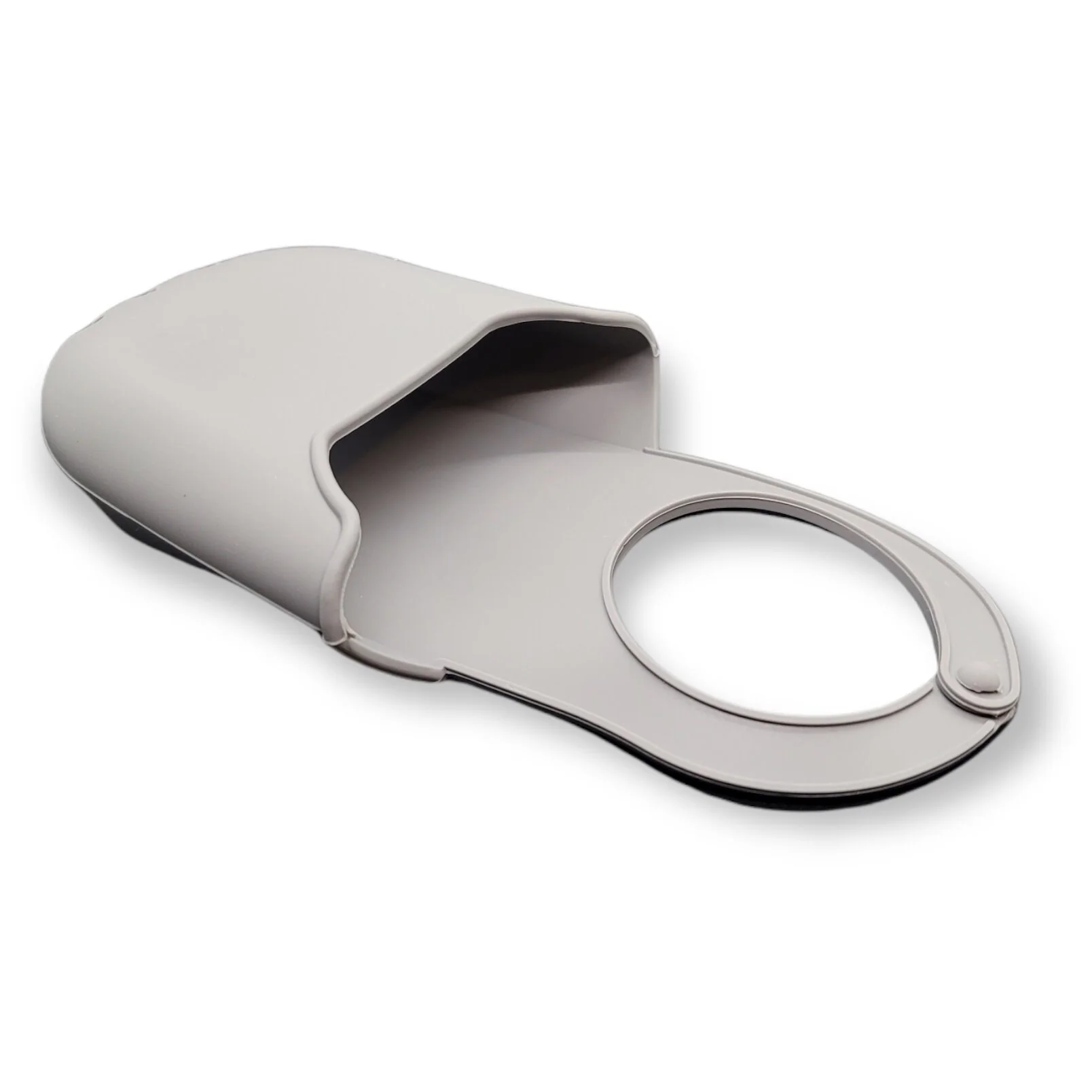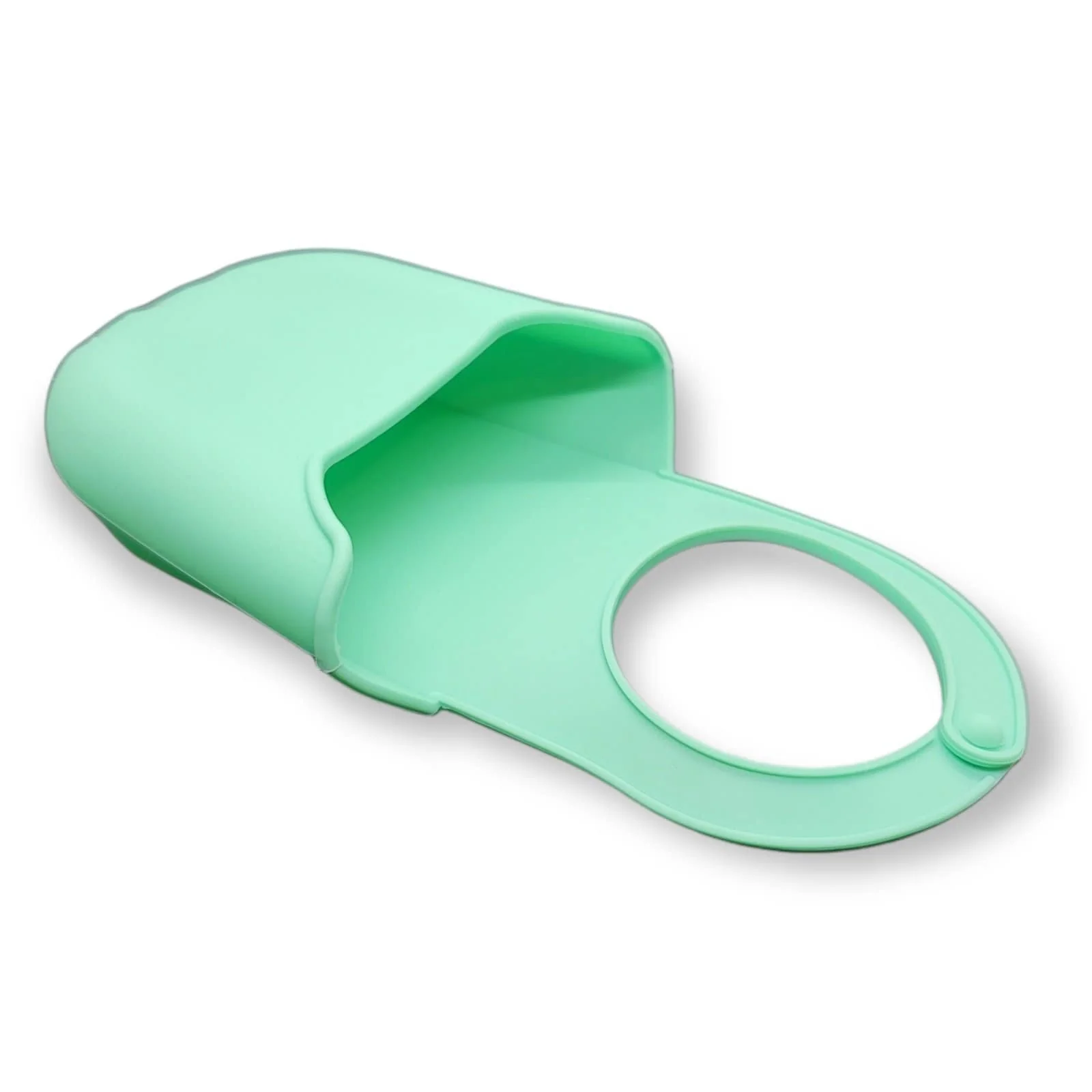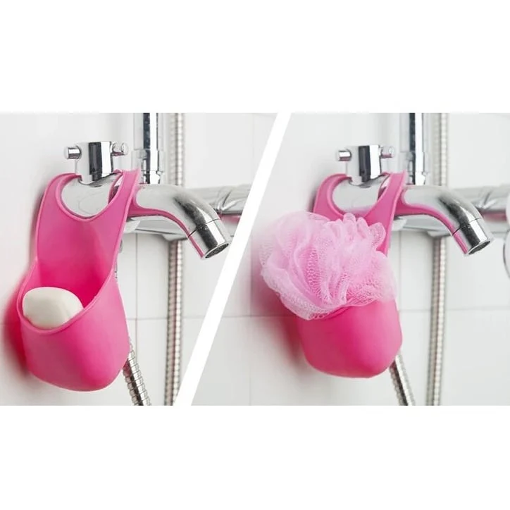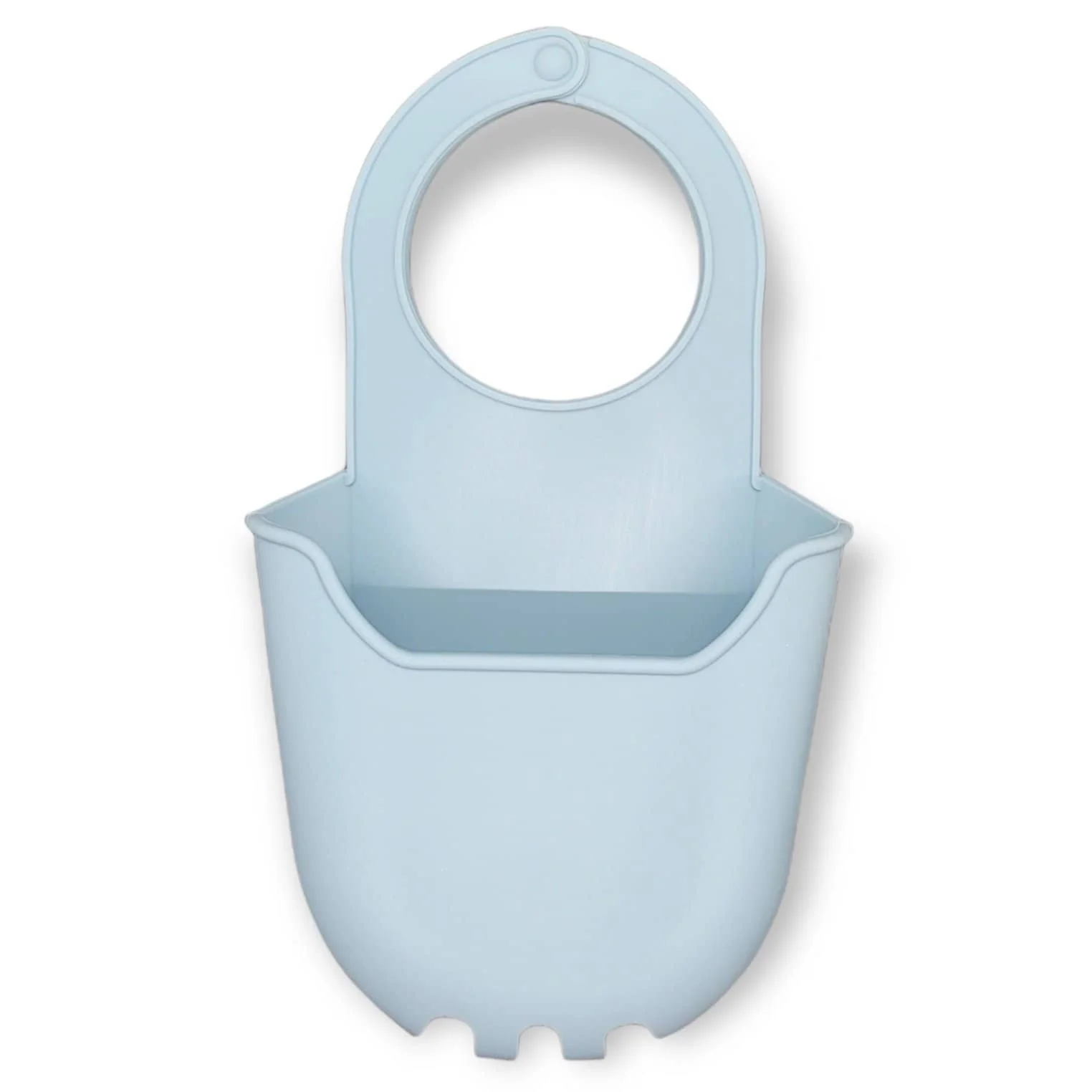 This versatile silicone sink caddy provides a simple way to allow your items to hang dry. Great for many uses in both the kitchen (to hold sponges, drain stoppers, scouring pads, etc.) and in the bathroom (to hold soap, loofahs, razors, shaving cream, etc.).Simple use the snap bag fastener to hang the caddy around a faucet, grab bar, or showerhead. Any item you put inside will start to dry as the caddy has holes in the bottom allowing for drainage and airflow. Made from durable silicone. BPA free and dishwasher safe. Measures approximately 8" long x 4" wide x 1.25" deep overall.