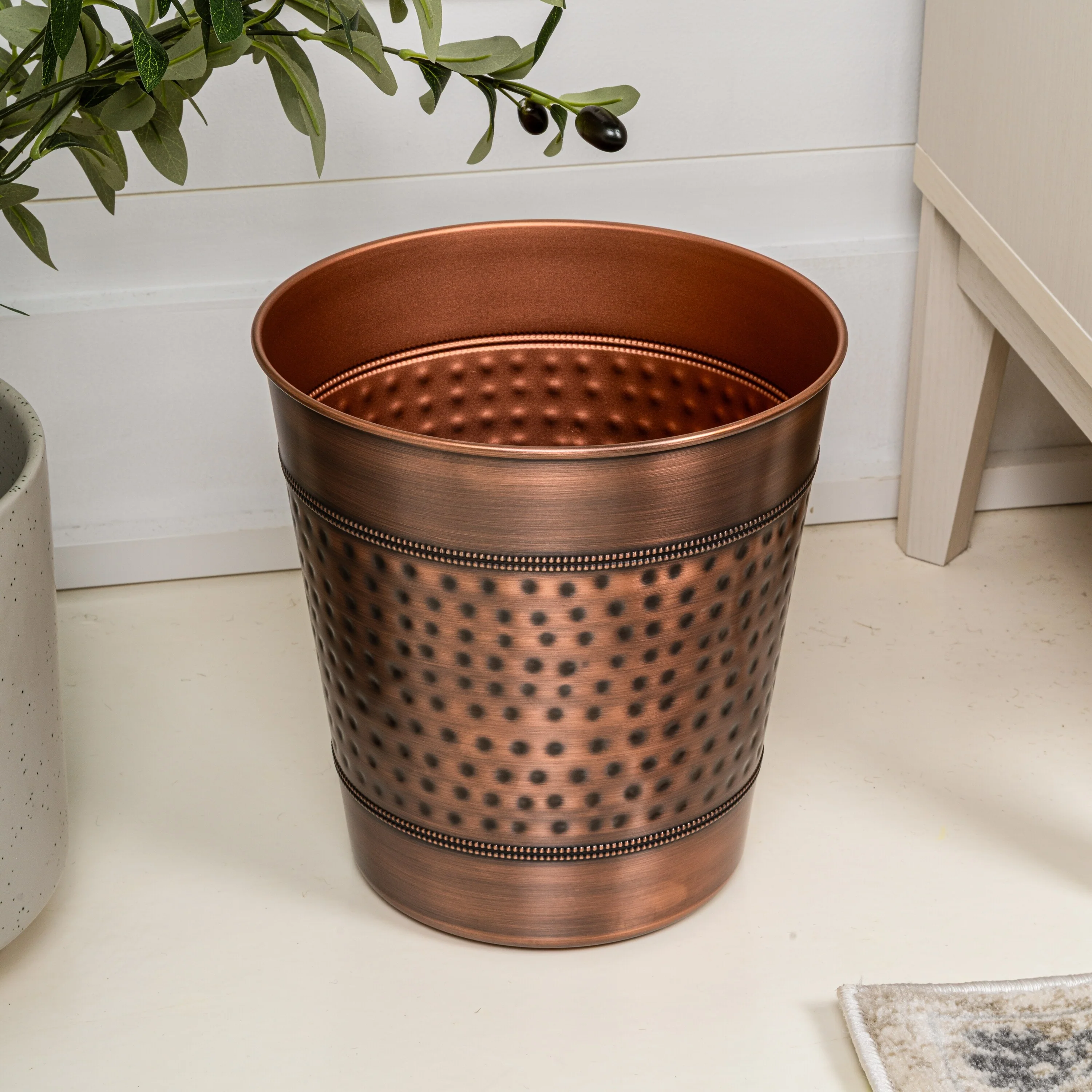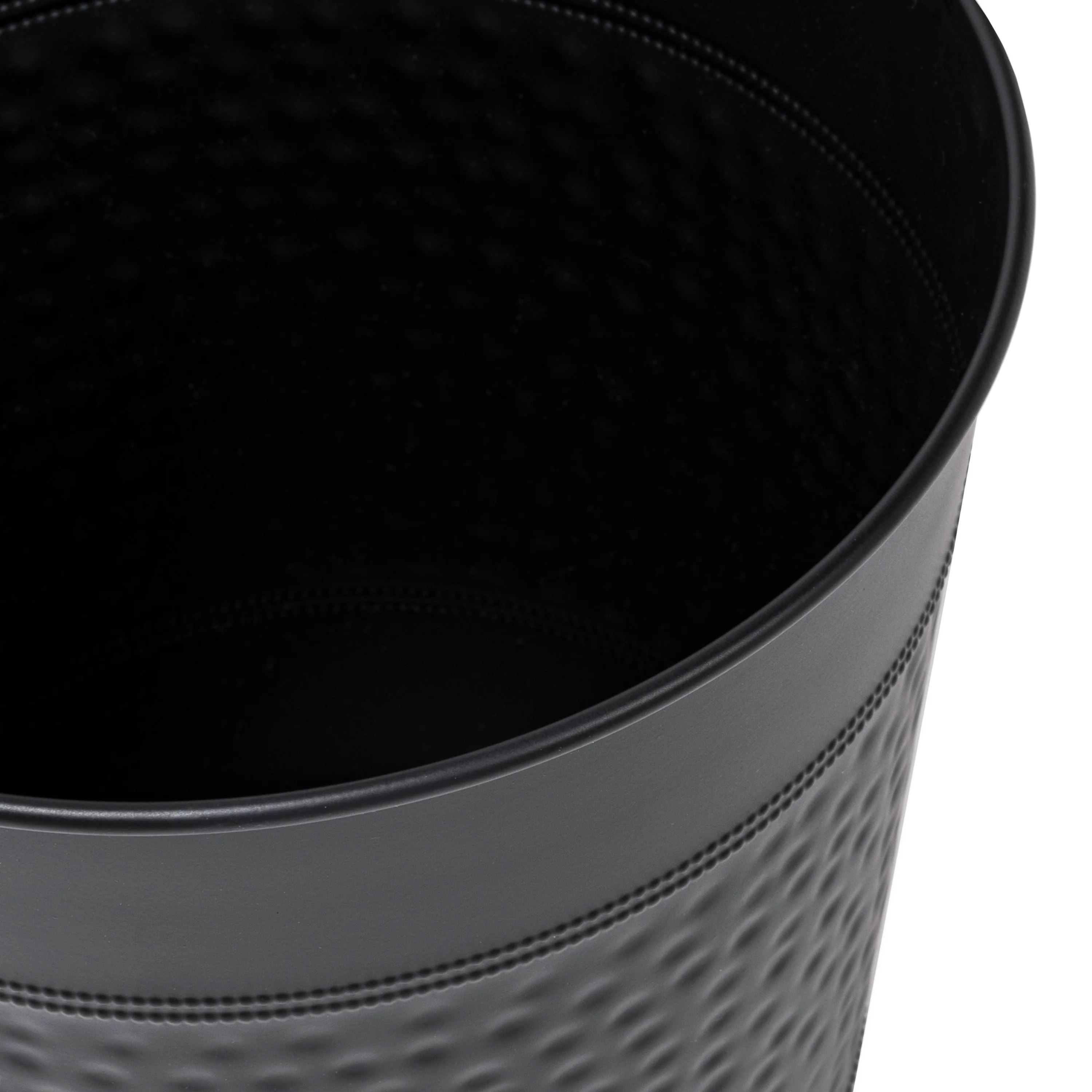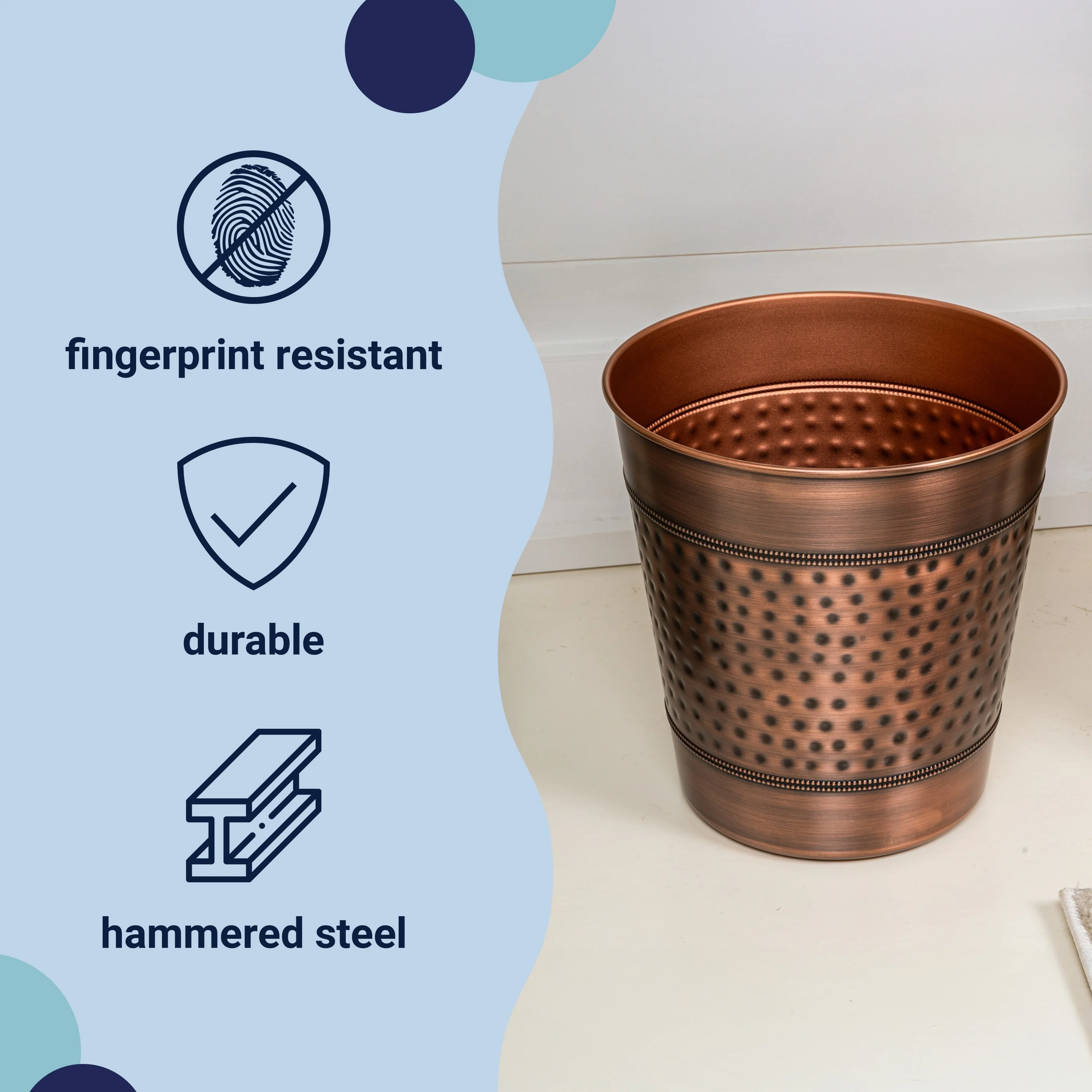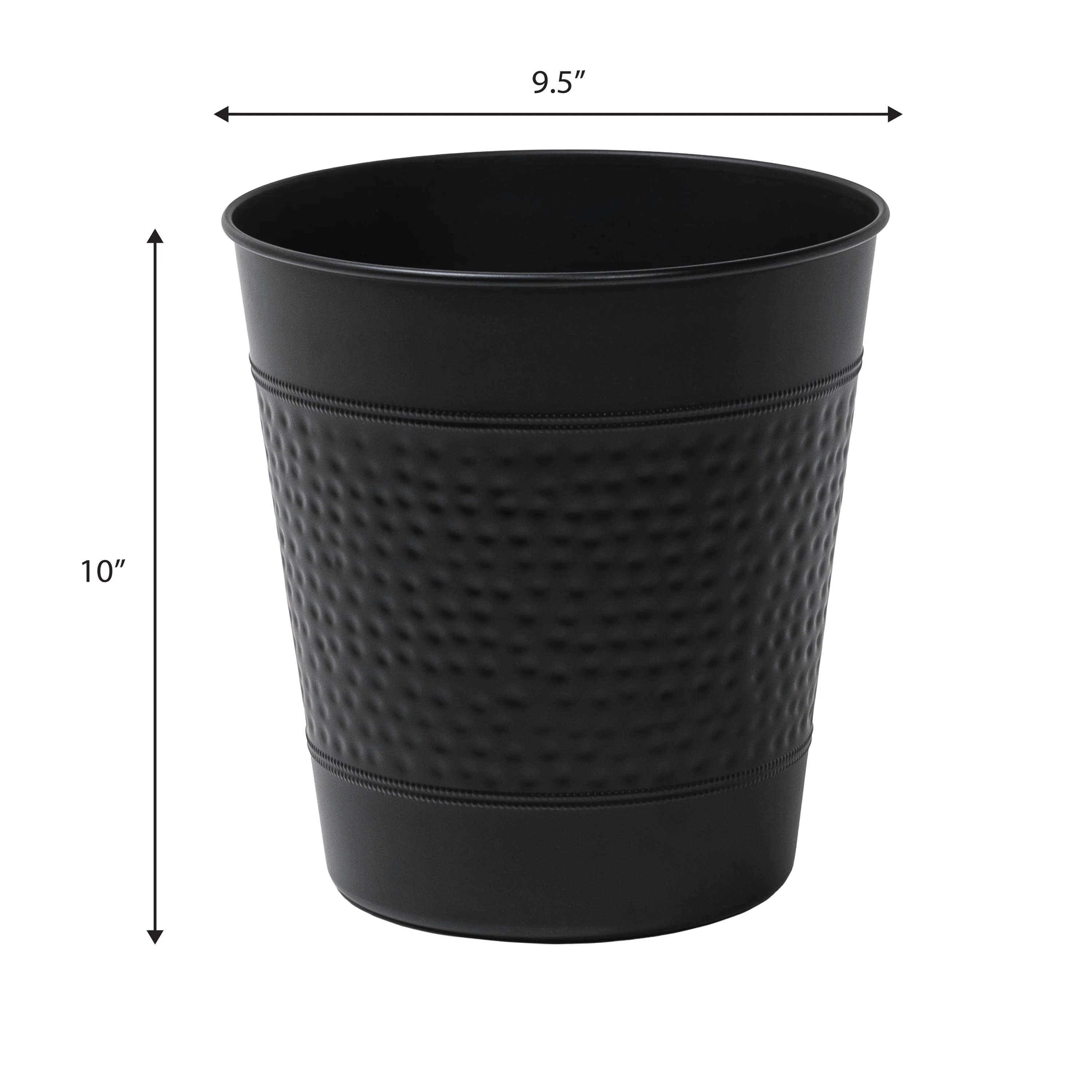 The small size of this classic trash can is ideal for the bathroom, bedroom or office. Made from durable steel, it has an accent band of hammered texture. Add a modern touch to any space with this stylish trash receptacle.