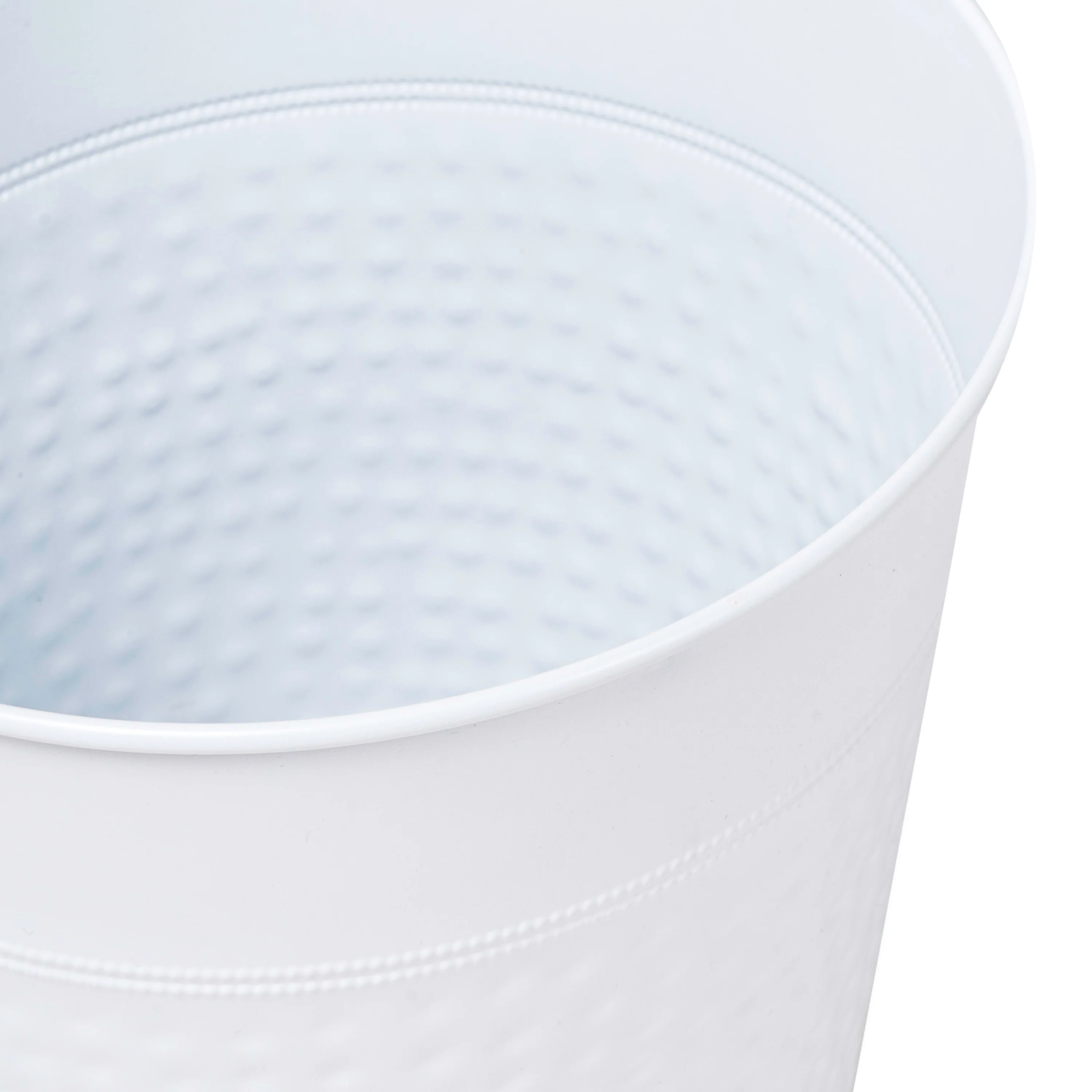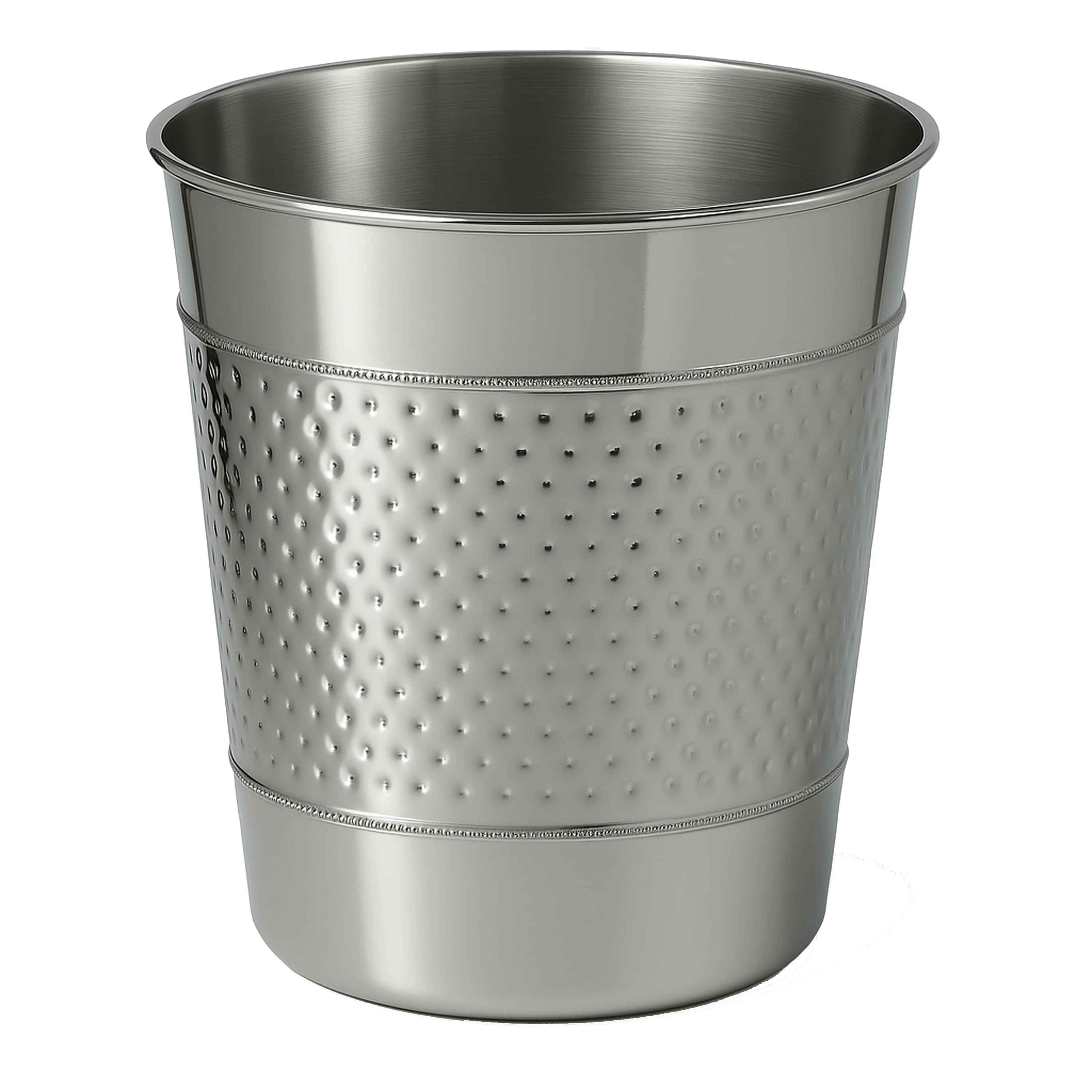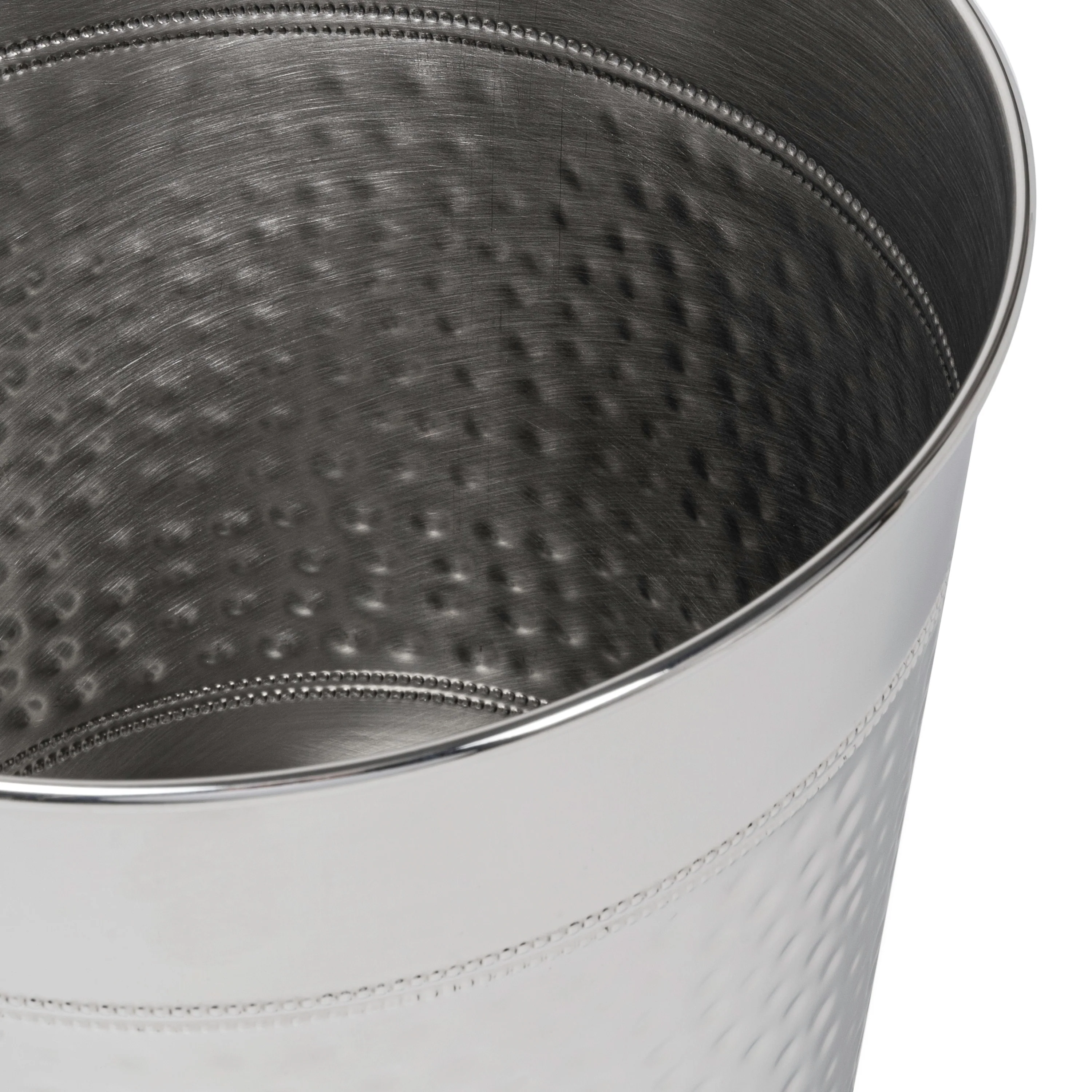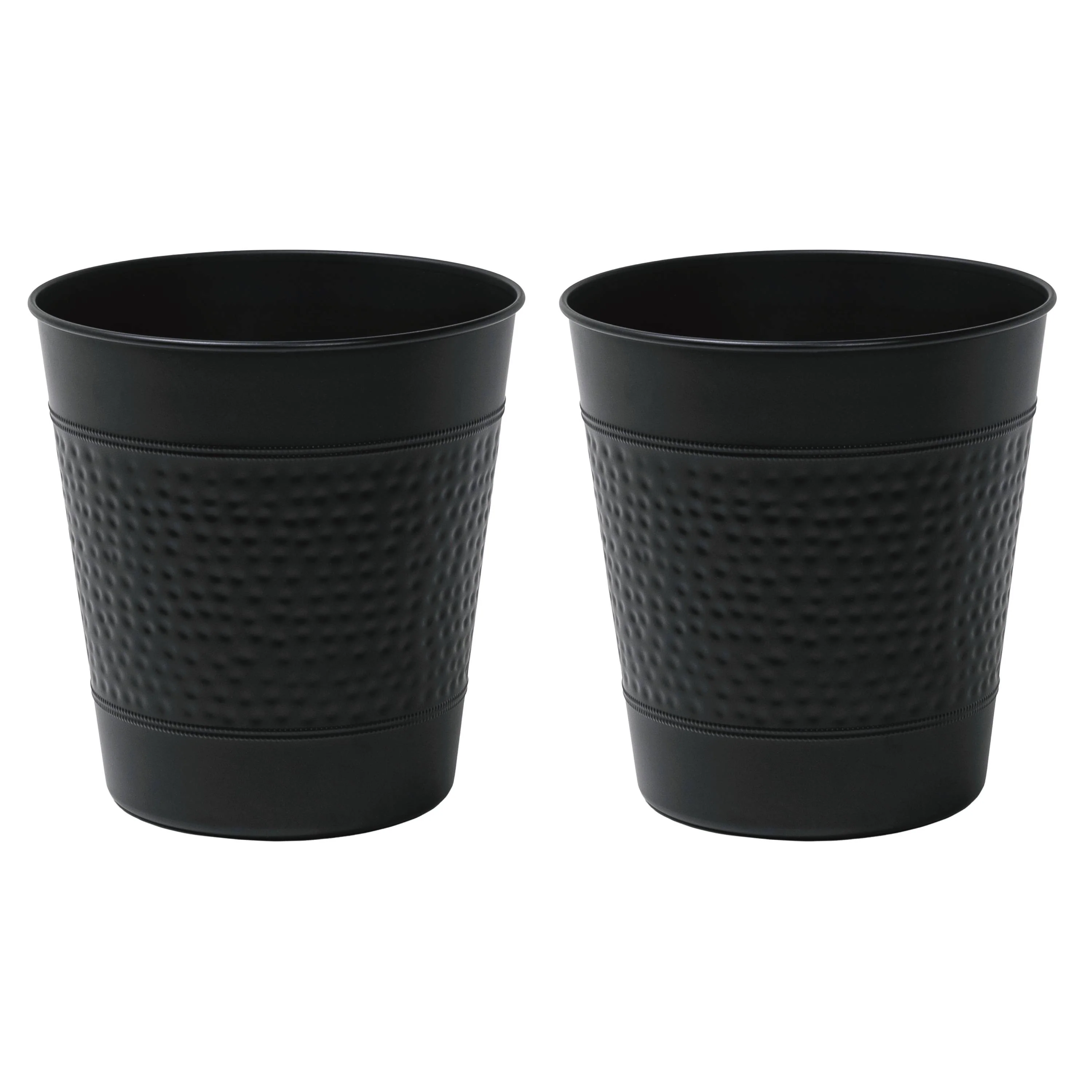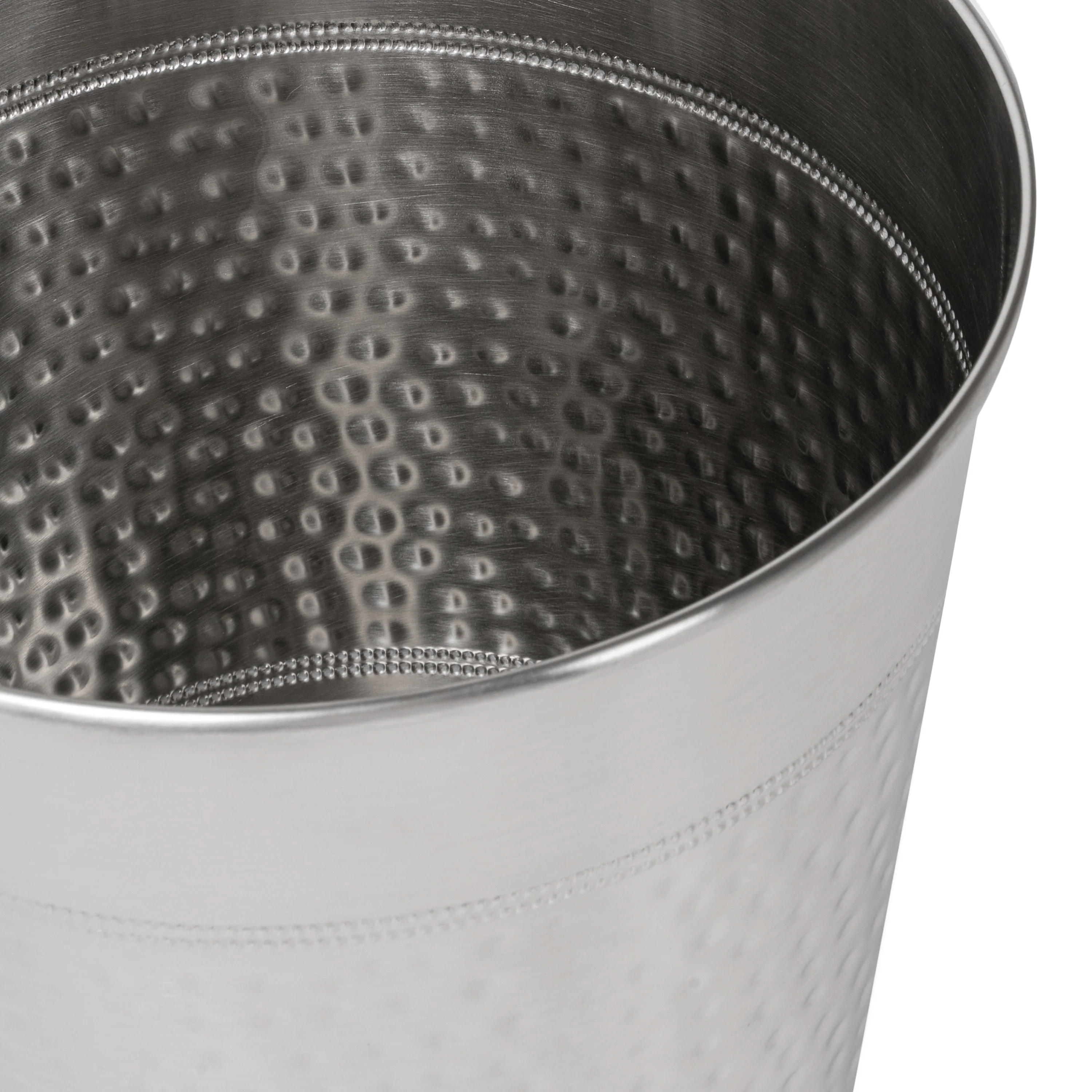 The small size of this classic trash can is ideal for the bathroom, bedroom or office. Made from durable steel, it has an accent band of hammered texture. Add a modern touch to any space with this stylish trash receptacle.