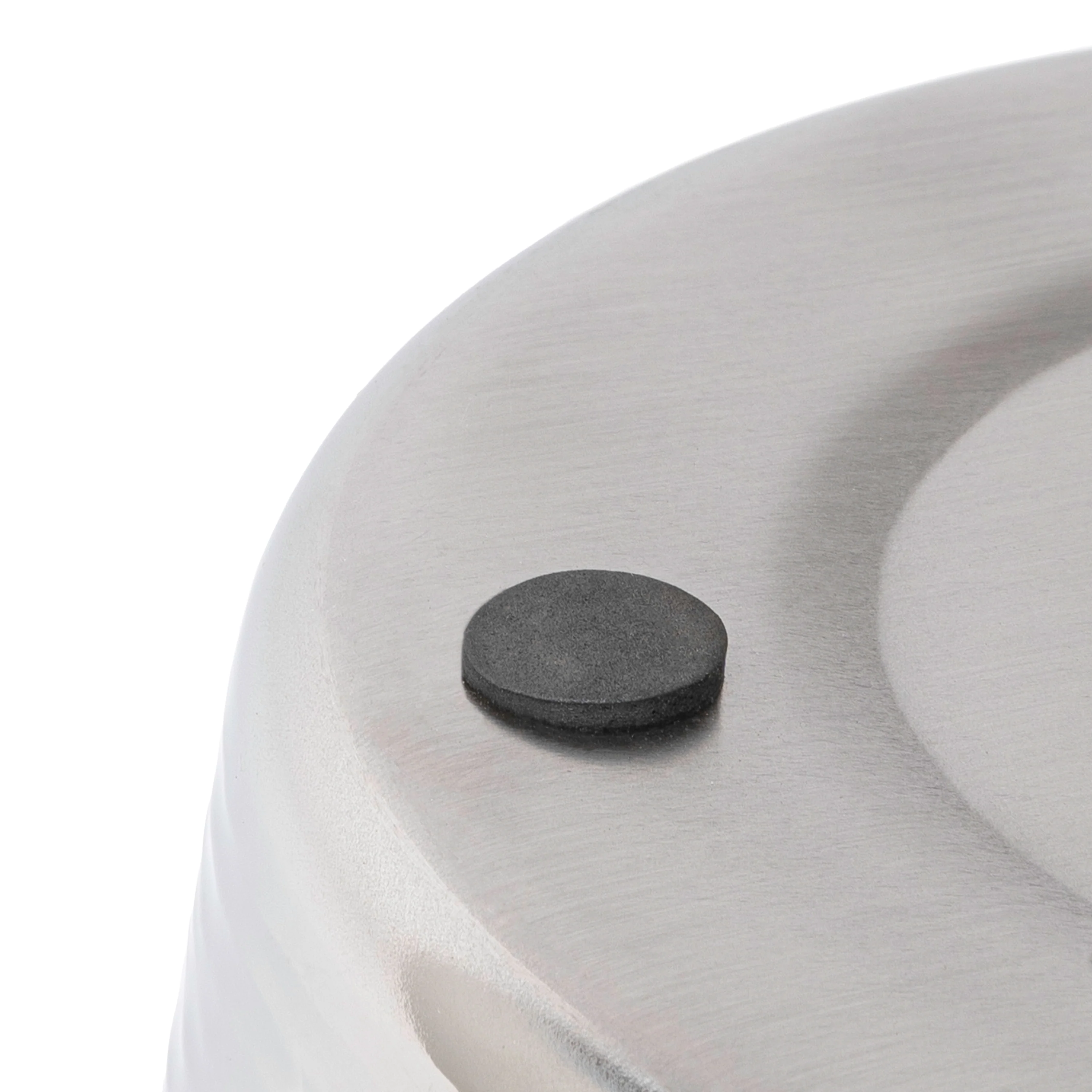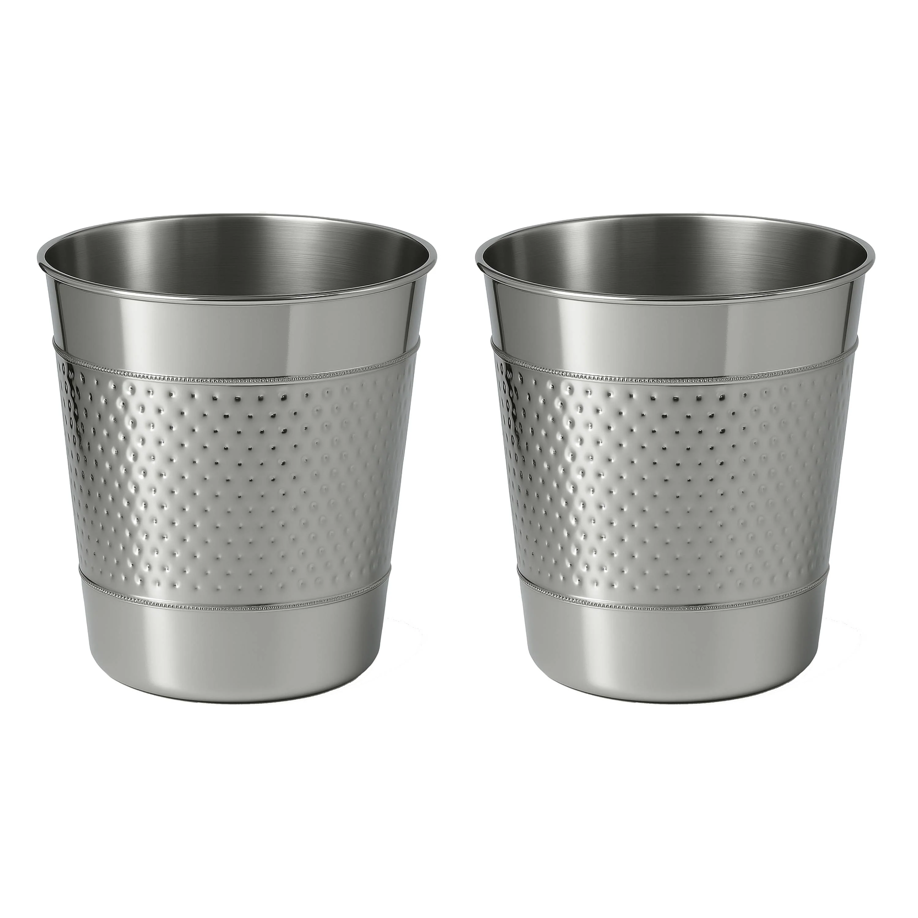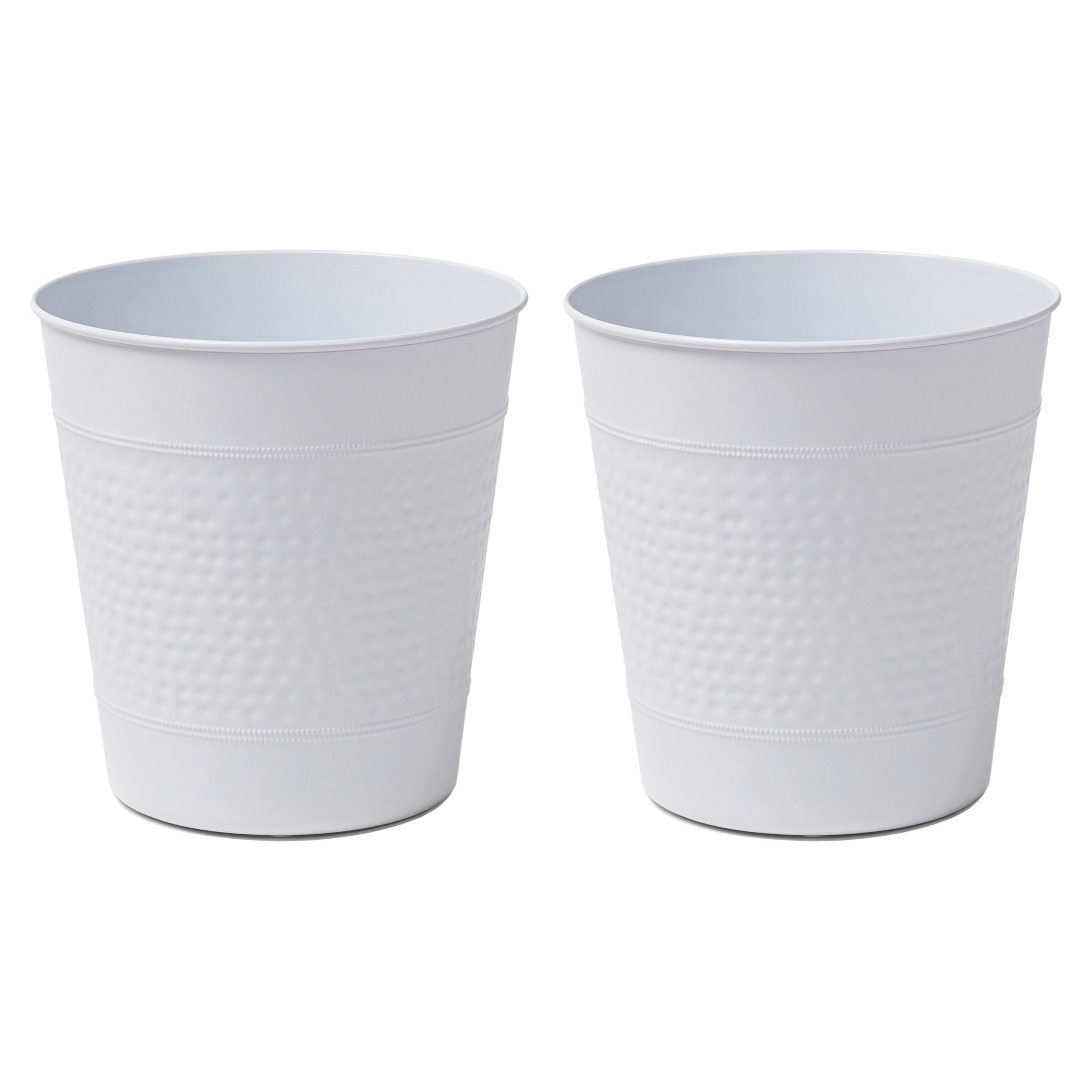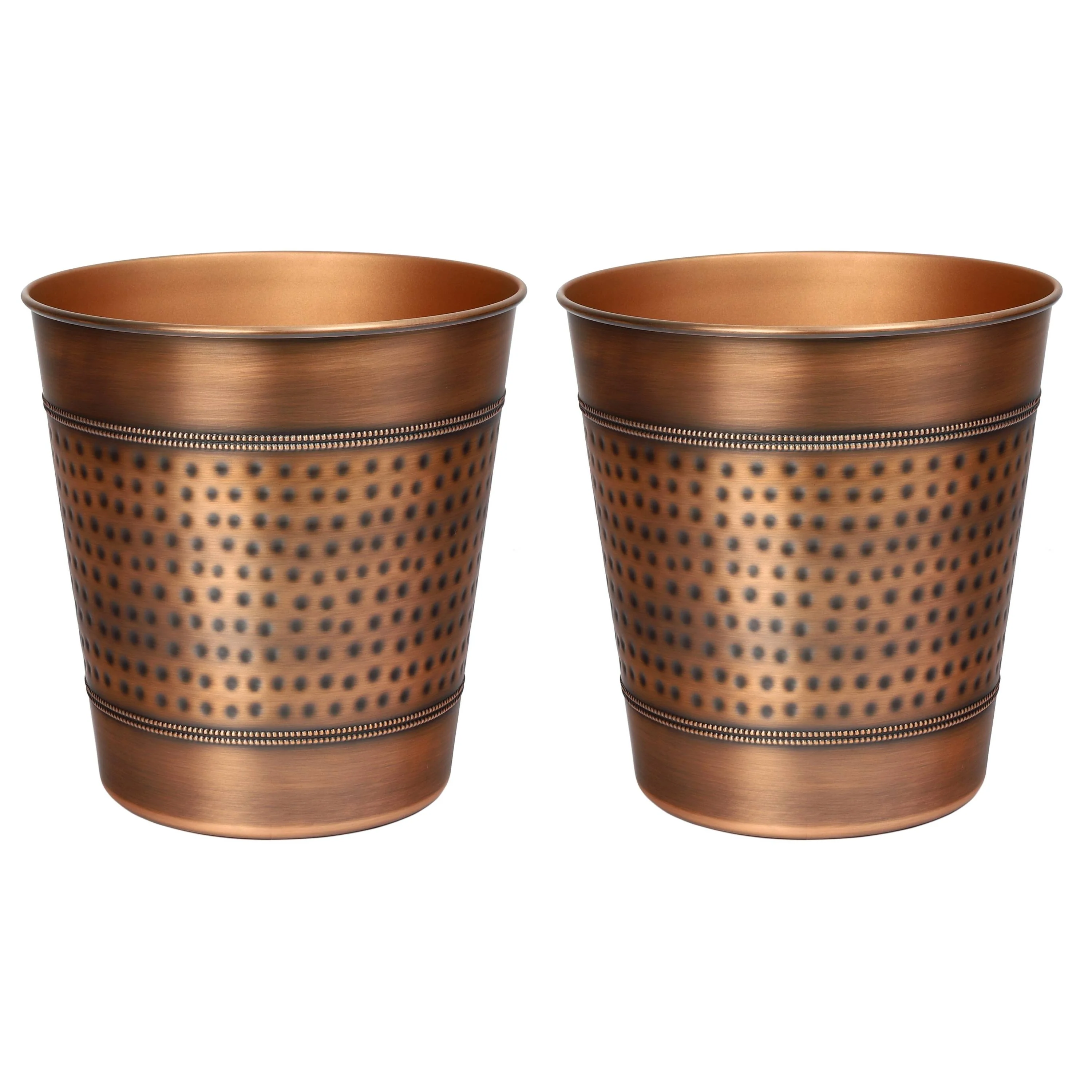The small size of this classic trash can is ideal for the bathroom, bedroom or office. Made from durable steel, it has an accent band of hammered texture. Add a modern touch to any space with this stylish trash receptacle.