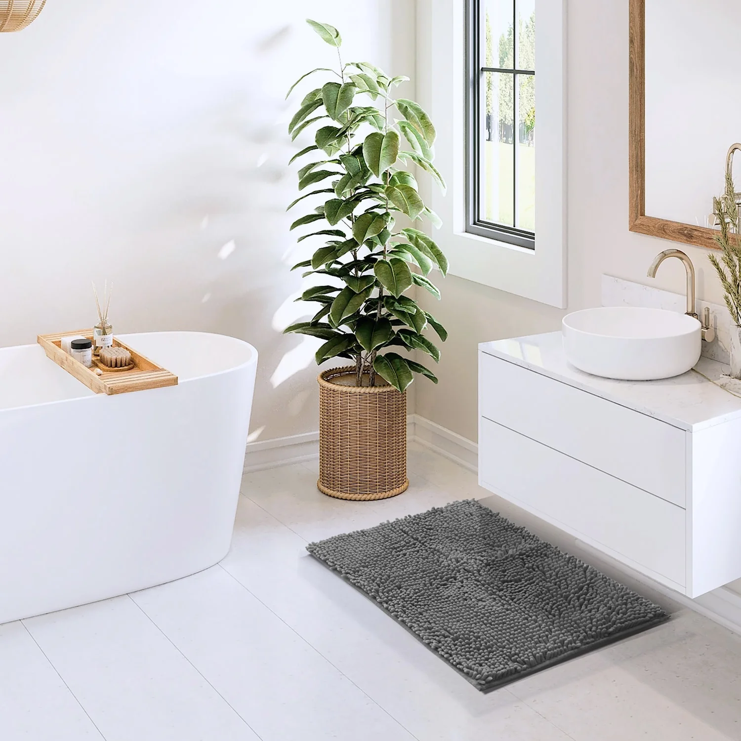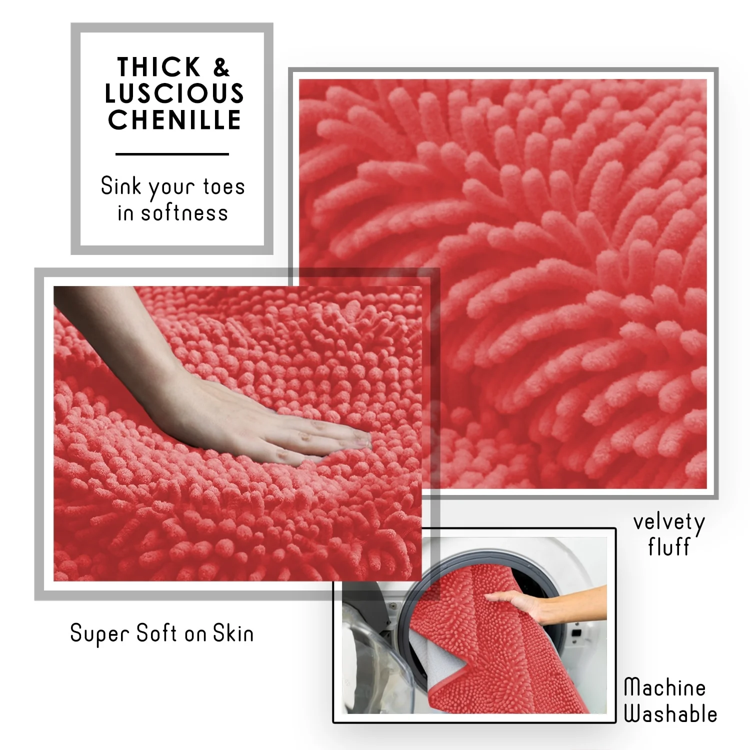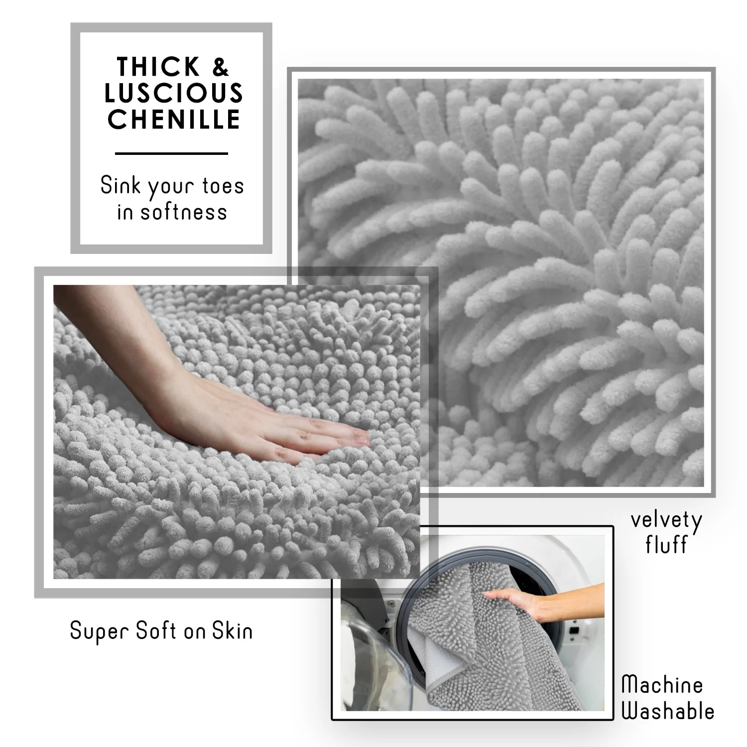 Say goodbye to slippery rugs with our premium nonslip chenille rugs. The rugs’ practical design ensures utmost comfort with high-pile fabric making it luxuriously soft to step on. It’s crafted from velvety microfiber chenille that is looped for extra loftiness. These rugs will keep your bathroom floors clean and dry while adding the perfect finishing touch to any bathroom style.