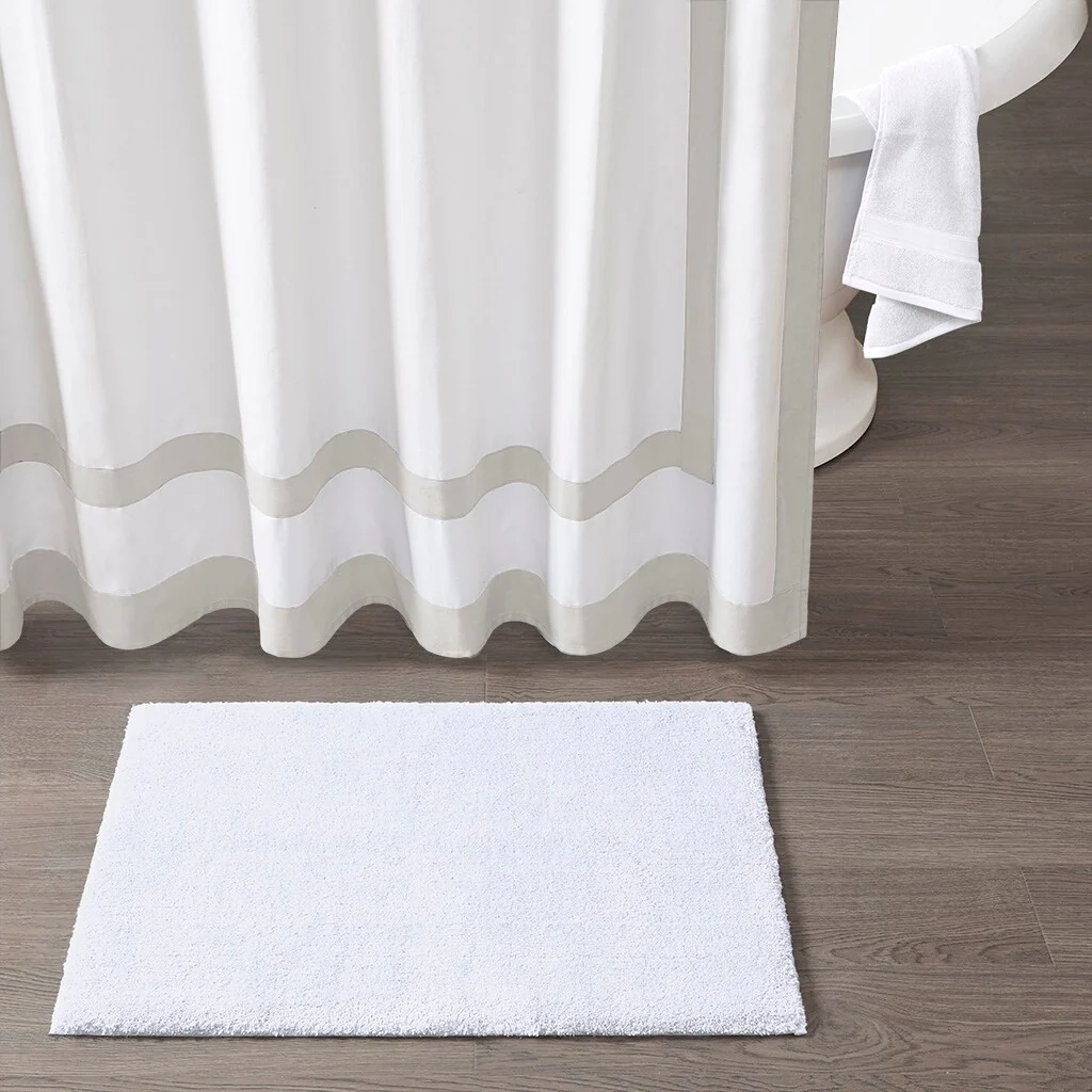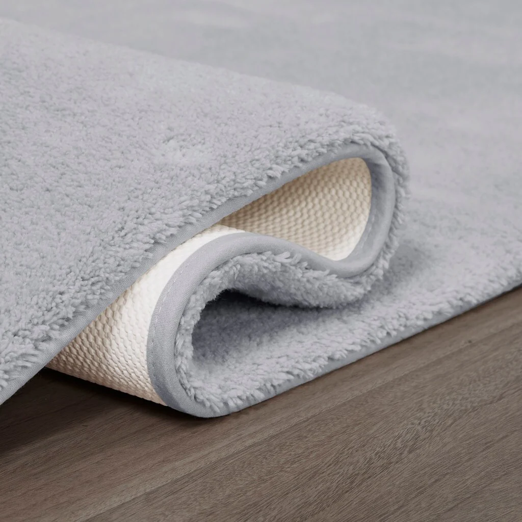 - This spa-quality bath rug is made of resilient high pile tufted microfiber for an incredibly plush feel, while also featuring a proprietary quick-dry technology keeping rug feeling soft and dry each time you step onto it.