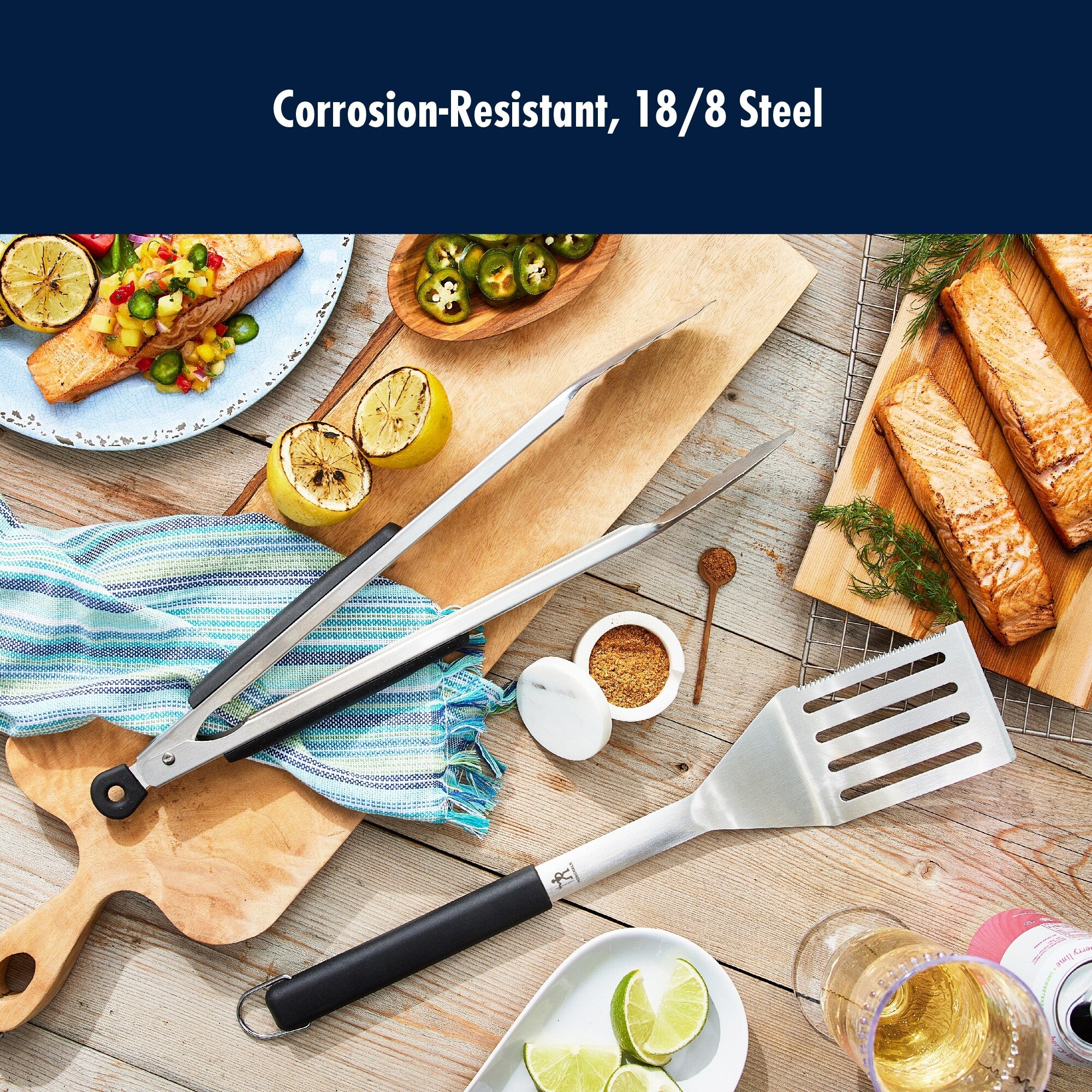 Fire up flavorful backyard feasts with HENCKELS BBQ grill tools and accessories. Designed to inspire new ways to cook outdoors, you’ll unlock the full potential of your grill so you can take every flame-kissed meal to the next level.