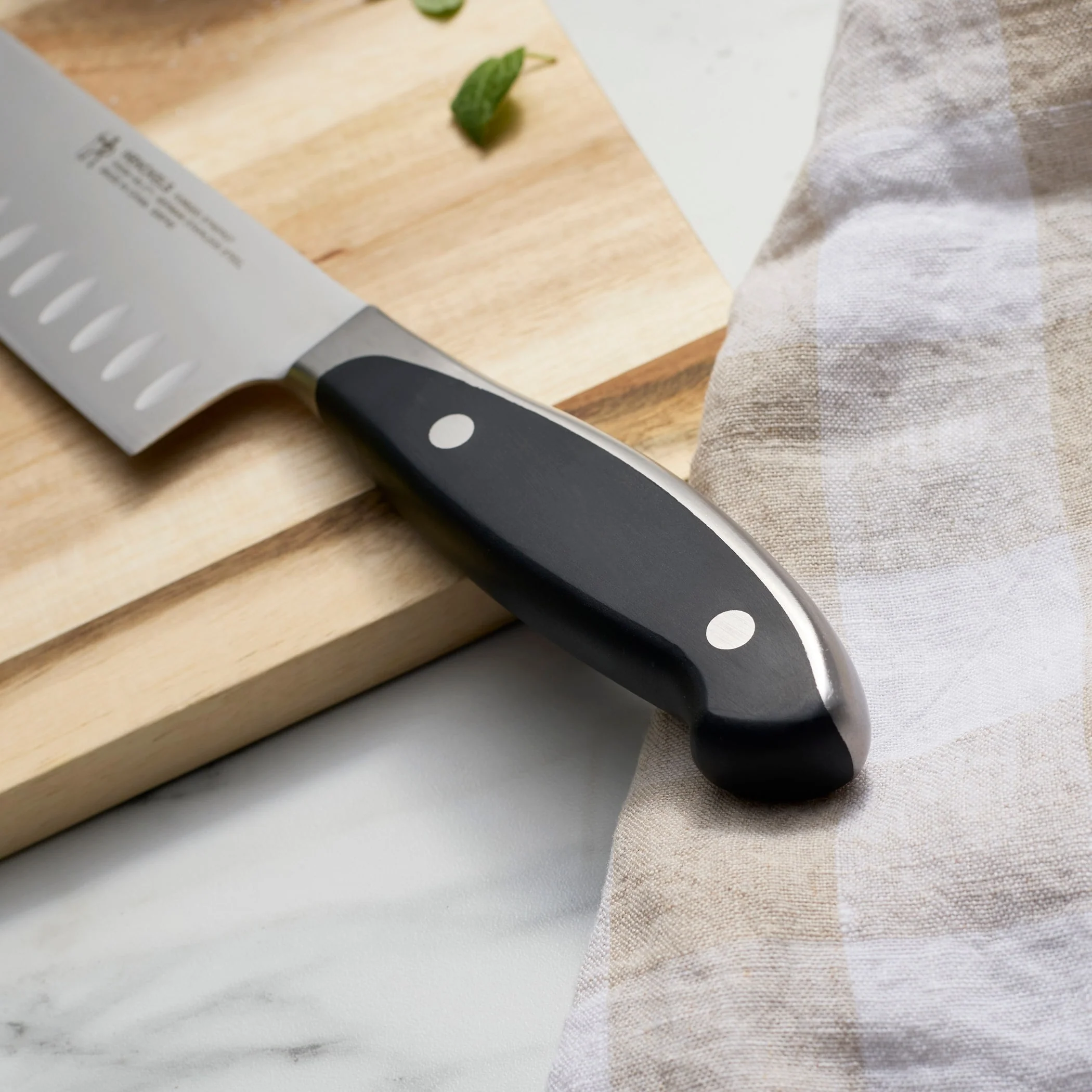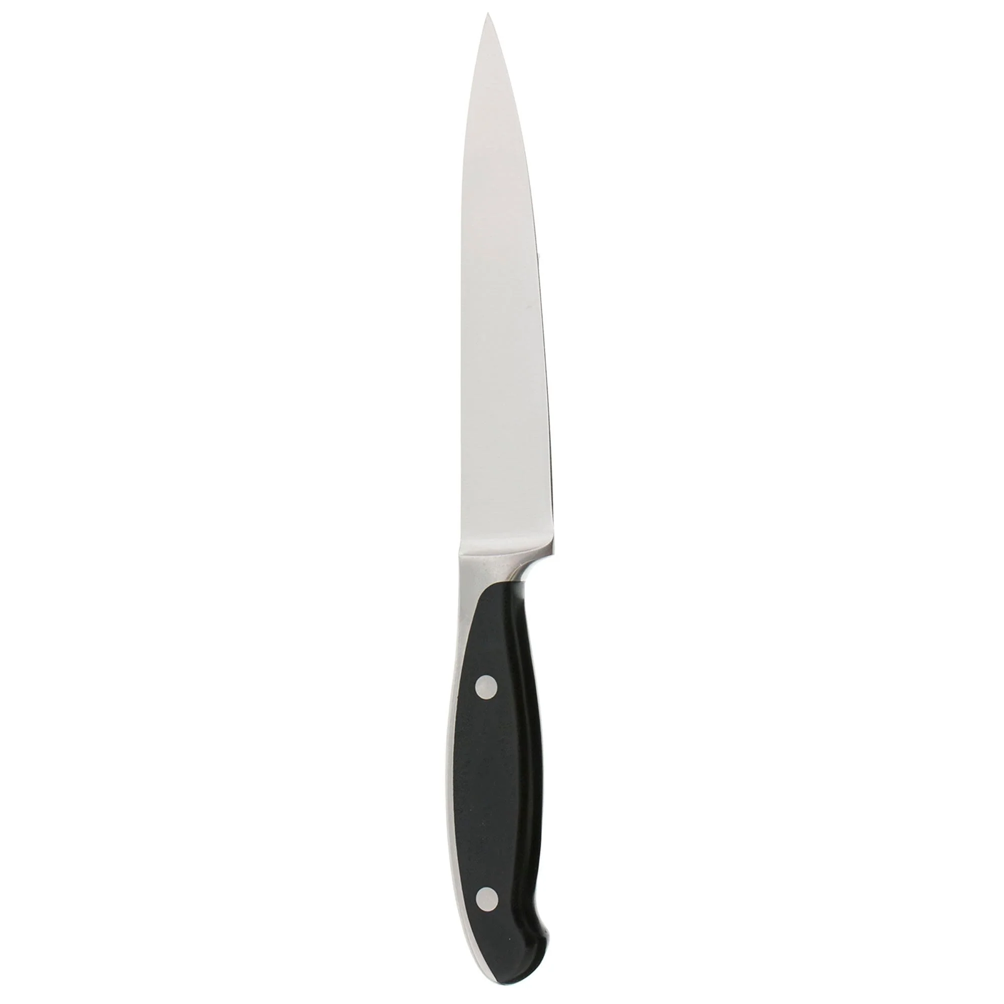 The Henckels International Forged Synergy 6" Utility Knife allows you to cut with confidence. Fabricated from high-quality German stainless steel, the fine-edge blade produces precision cuts. Slice strawberries, mince garlic, and cut cheddar effortlessly – this small, lightweight knife is perfect for detailed work.