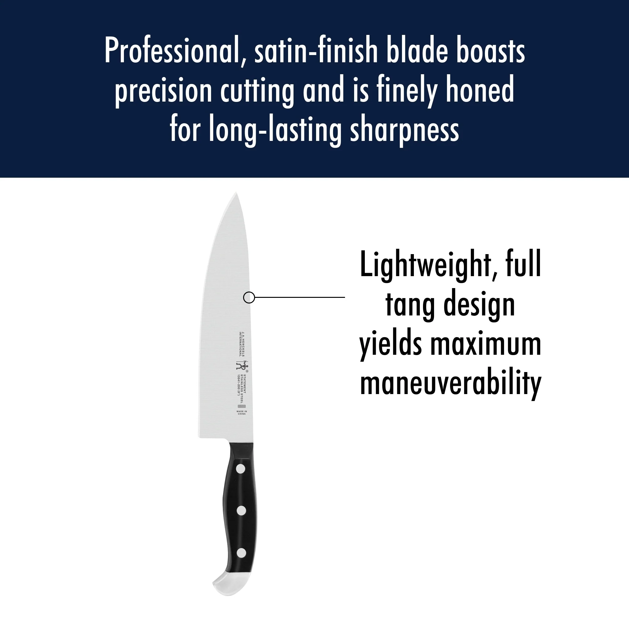 - Professional, satin-finished blade boasts precision cutting and is finely honed for long-lasting sharpness