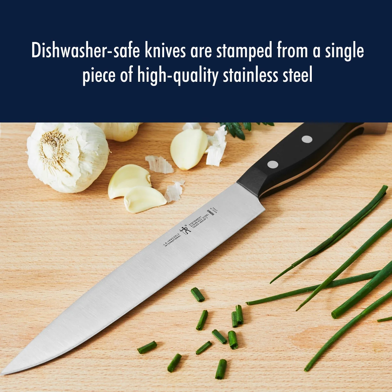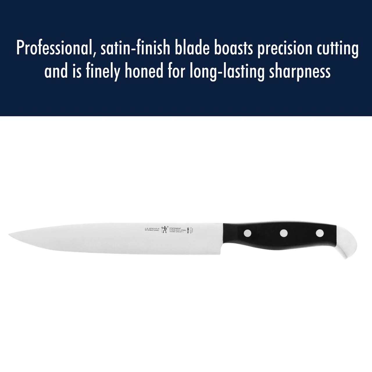 The Henckels International Statement 8" Slicing Knife makes it easy to serve and slice meat beautifully. Honed for long-lasting sharpness, the fine-edge blade boasts precision cuts. Confidently carve roast turkey, slice ham smoothly, and cut prime rib into succulent slices.