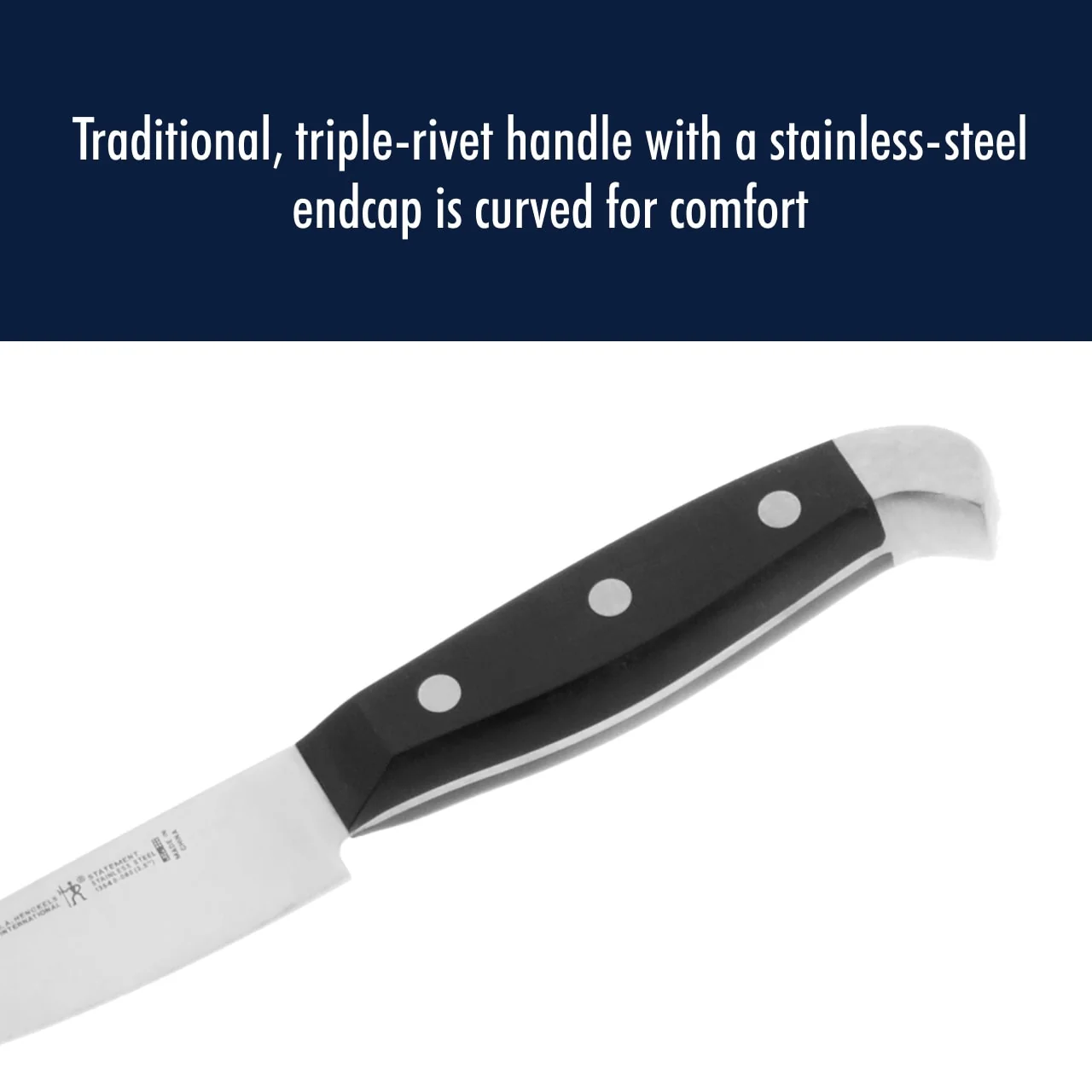 - Traditional triple-rivet handle with stainless steel endcap offers balance