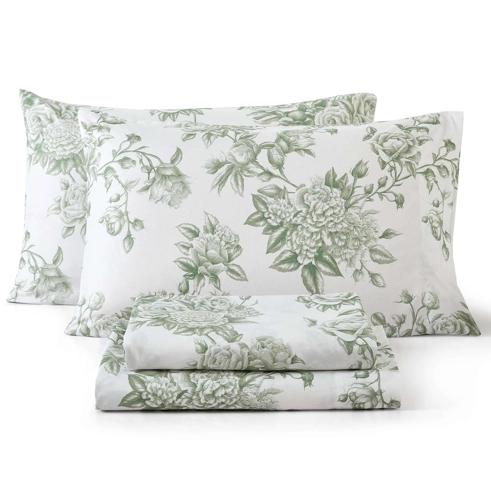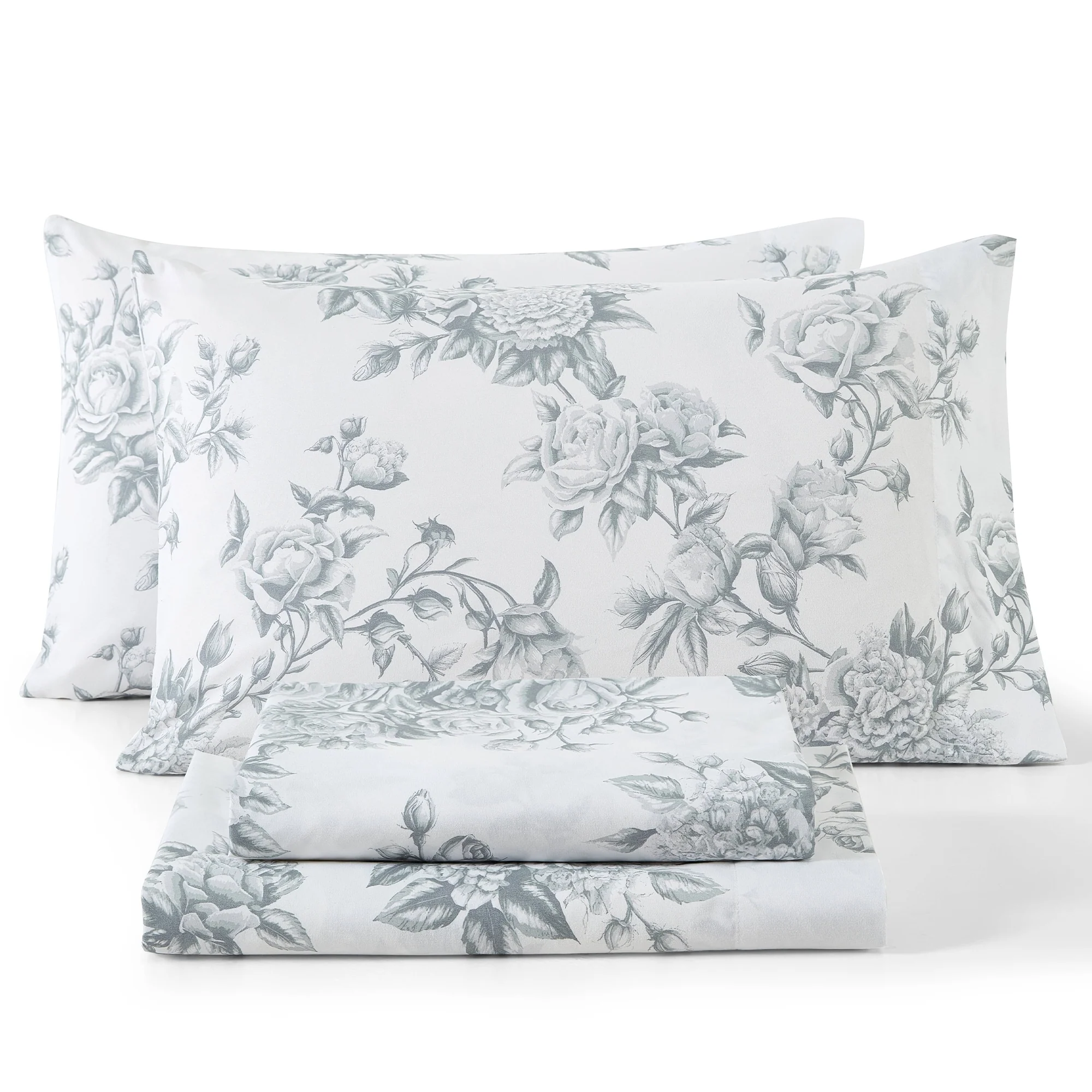 HLC.ME Floral Bed Sheets – Multi-Piece Bed Sheet Set – Wrinkle Resistant & Ultra Soft – Fits Mattresses up to 15 Inches Deep