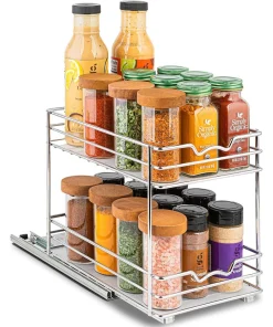 The HOLDN’ STORAGE 2 tier Pull Out Cabinet Organizer is a robust spice rack designed for efficient kitchen organization. Constructed from heavy-duty chrome metal, it provides both durability and style. Its compact size is ideal for larger spice containers and ensures easy access to your spices with a smooth sliding mechanism. Installation is hassle-free.