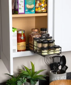 Hold N’ Storage – Black Pull out Spice Rack Organizer for Cabinet for Spices, Sauces and more