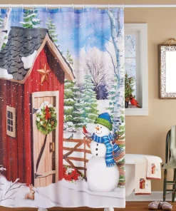 Holiday Outhouse with Snowman Bathroom Shower Curtain