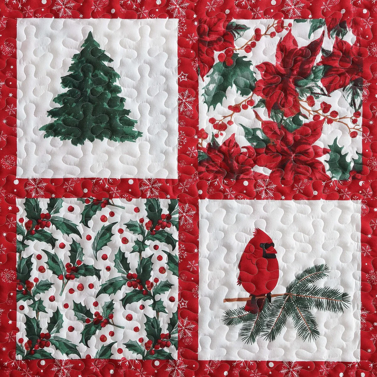Design: Our quilt features a carefully curated design that captures the essence of the holidays. Adorned with classic motifs such as poinsettias, evergreen branches, joyful ornaments, and fun holiday prints, it’s a true celebration of the season’s magic. The colors are rich and inviting, embodying the warmth of a crackling fireplace on a chilly winter’s night.Â