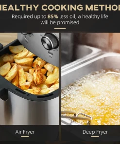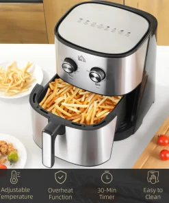 Air fry, bake, broil, and roast with this time-saving kitchen upgrade that requires 85% less oil for the same crisp. The quick and even 360° heating ensures quality results that make for healthy, diet-friendly meals. Eight easy settings provide various temperatures for different foods, offering culinary assistance that simplifies the process when you’re making your own recipe. The family-size basket serves a group of 3 or 4, while the minimalistic shape saves space on countertops. Whether you want the next delicacy smelling up the room to be a whole chicken, steak for fajitas, the potatoey goodness we all know from fast food, or an impromptu meal, this efficient quick-cooking accessory has you covered.