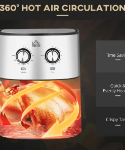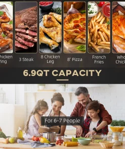 - Air fry, bake, broil, and roast with less preheating for faster prep times