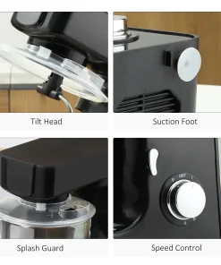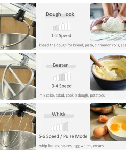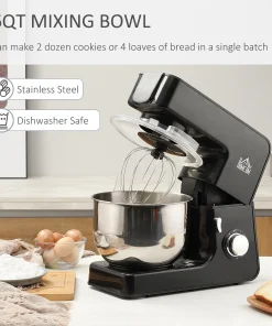 - 6 qt. stainless steel mixing bowl allows you to make two dozen cookies or four loaves of bread in a single batch