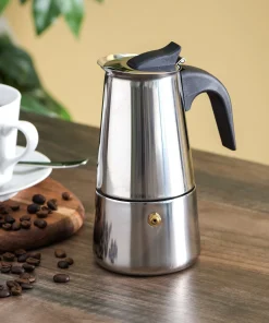 Home Basics 4 Cup Silver Stainless Steel Stovetop Espresso Maker – 0.95 L