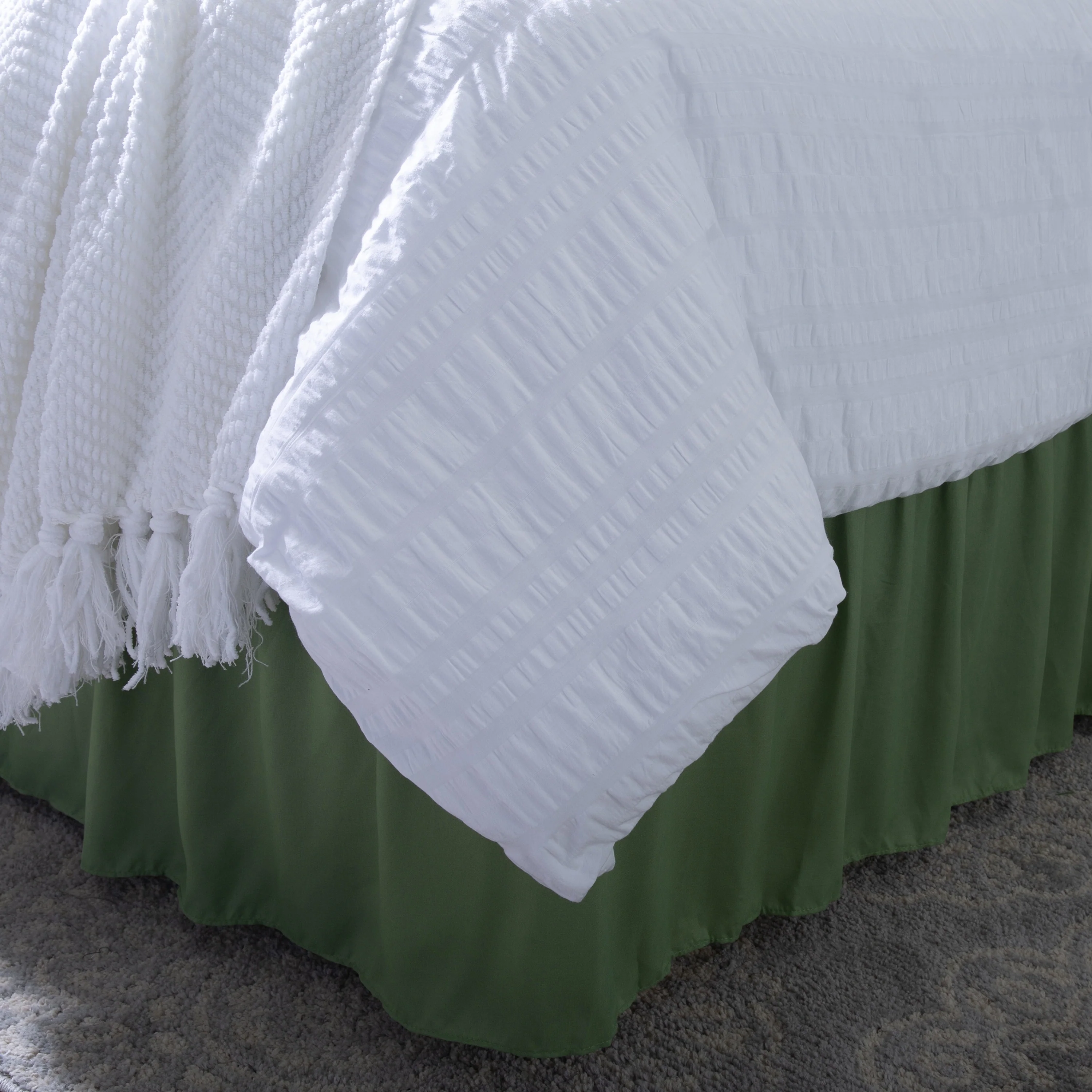 Elevate the look of your bedroom décor with the Home Details Wrap Around Bed Ruffle for Queen/King size beds. Made with soft and durable fabric, this ruffle is tailored to perfection, adding an extra layer of style to your bed. The 14-inch drop ensures complete coverage from the bottom of the mattress to the floor, giving your bed a neat and polished look. Choose from a variety of colors to complement your bedding ensemble.
