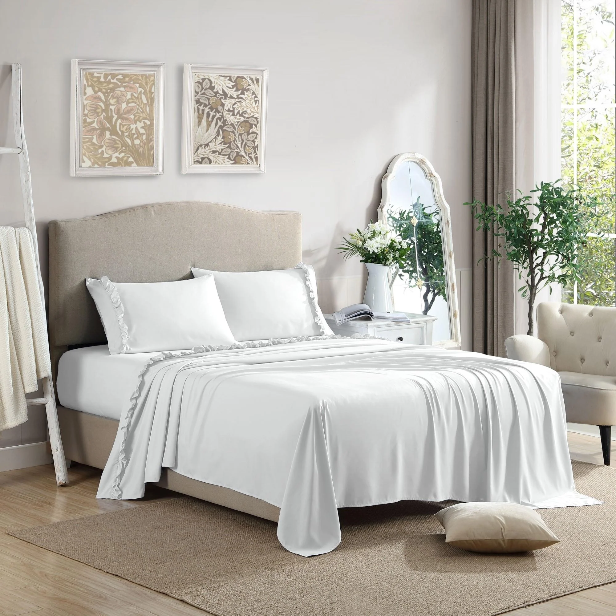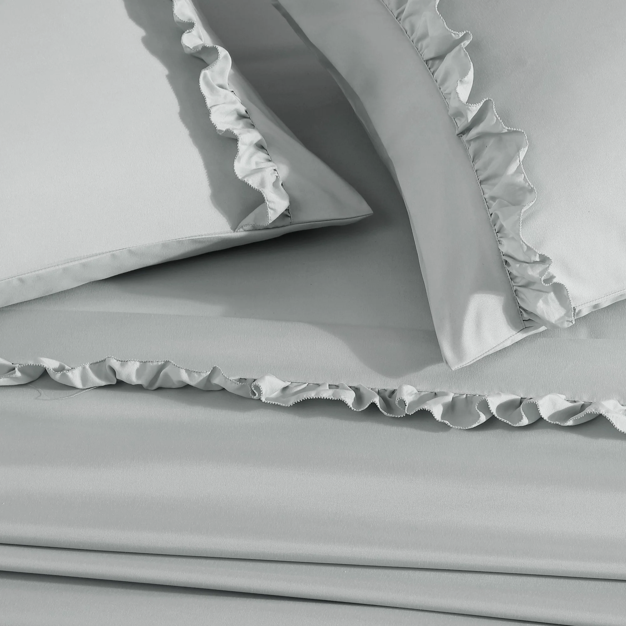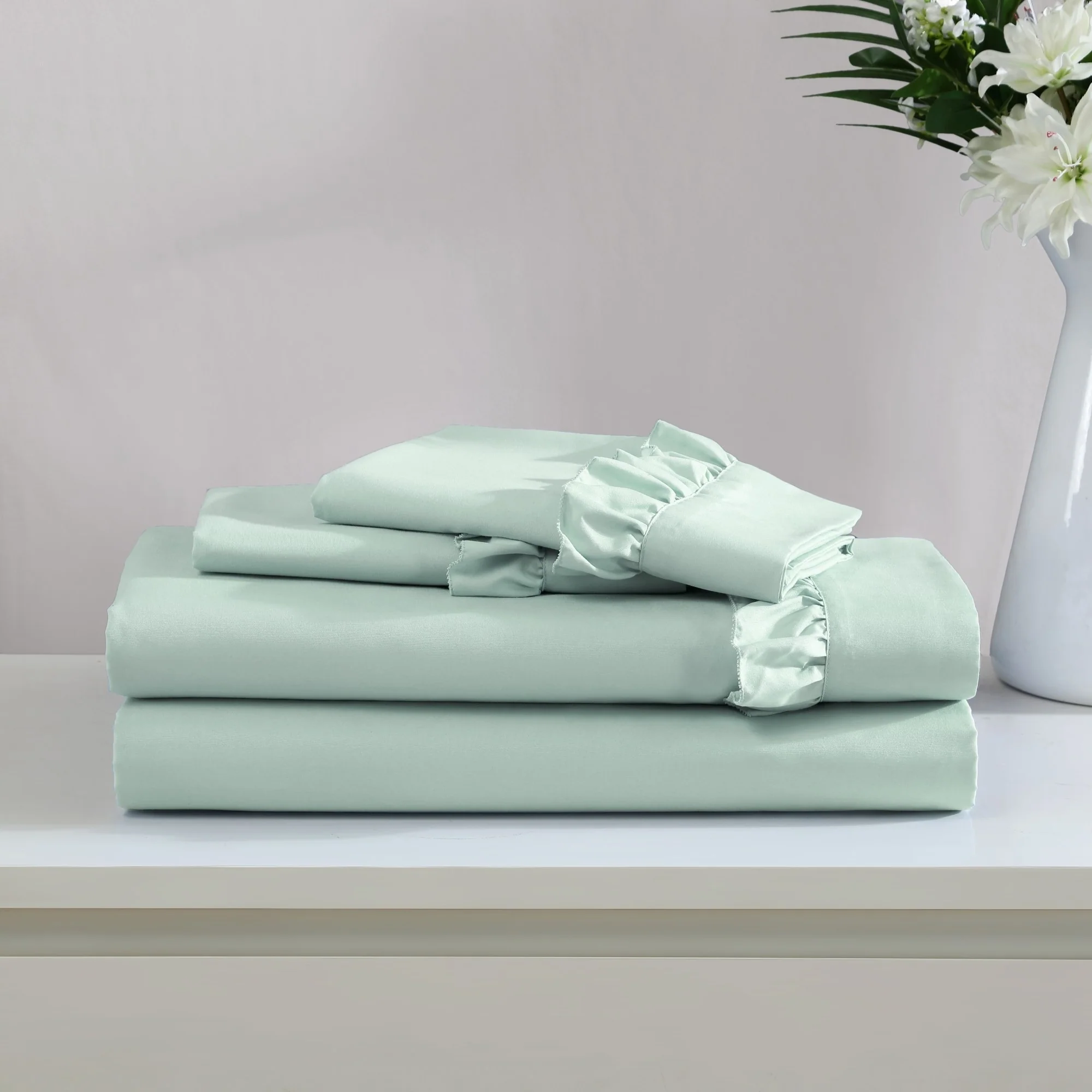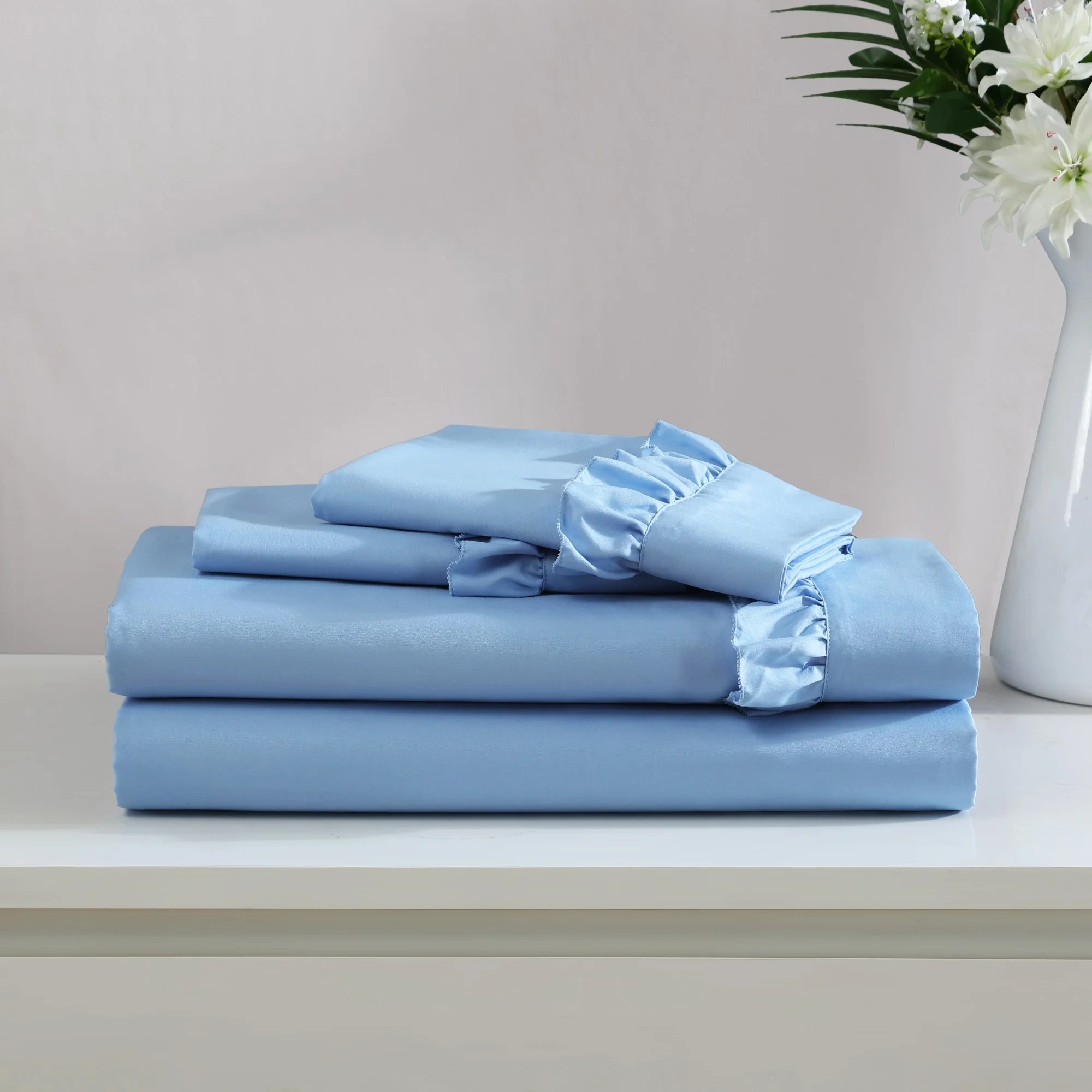 Home Essential Luxurious Silky Ruffle Hem Microfiber Bedding Sheet Set