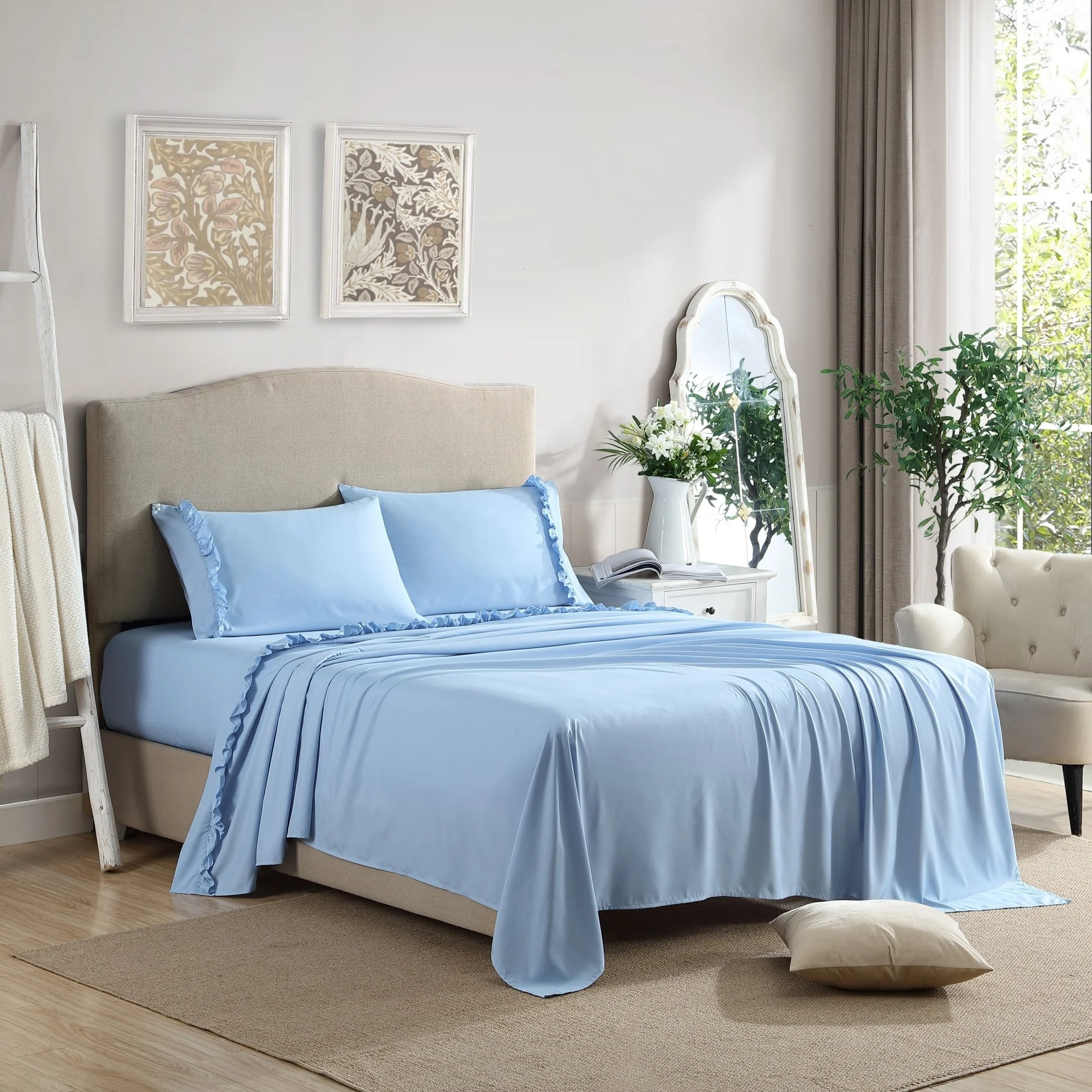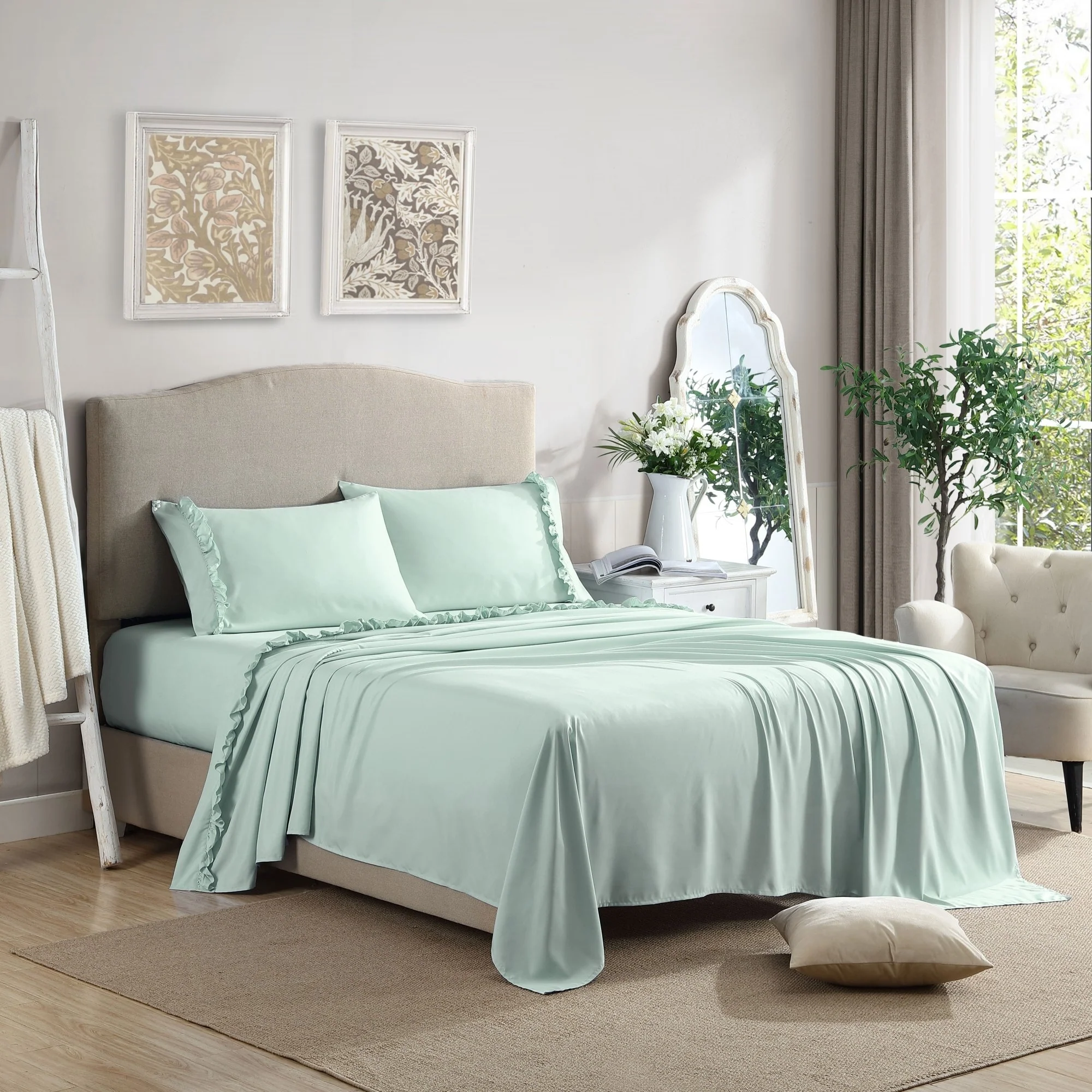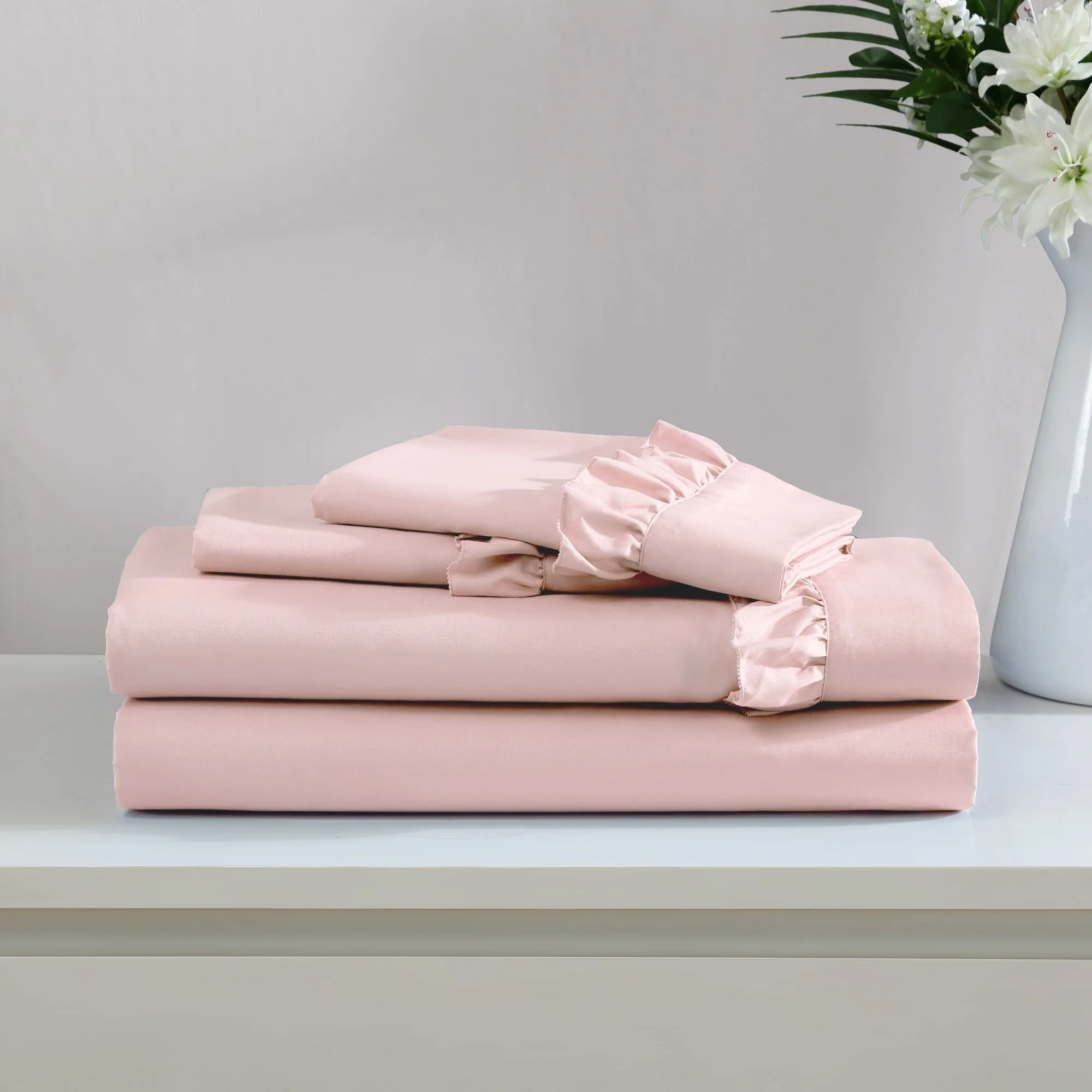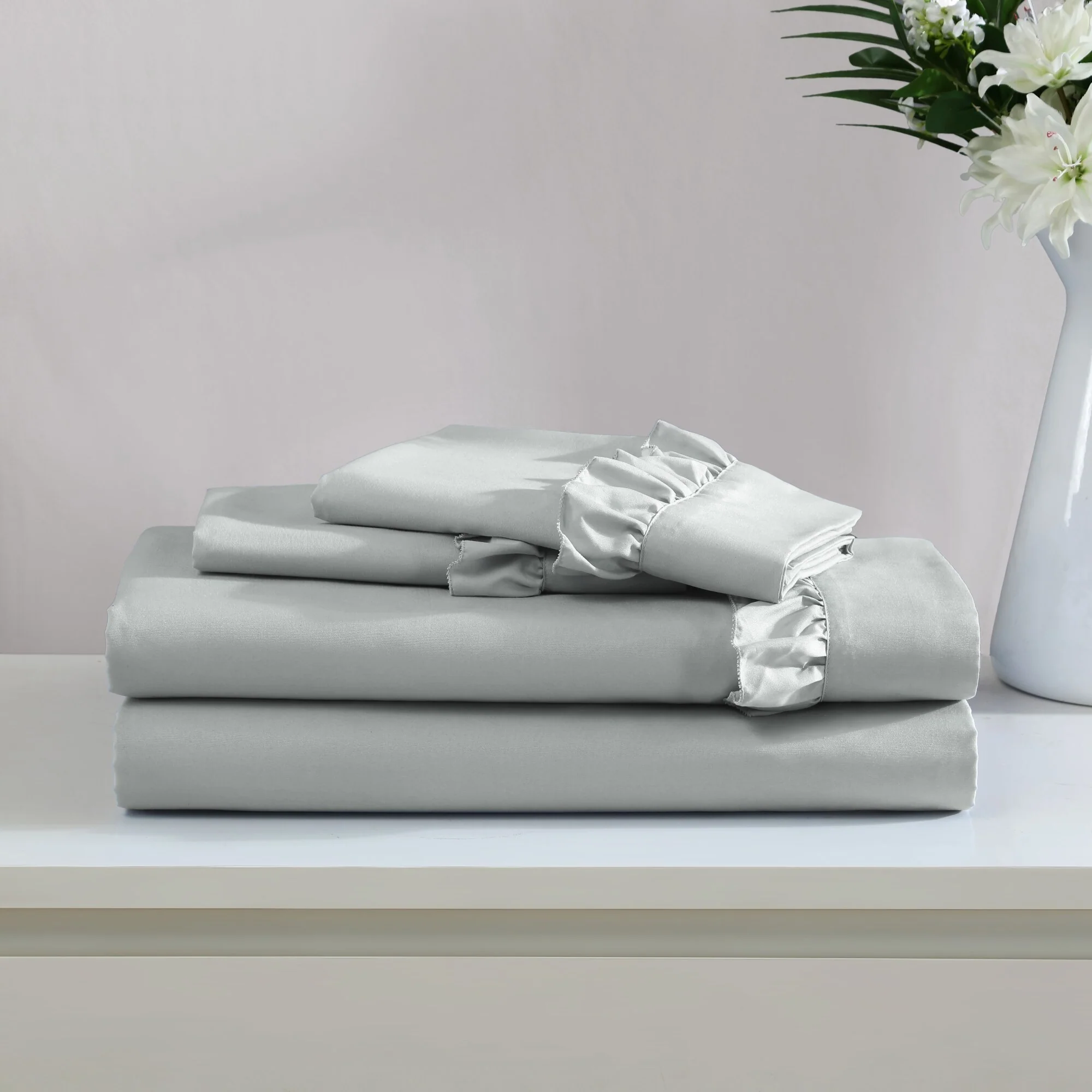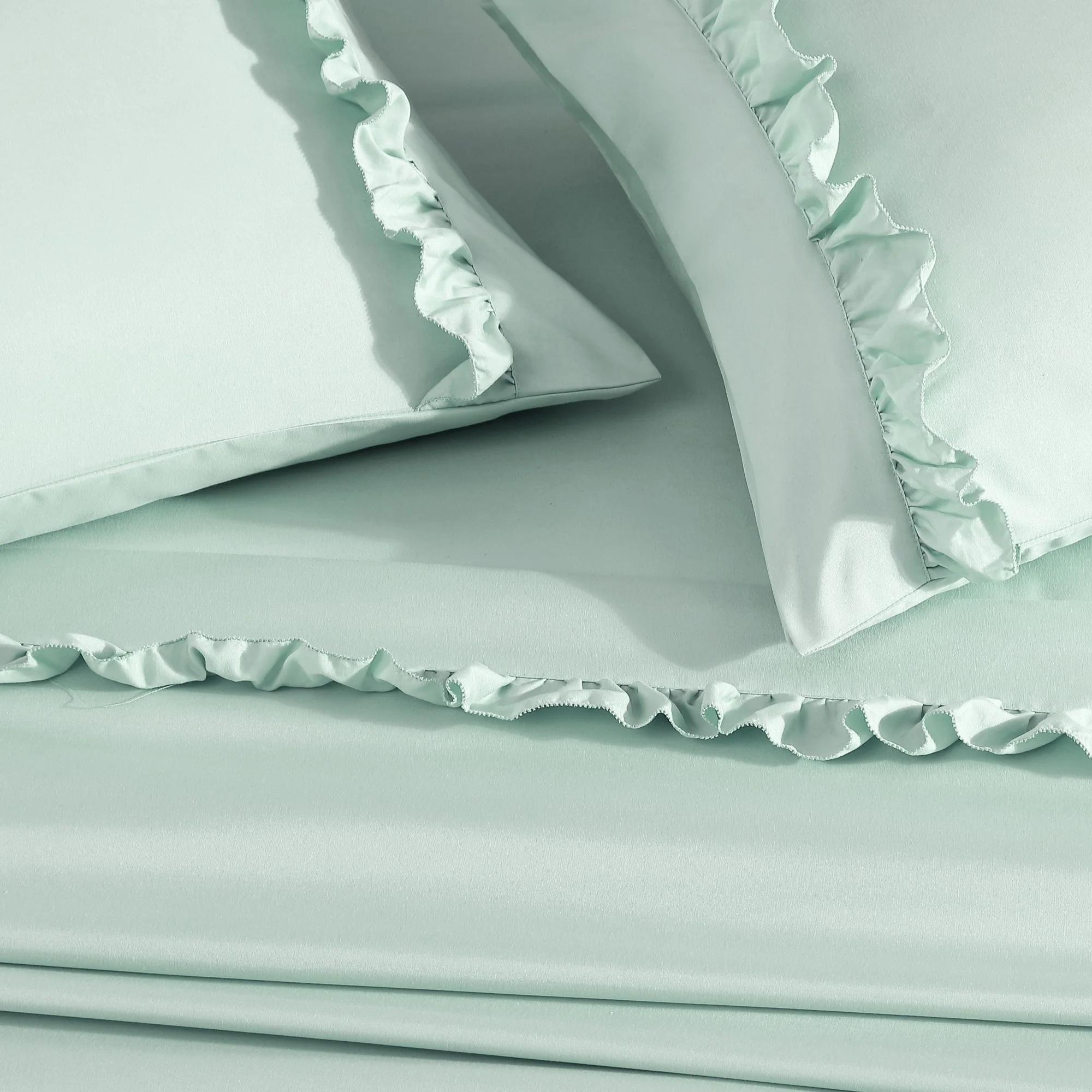 Home Essential Luxurious Silky Ruffle Hem Microfiber Bedding Sheet Set