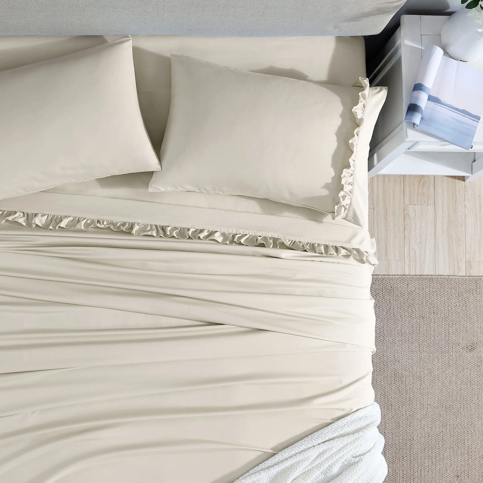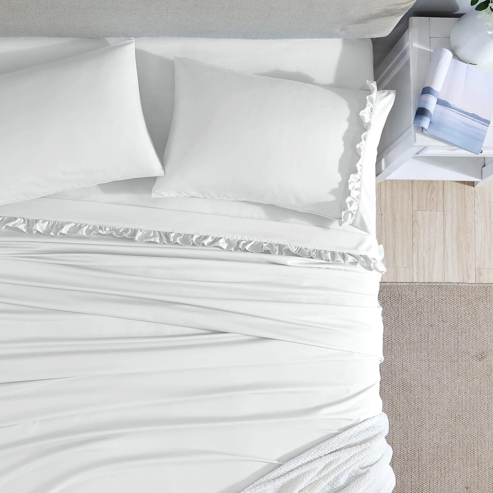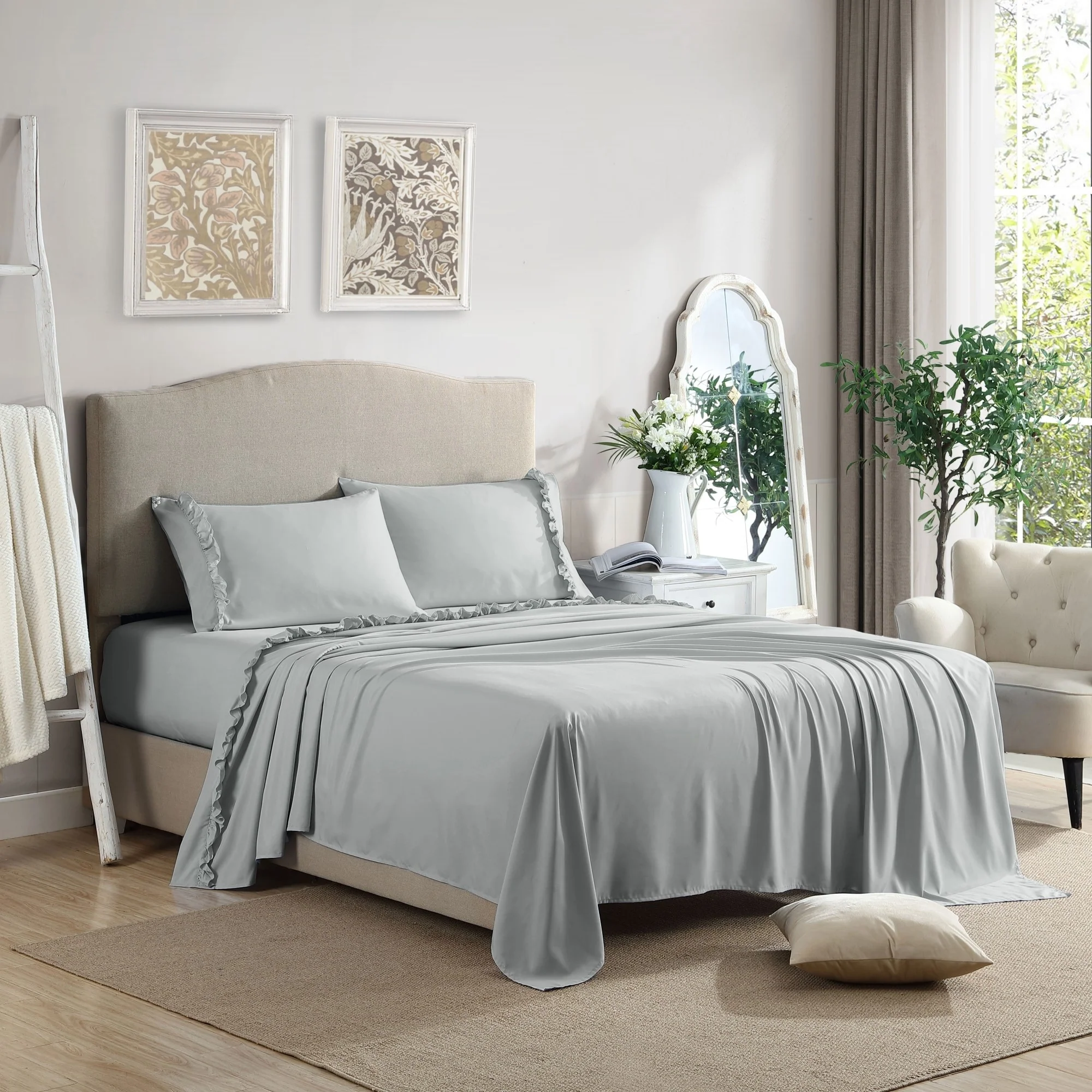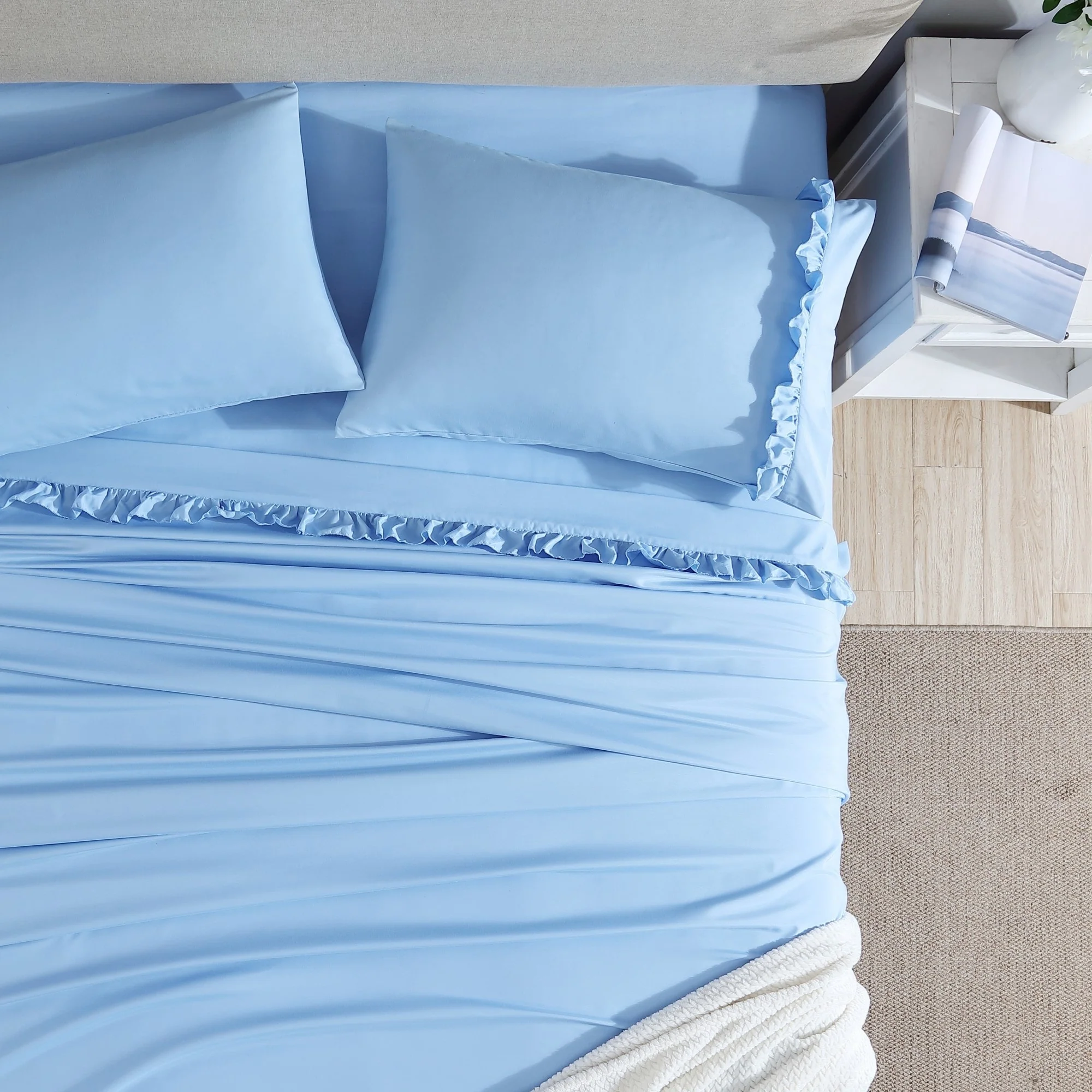 Home Essential Luxurious Silky Ruffle Hem Microfiber Bedding Sheet Set