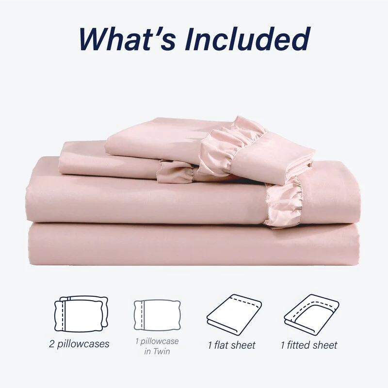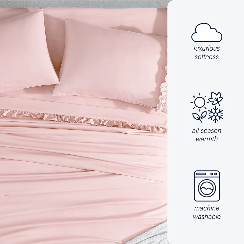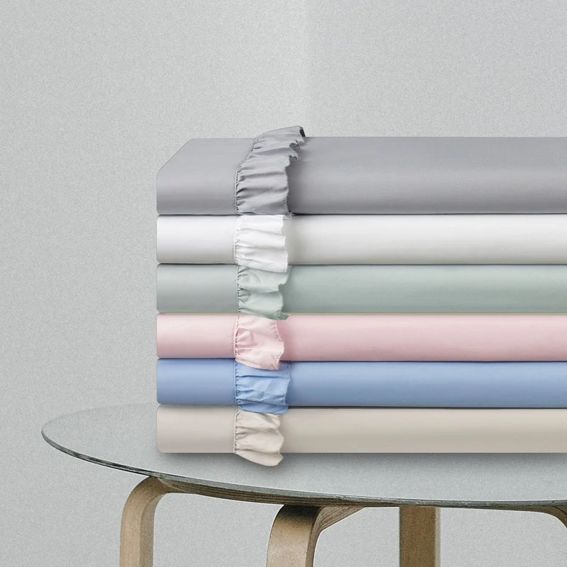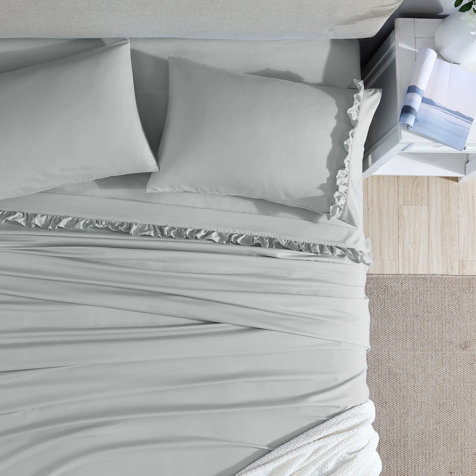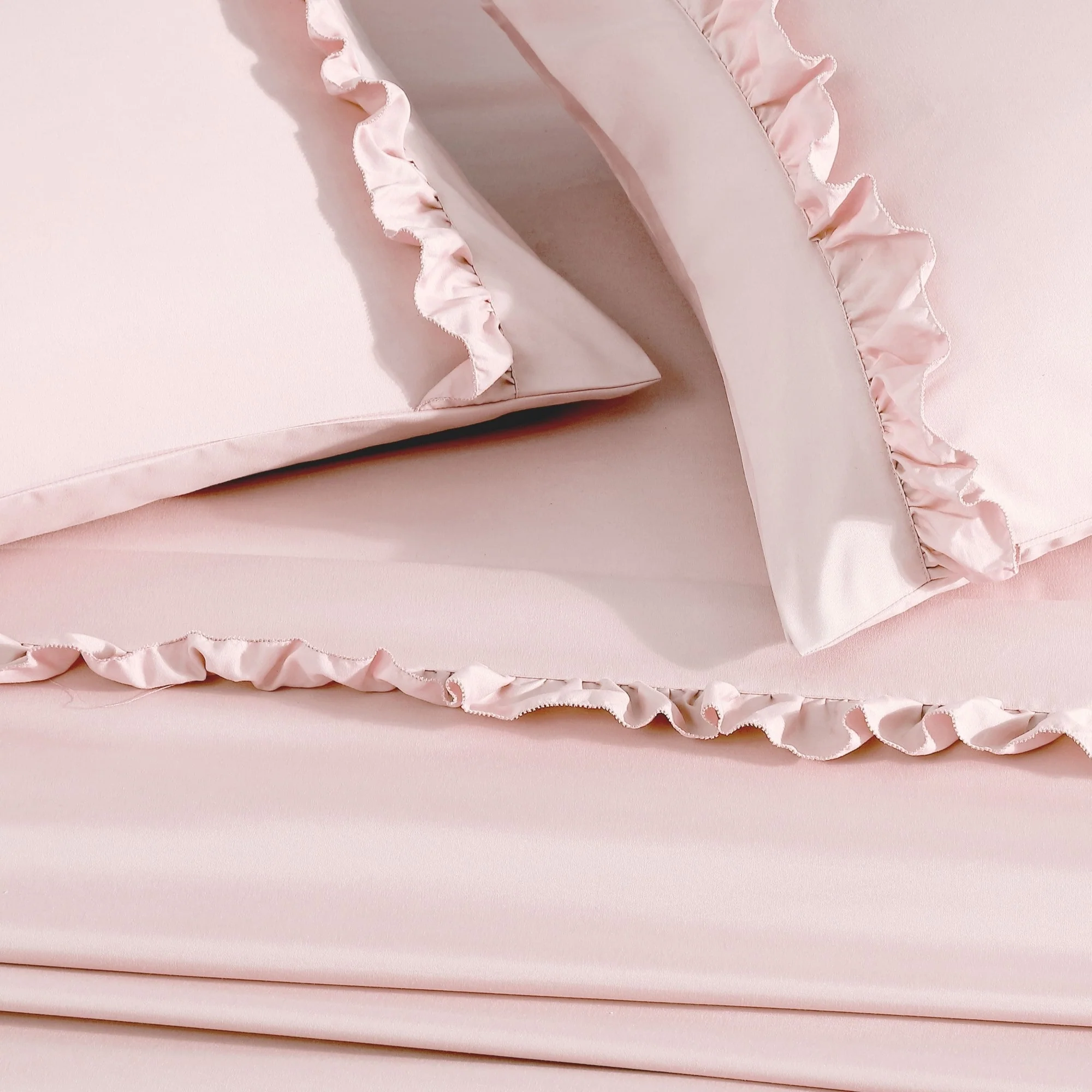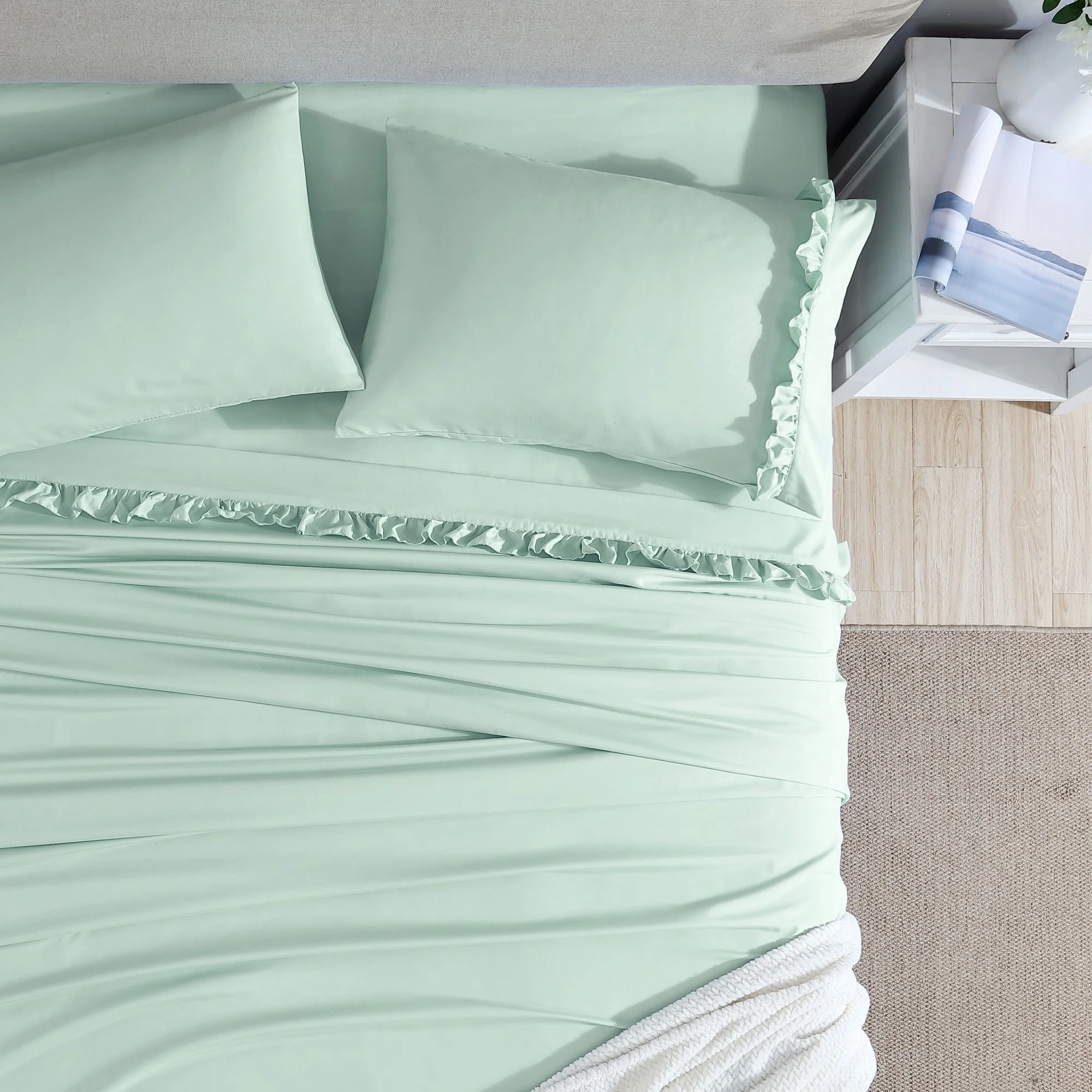 Home Essential Luxurious Silky Ruffle Hem Microfiber Bedding Sheet Set