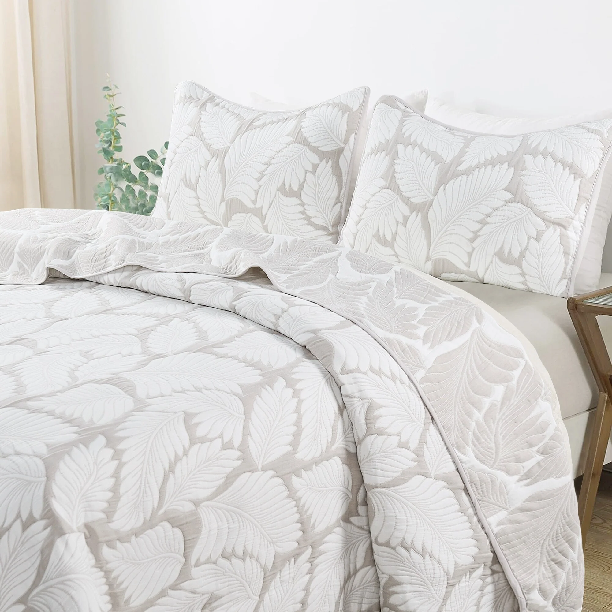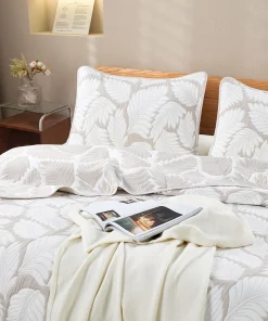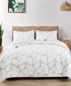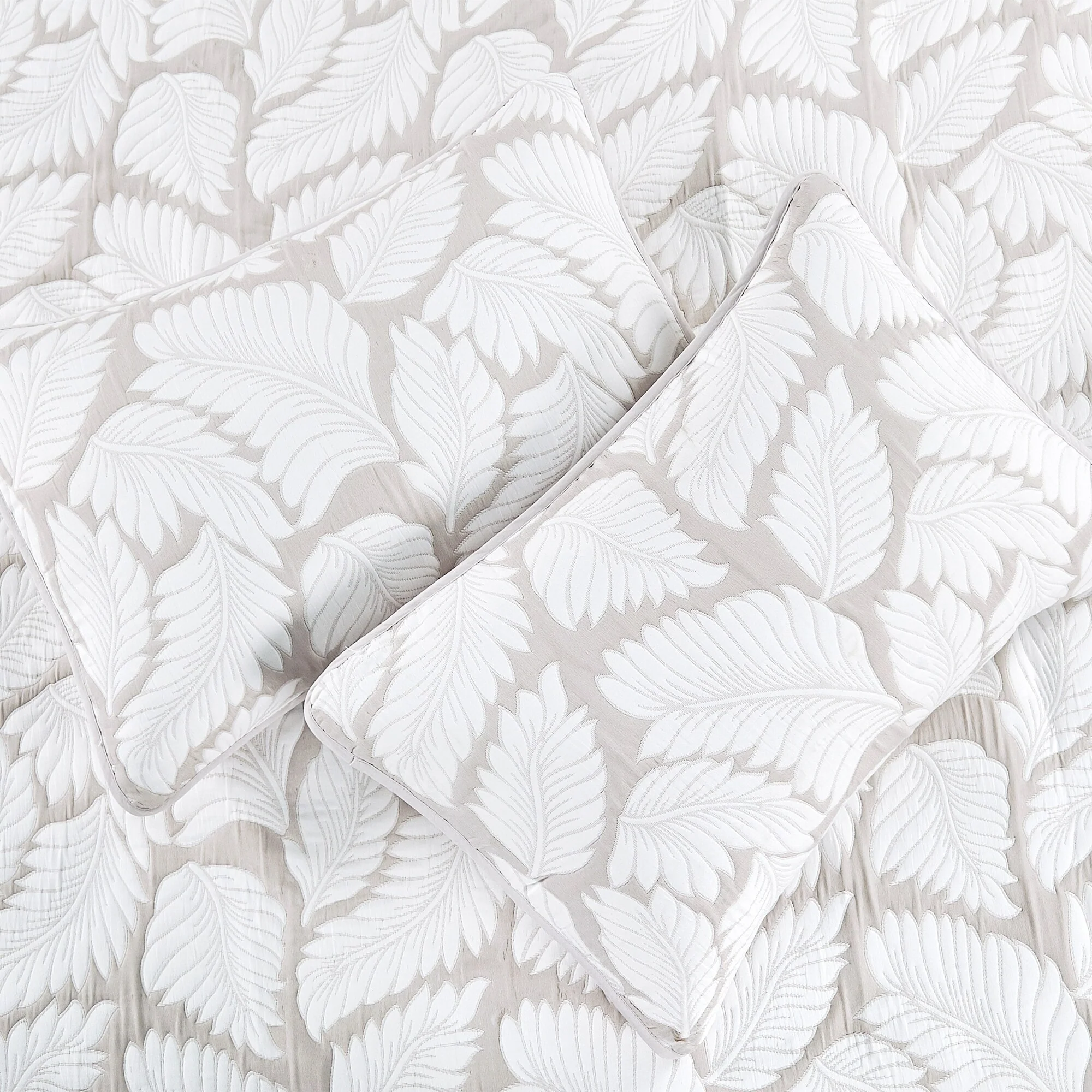 - Features: Beautiful banana leaf pattern. Available in Queen and King sizes Includes matching shamsÂ