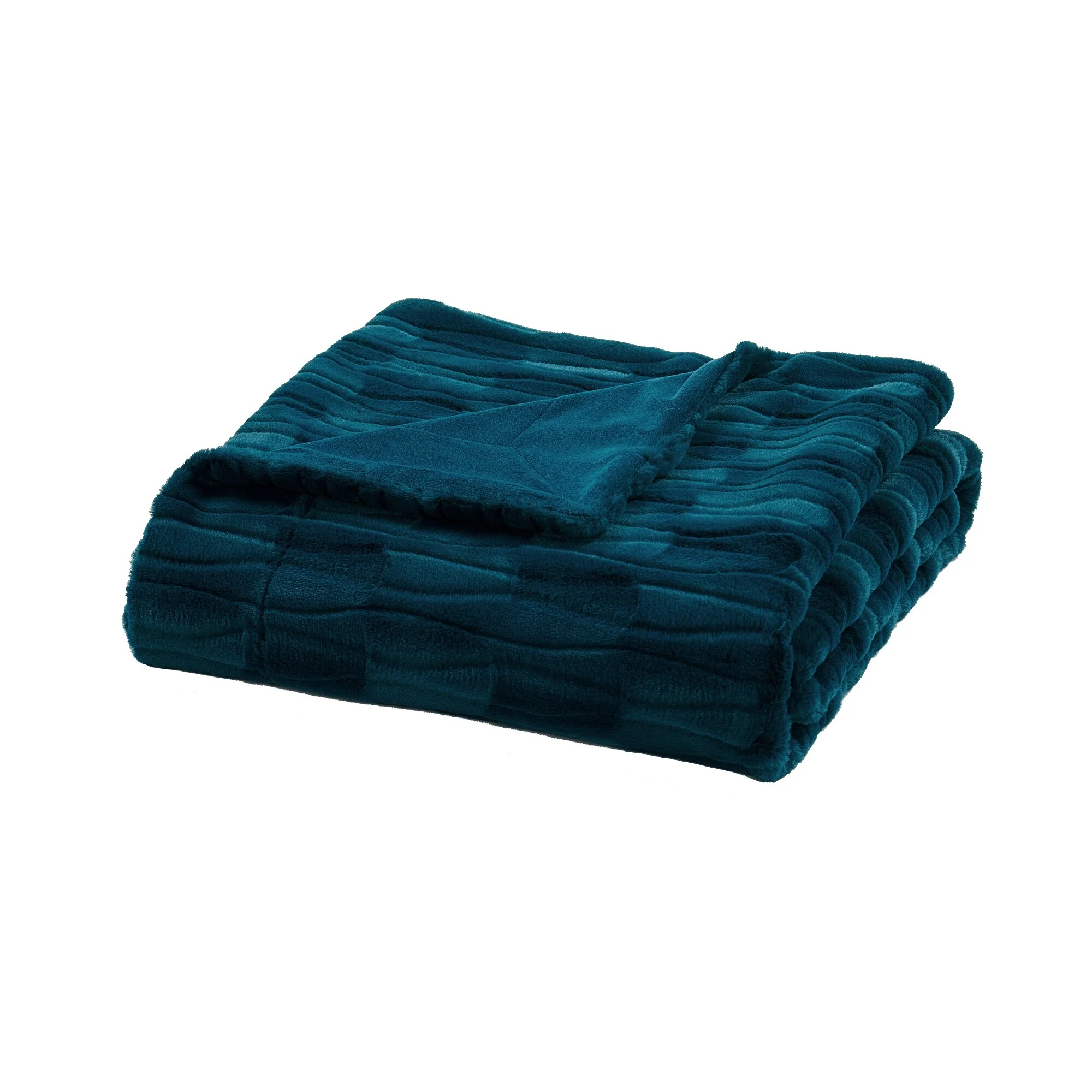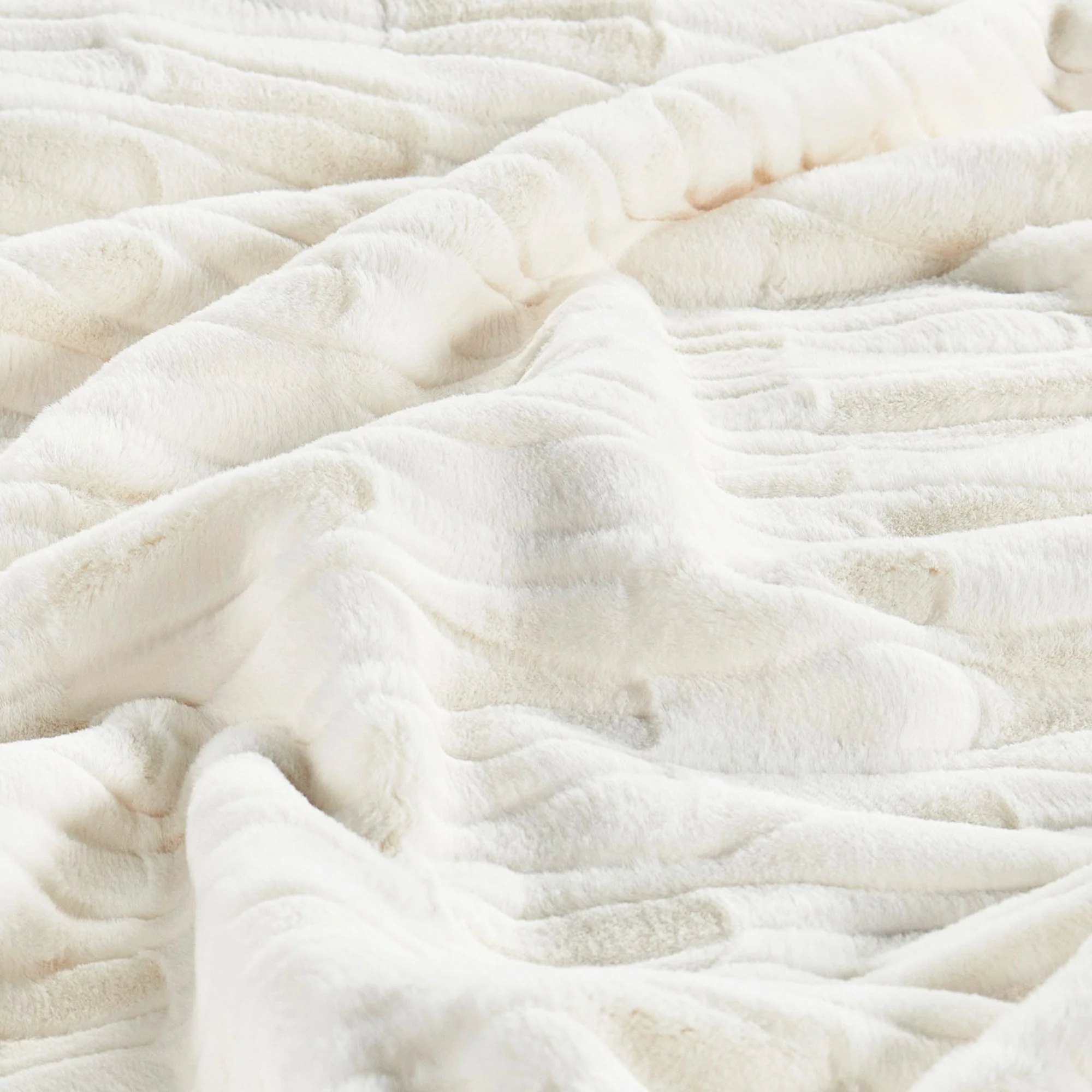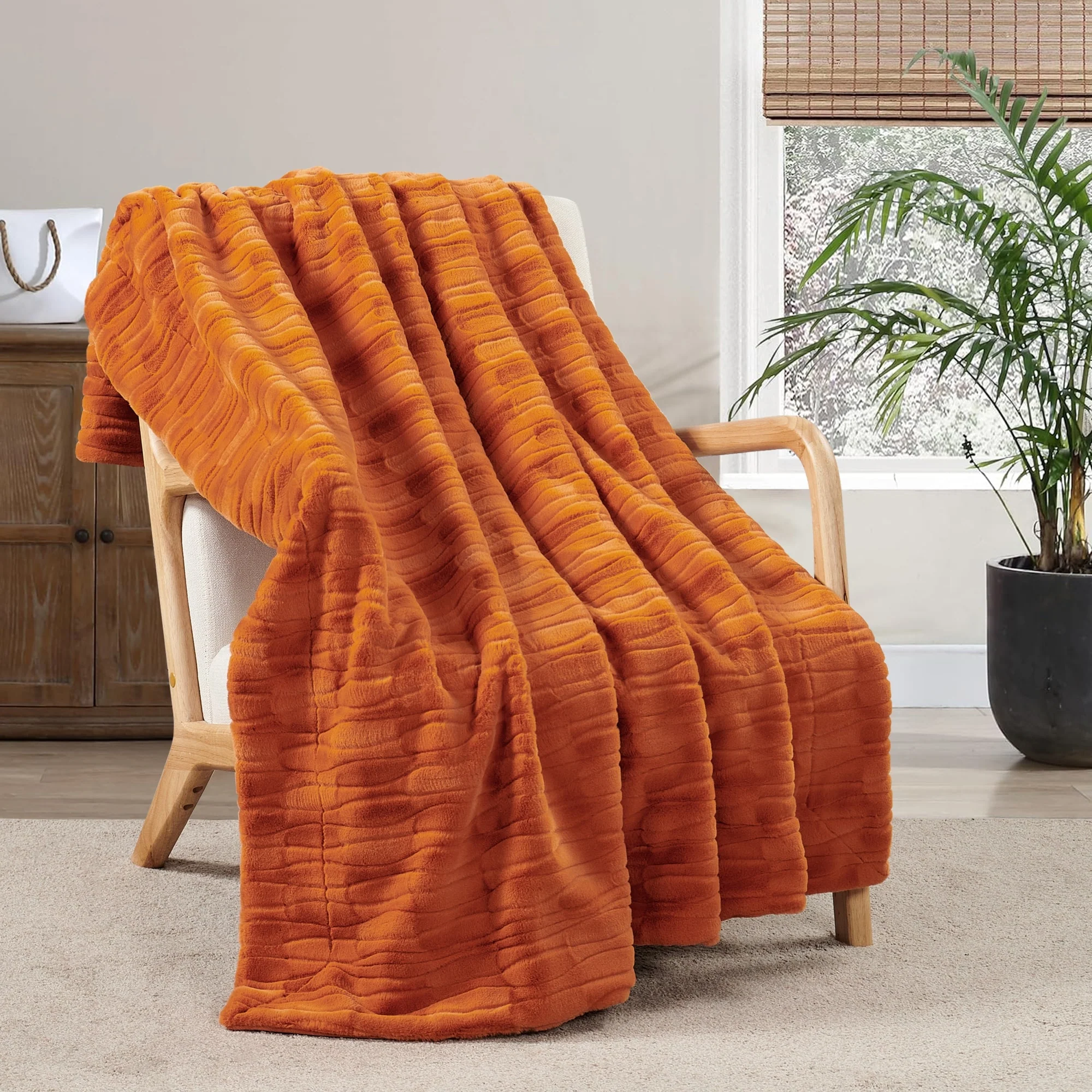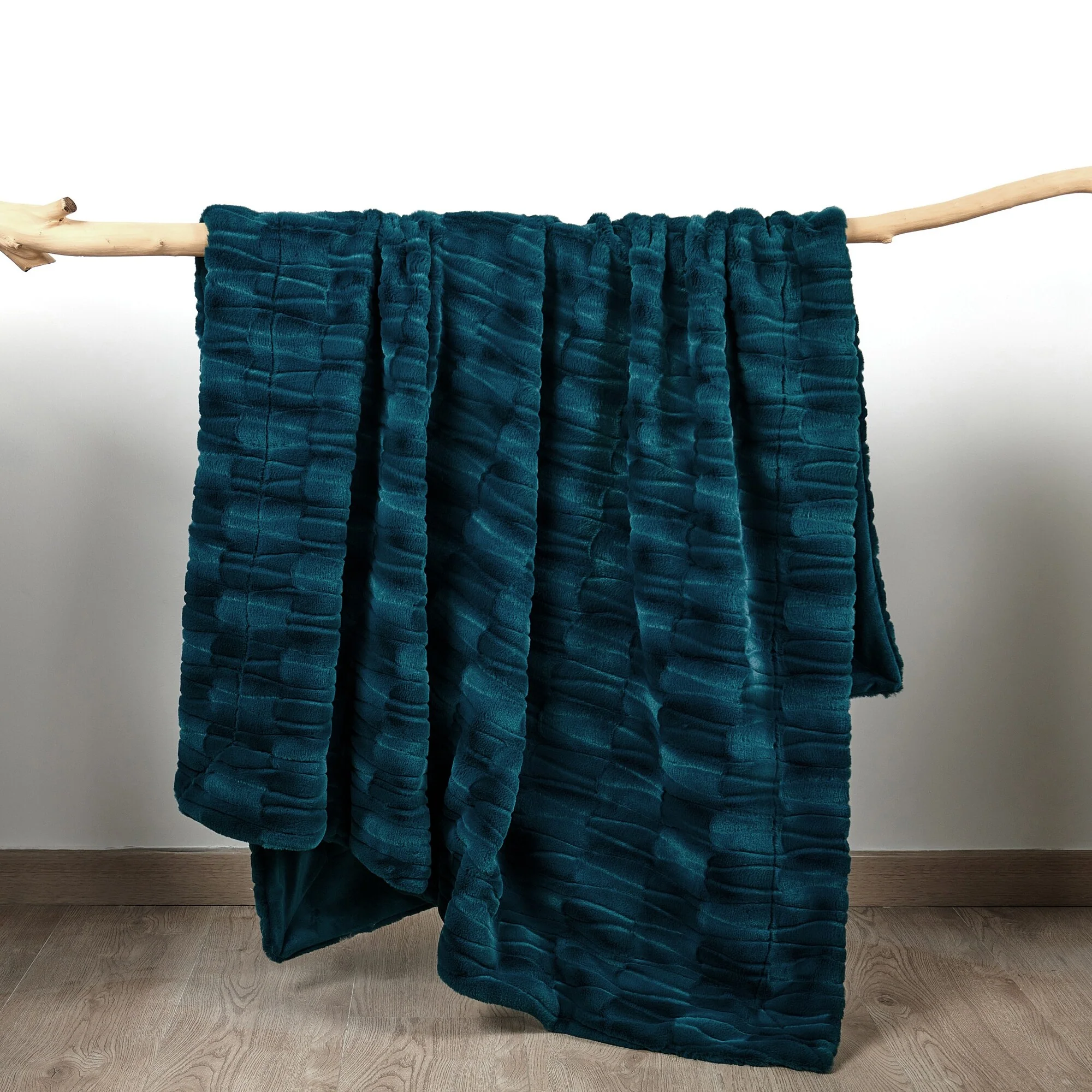 Home Soft Things Leaf Pattern FauxFur Throw Cozy Textured Blanket