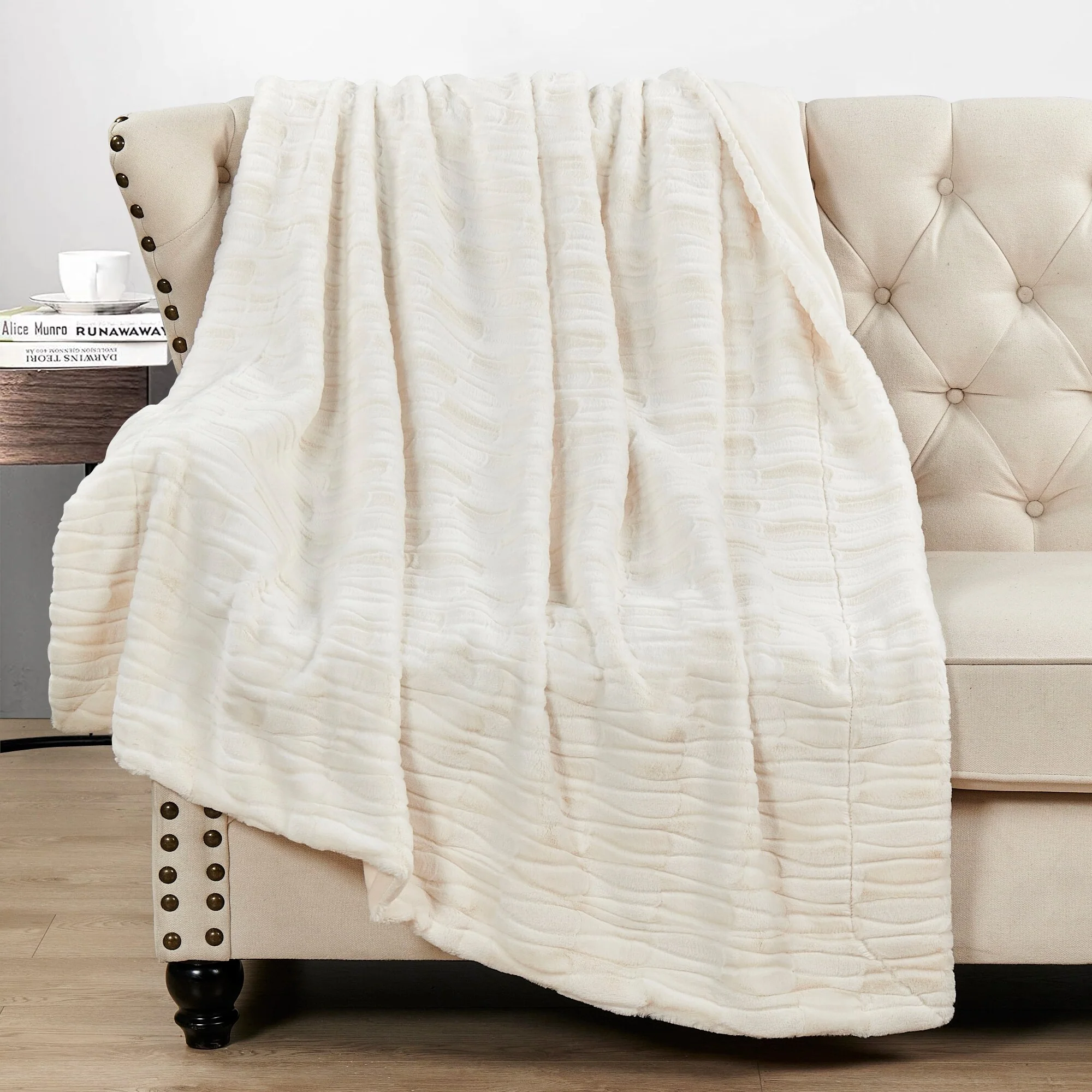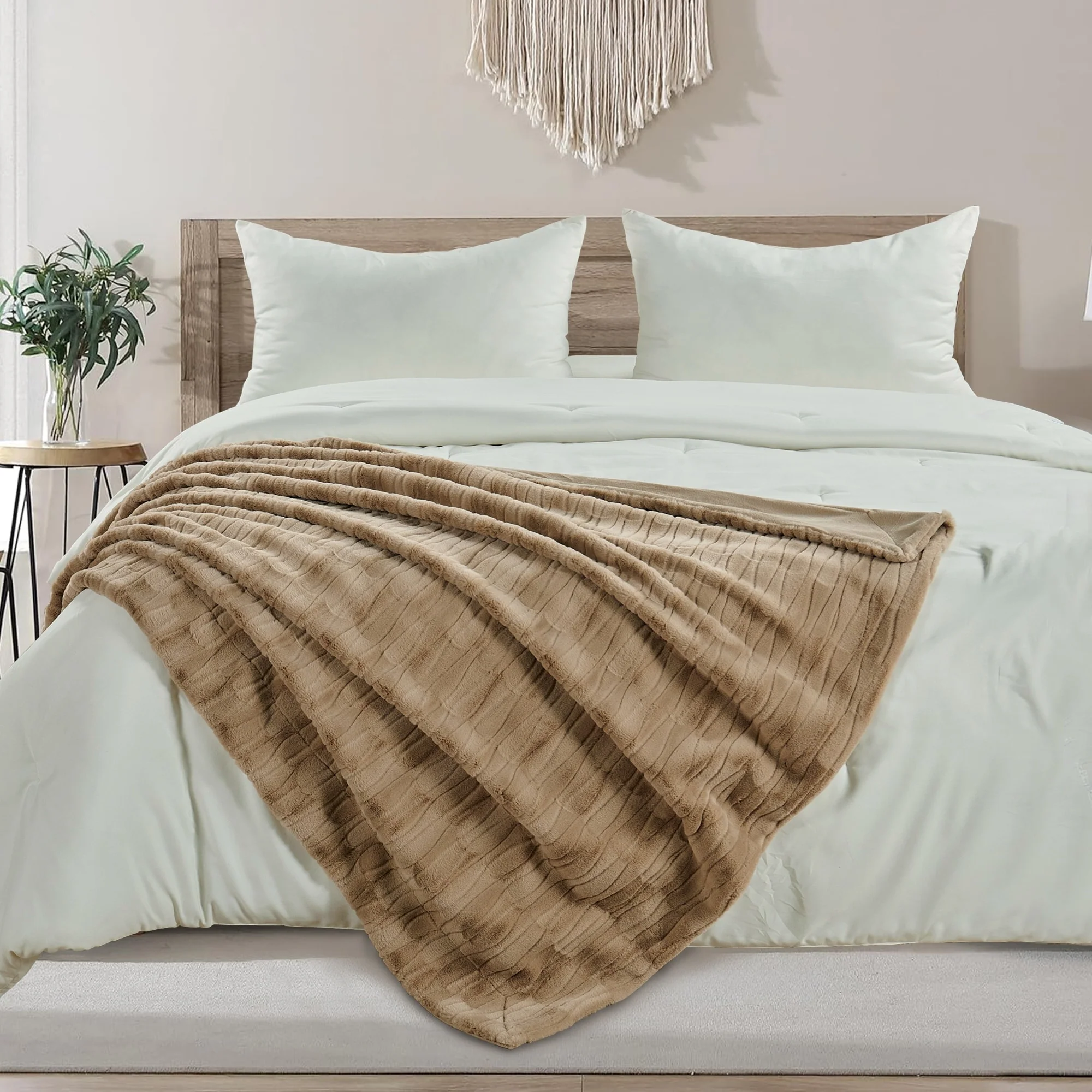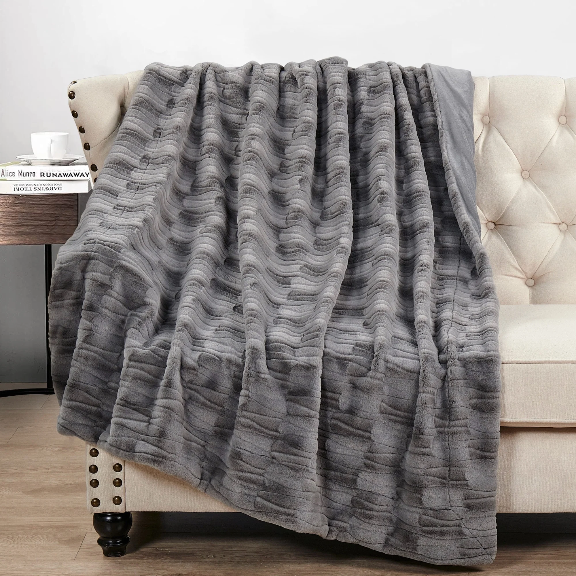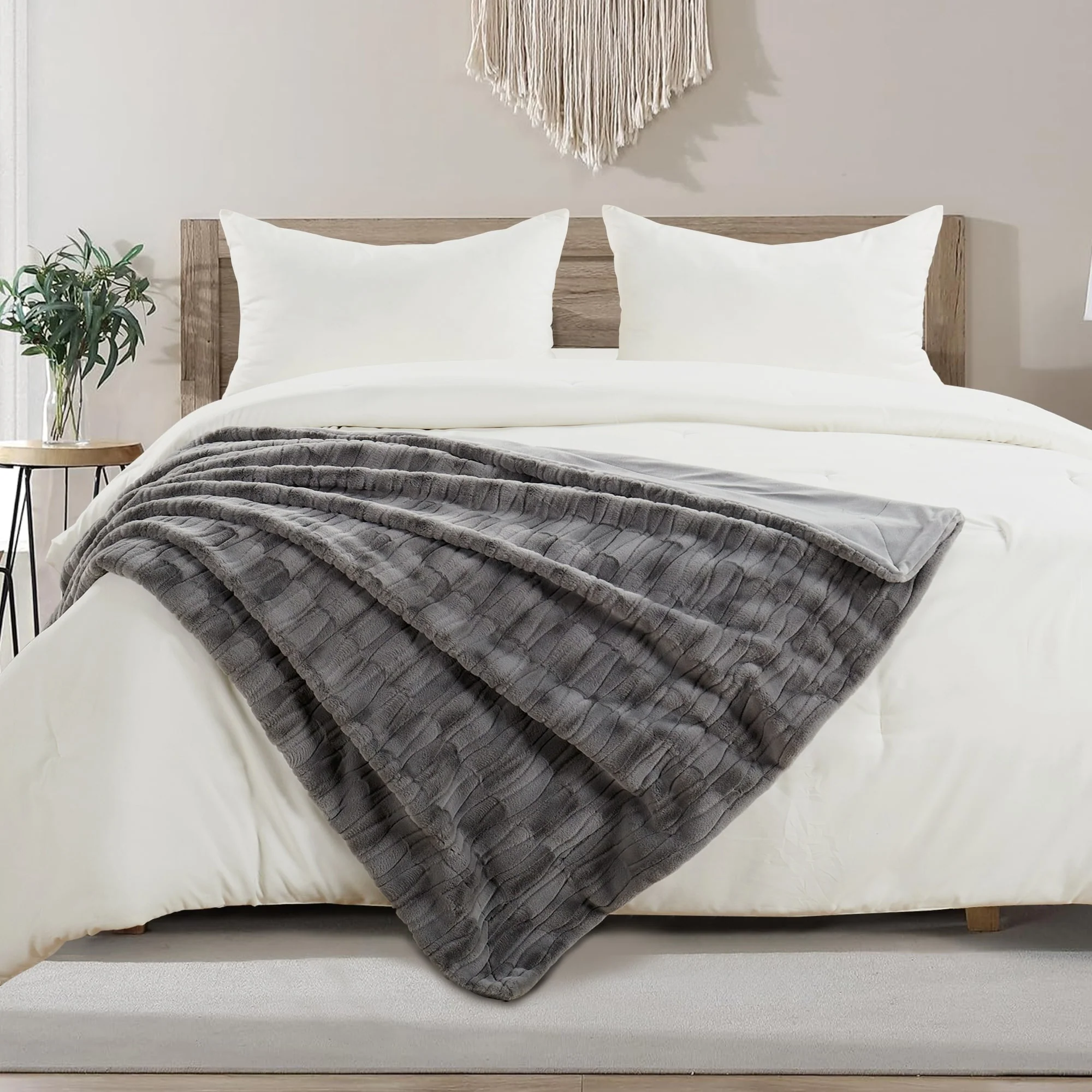 - [Superior Craftsmanship]: This elegantly designed blanket features a front crafted from premium fauxfur, while the reverse side is made of micromink, providing you with a more luxurious, comfortable and breathable experience. Â