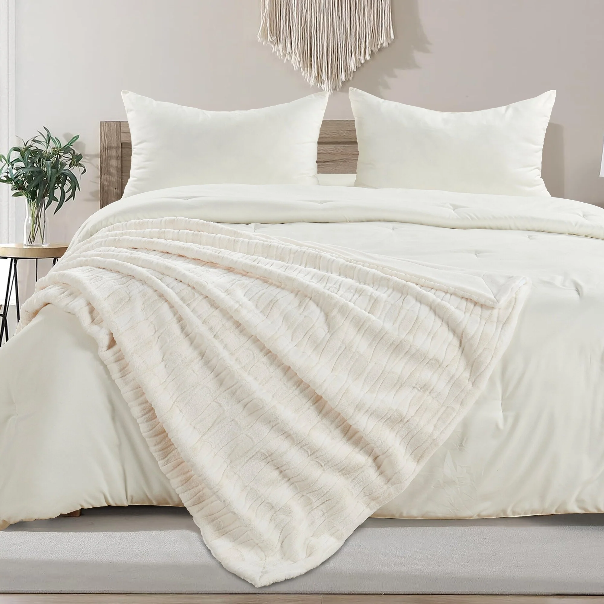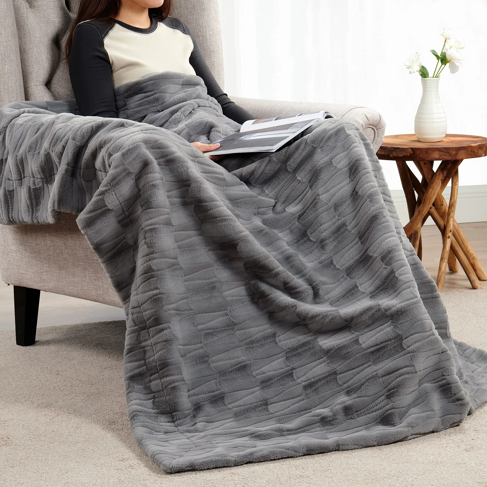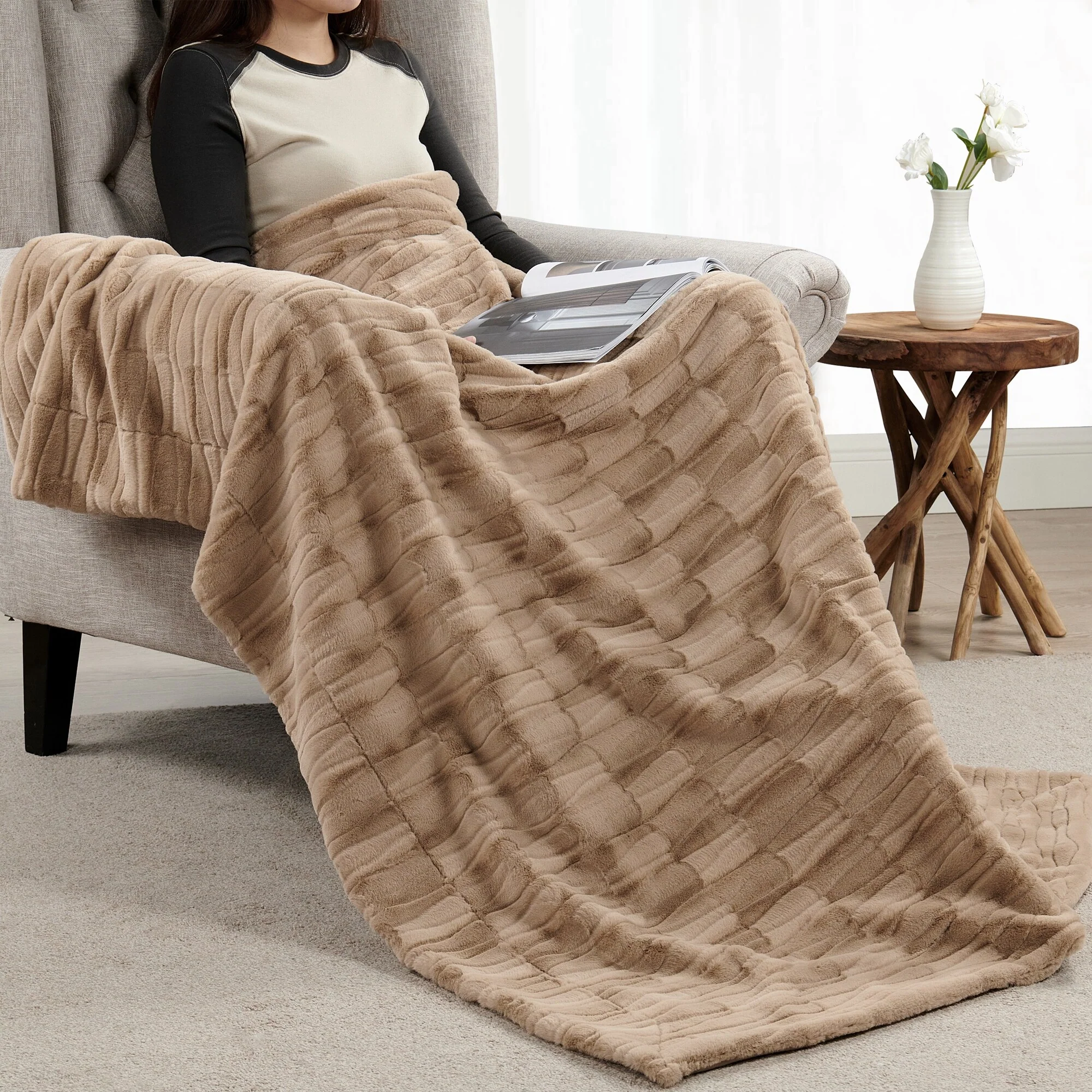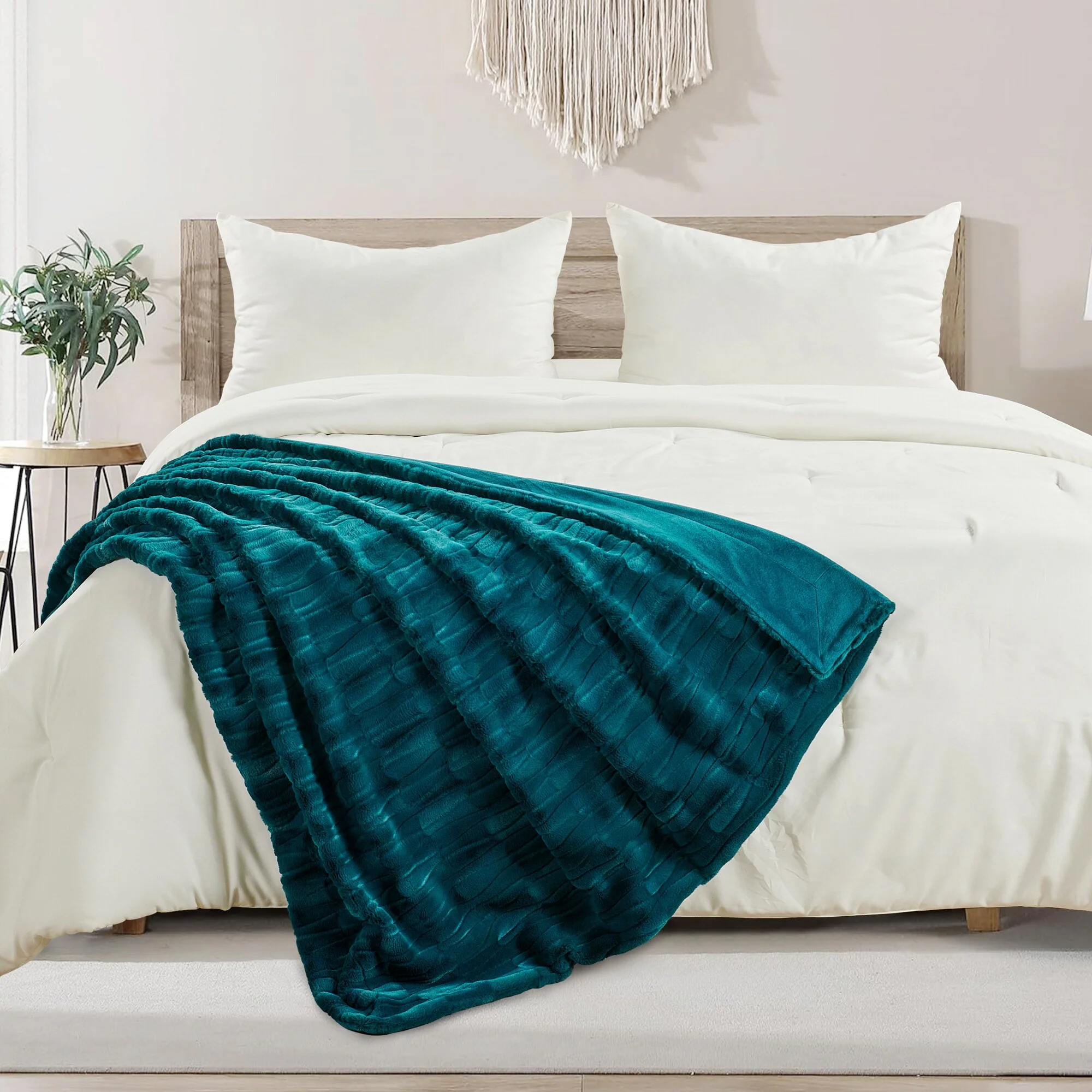 - [Superior Craftsmanship]: This elegantly designed blanket features a front crafted from premium fauxfur, while the reverse side is made of micromink, providing you with a more luxurious, comfortable and breathable experience. Â