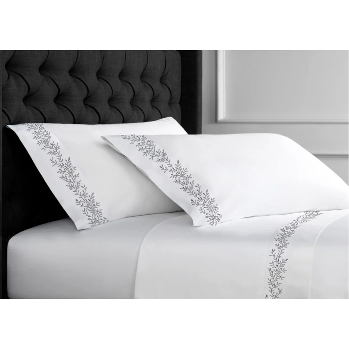 Transform your sleeping area with this Home Sweet Home Collection sheet set by Melange Home. Weaved with 600-thread-count, 100-percent cotton, this sheet set feels super comfortable on your skin and offers long-lasting use. A beautiful Floral embroidery on the flat sheet and pillow cases adds subtle texture to your bed.